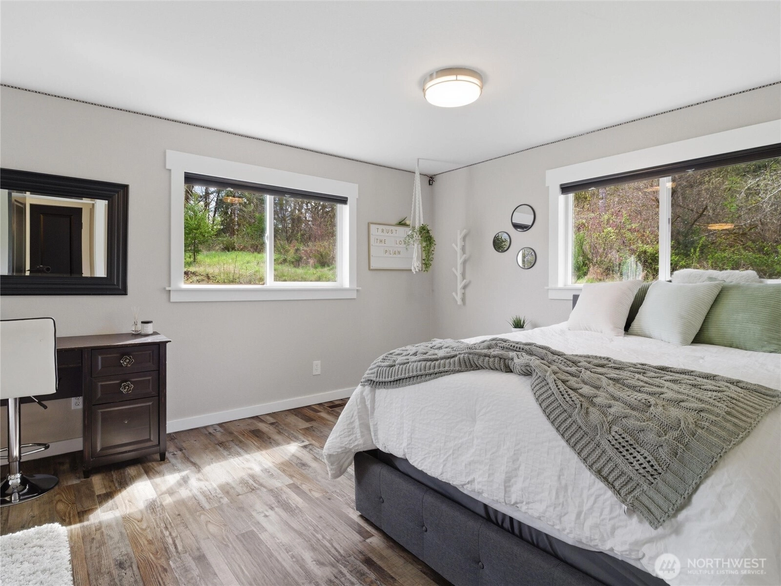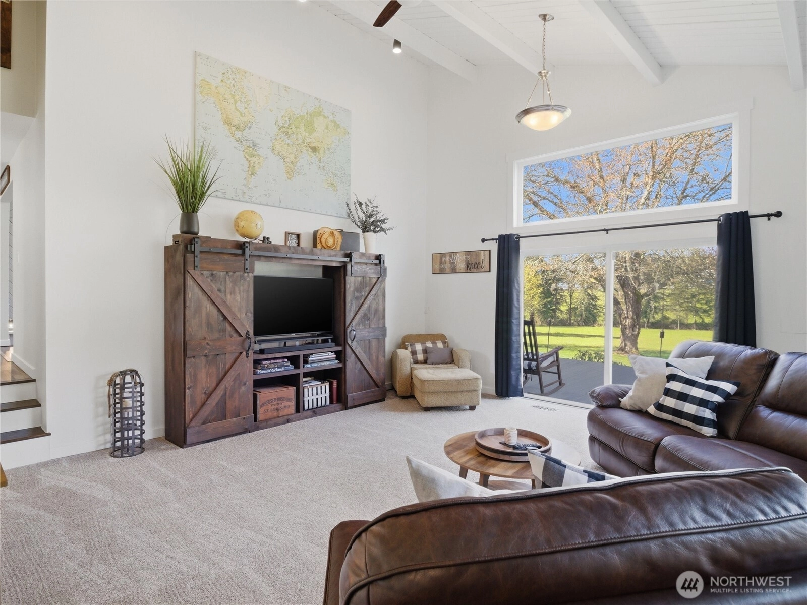 Escape to your own private modern farmhouse where luxury meets tranquility on five secluded acres. This stunning 3,448 sq ft home has been completely updated with beautiful finishes throughout. The new kitchen offers an expansive island with space for 8, stainless appliance package, views from each direction with nearby walk-pantry adjacent to mudroom. Offering 3 spacious bedrooms, 4 baths, and the flexibility of a 4th bedroom or multigenerational suite with kitchenette, bathroom, and private exterior entrance. Designed for both comfort and connection, the living/dining room is filled with natural light from expansive windows that perfectly frame serene views of the pasture leading to the stream. Step outside to an oversized covered patio featuring an outdoor kitchen ideal for entertaining, complete with a cozy fire pit and hot tub for unforgettable evenings under the stars. Wander along the peaceful creek and enjoy the soothing sounds of nature just steps from your door. Car enthusiasts and hobbyists alike will appreciate the impressive 3-bay garage featuring a steel storage organizer, plus a massive 40x50 shop/barn—perfect for entertaining, projects, or creating your dream workspace. Additional covered parking stalls and fenced dog run. With endless possibilities and unmatched privacy, this property offers a rare opportunity to live, relax, and entertain in your own secluded retreat.