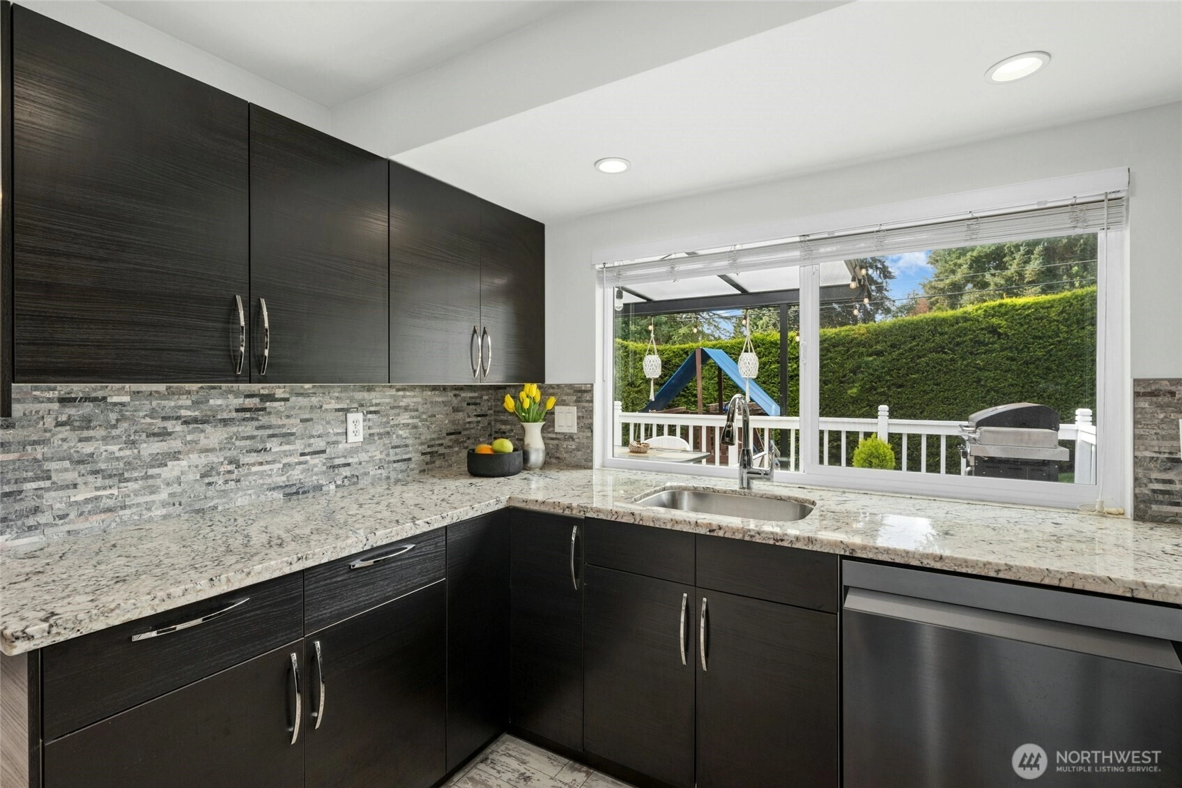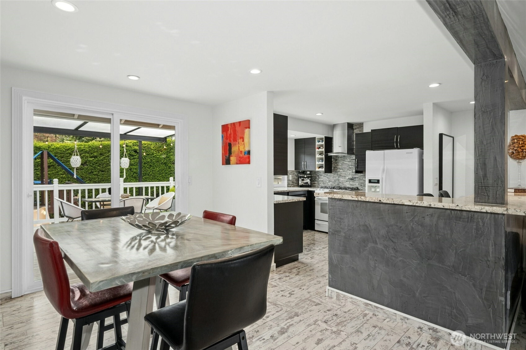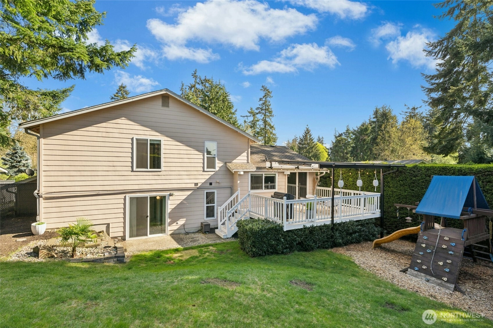 Clean, updated 4-bedroom, 3-bath tri-level home tucked away on a quiet dead-end street in one of the most desirable locations on sought-after South Finn Hill. This 1,830-square-foot residence features vaulted ceilings, refreshed surfaces, abundant natural light, and an expansive covered main-level deck—perfect for summer barbecues and year-round entertaining. Additional highlights include an updated main kitchen, newer vinyl windows and paint, a presidential 50-year roof, an attached two-car garage, and mature landscaping. The lower level offers excellent flexibility with a second kitchen, spacious rec room, and separate entrance—ideal for a potential ADU or multi-generational living. The private backyard includes a grassy lawn, playset and storage shed, creating a wonderful setting for outdoor enjoyment. Ideally located just minutes from Juanita Bay, I-405 and downtown Kirkland, and over 600 acres of protected forests and trails, including waterfront Denny Park, St. Edward State Park, Big Finn Hill Park, and the Juanita Woodlands. Award-winning Lake Washington School District (#4 out of 231 districts in Washington). Don’t miss this exceptional opportunity!