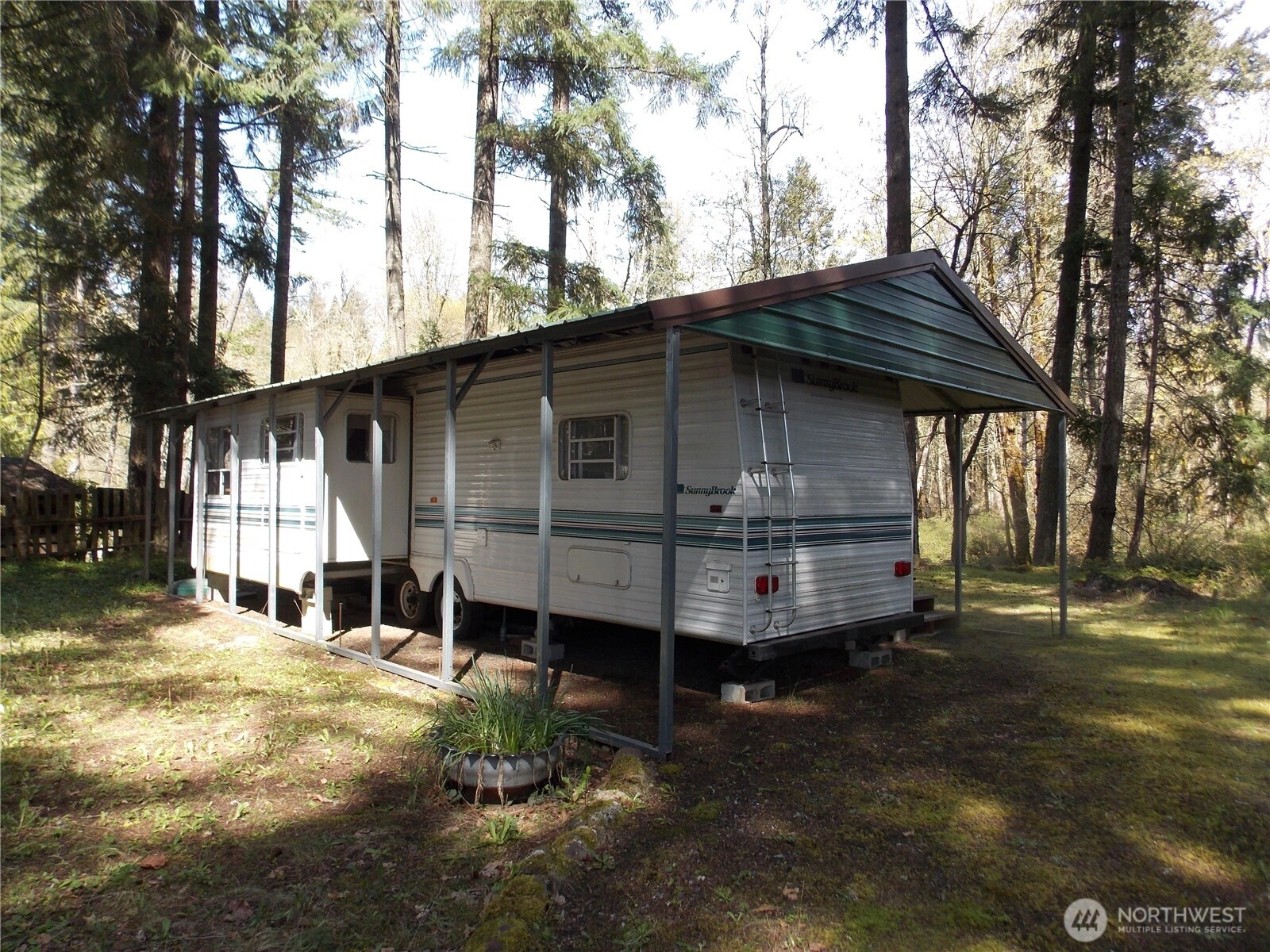 Once you gently rock yourself on the swing on a covered deck in front of the RV (included with the sale) and listen to a sweet murmur of the Deschutes river a few feet away - you'll never want to leave. It's sooo.. relaxing. Weekends surrounded by the towering evergreens, starry nights by the fire and morning coffee while watching the river flow below are easy. Deschutes is one of the most pristine, beautiful rivers in the state. During the summer, it is but a glorified creek, fun for swimming, kayaking, and frolicking in the river and fishing. It can become quite deep and fast moving in the winter but has not flooded this property. This setting is perfect "as is" for recreational purposes, featuring a 1997 RV and deck in excellent condition under the cover of a 20x35 ft metal carport structure. Most likely it is also possible to build a year round home to be built here. Buyer to confirm feasibility with the County. All utilities, including a 2 bd septic are on the property. Property is located in a small country subdivision yet close enough to conveniences, schools, Olympia & Ft Lewis. Properties like this don’t come around often!