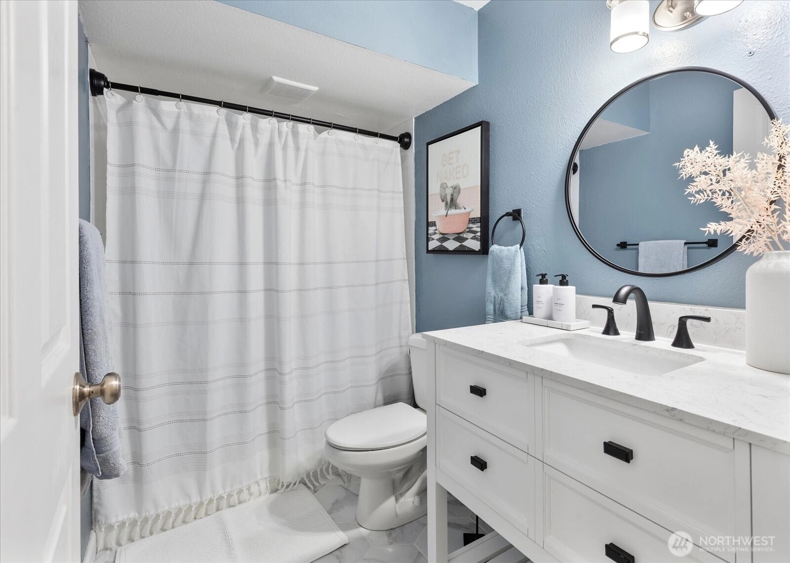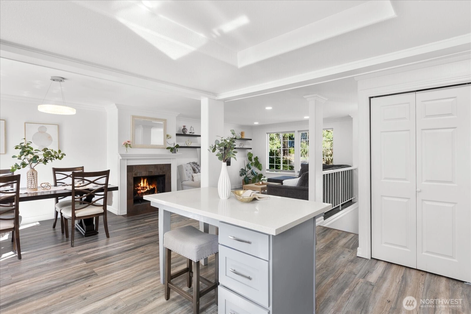 This beautifully updated split-entry home in the Finn Hill neighborhood is truly move-in ready! With 5 bedrooms and 2.75 baths, there is plenty of space to live, work, and entertain. Upstairs, enjoy fully remodeled kitchen with quartz counters and island seating. The stylish and functional kitchen opens to large dining area and spacious living room, complete with wood fireplace. This level further boasts 3 large bedrooms, including primary with ensuite. Downstairs features two additional bedrooms, full bath, and 2nd spacious living with its own separate entrance-ideal for guests, multi-generational living. This home offers perfect indoor/outdoor living with 2 decks plus an 8493 sq ft fully fenced yard. Other features include new garage door, remodeled bathroom, heat pump with AC, RV parking, and a storage shed in the backyard. Located in the highly regarded Lake Washington School District and close to everything Finn Hill has to offer. So many great restaurants and parks! This home combines comfort, flexibility and a fantastic location.