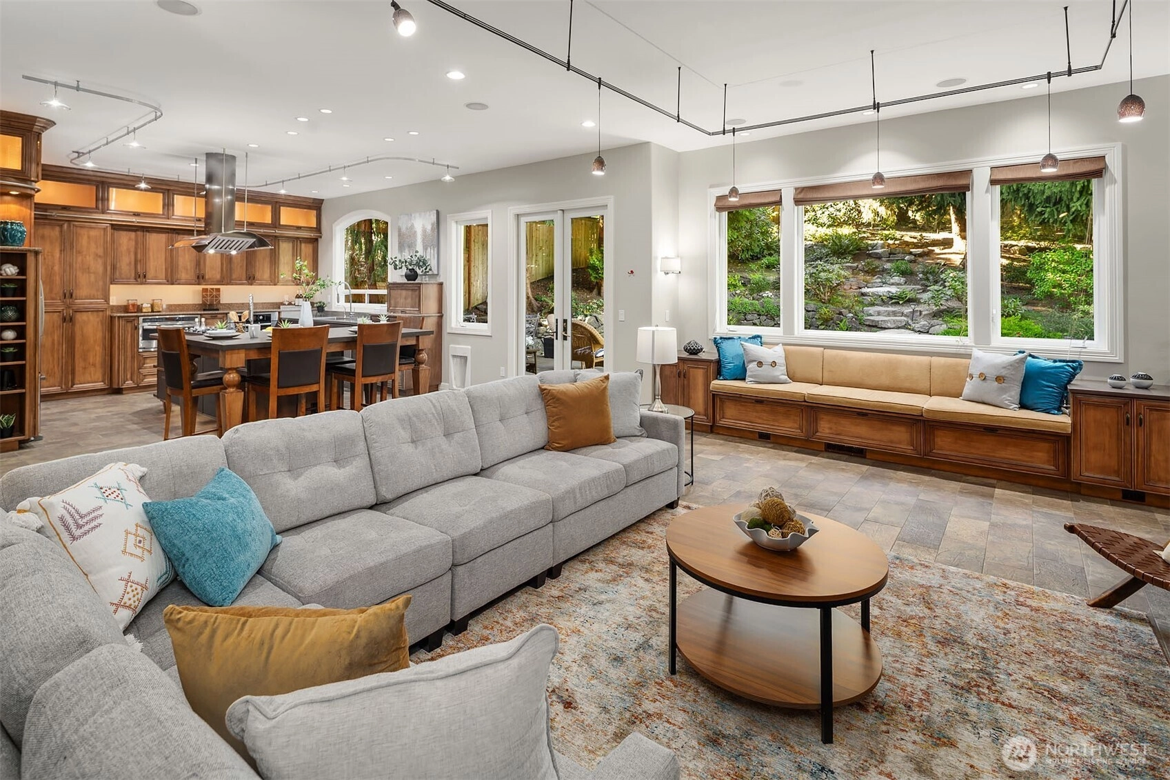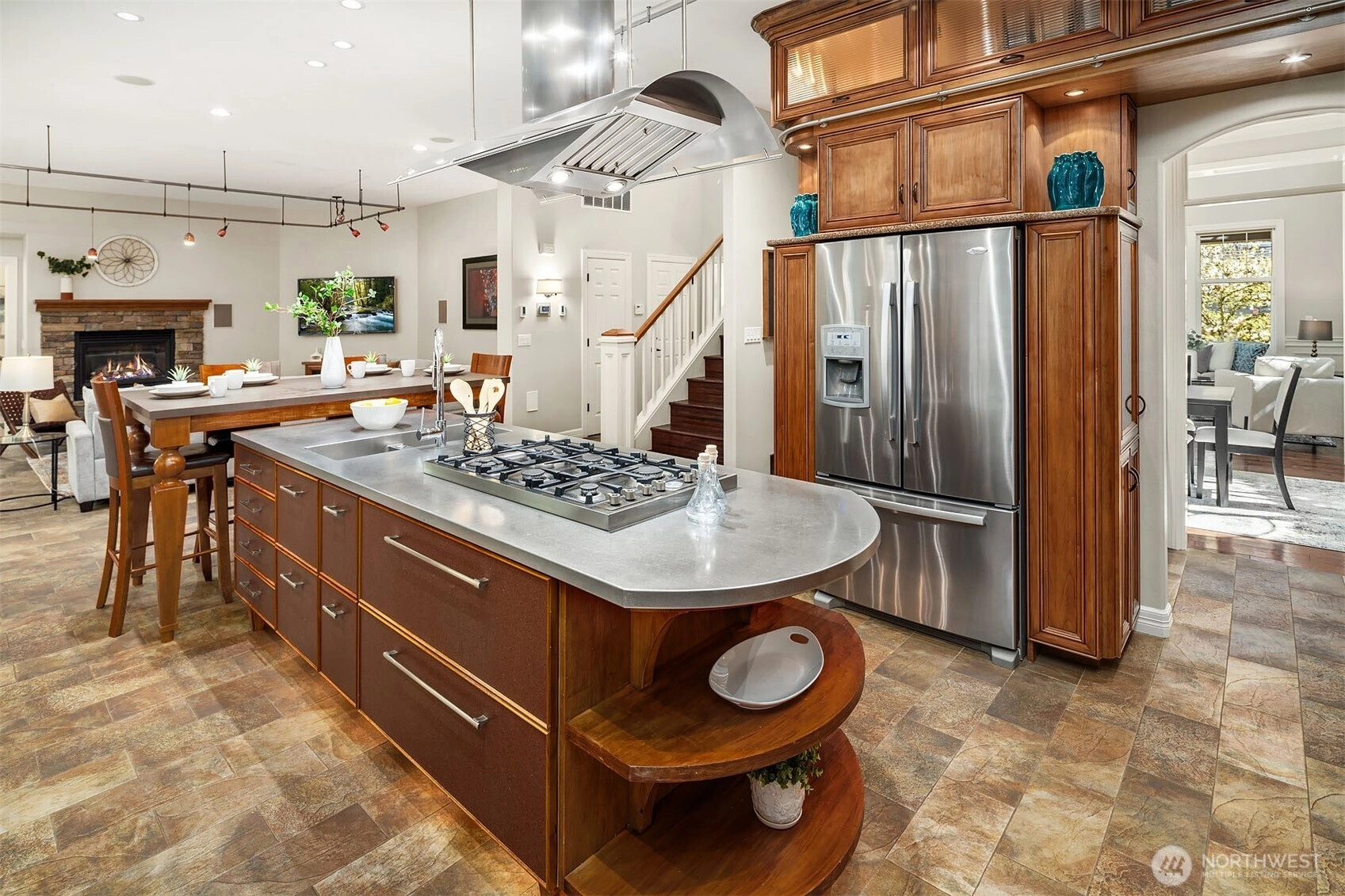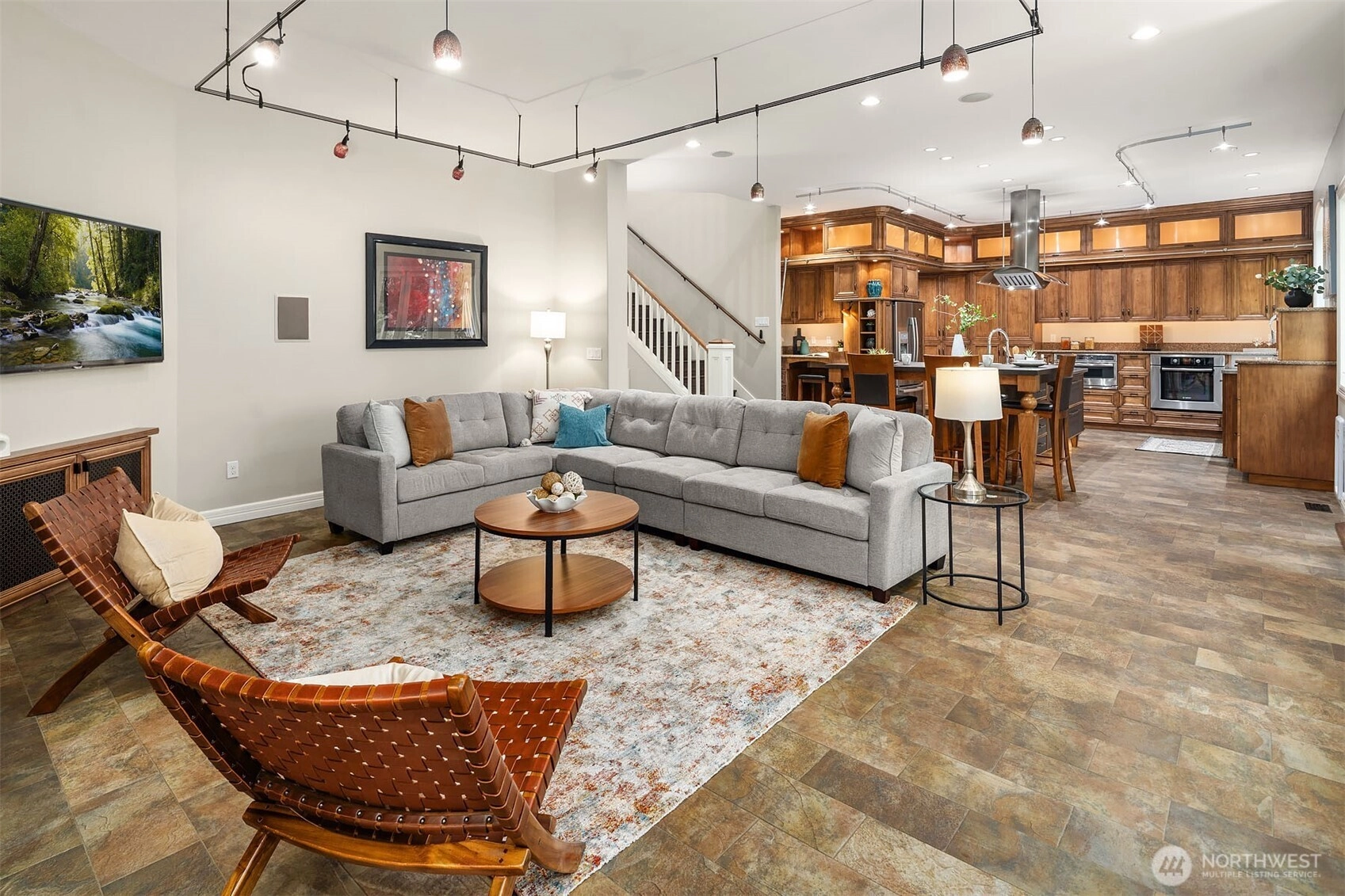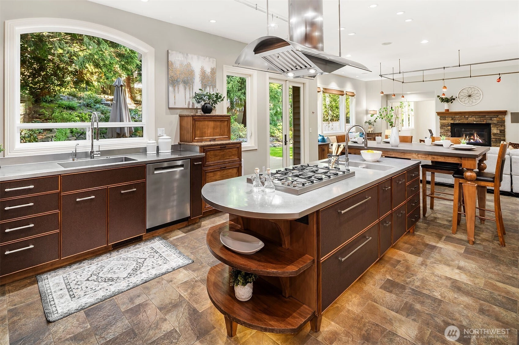 A refined expression of form, function, and craftsmanship, this Silverleaf residence on Cougar Mountain has been thoughtfully transformed into a design-forward retreat. Encompassing 3,510 square feet, the home unfolds with a sense of intention, each space carefully considered, each material deliberately chosen. At the heart of the home, the award winning kitchen, featured in Kitchen Trends, serves as both a functional workspace and architectural focal point. Custom alder and fiber infused cabinetry with library ladder to easily reach display cabinets, tiered stainless steel surfaces, and a striking dual-sided Italian cooktop create a composition that is as visually compelling as it is practical. Surrounding living spaces reflect a complete reimagining, where heated Italian tile, hand-scraped hickory floors, and integrated media elements blend warmth with modern precision. Upstairs, the primary suite offers a quiet sense of luxury, redefined by a spa inspired bath with sculptural finishes and radiant heated surfaces. A loft and flexible adjoining spaces introduce adaptability without compromising design integrity. Set on a professionally landscaped parklike .29-acre parcel with new Trex decking and a 3-car garage, the home is a seamless balance of architectural intention and everyday livability.