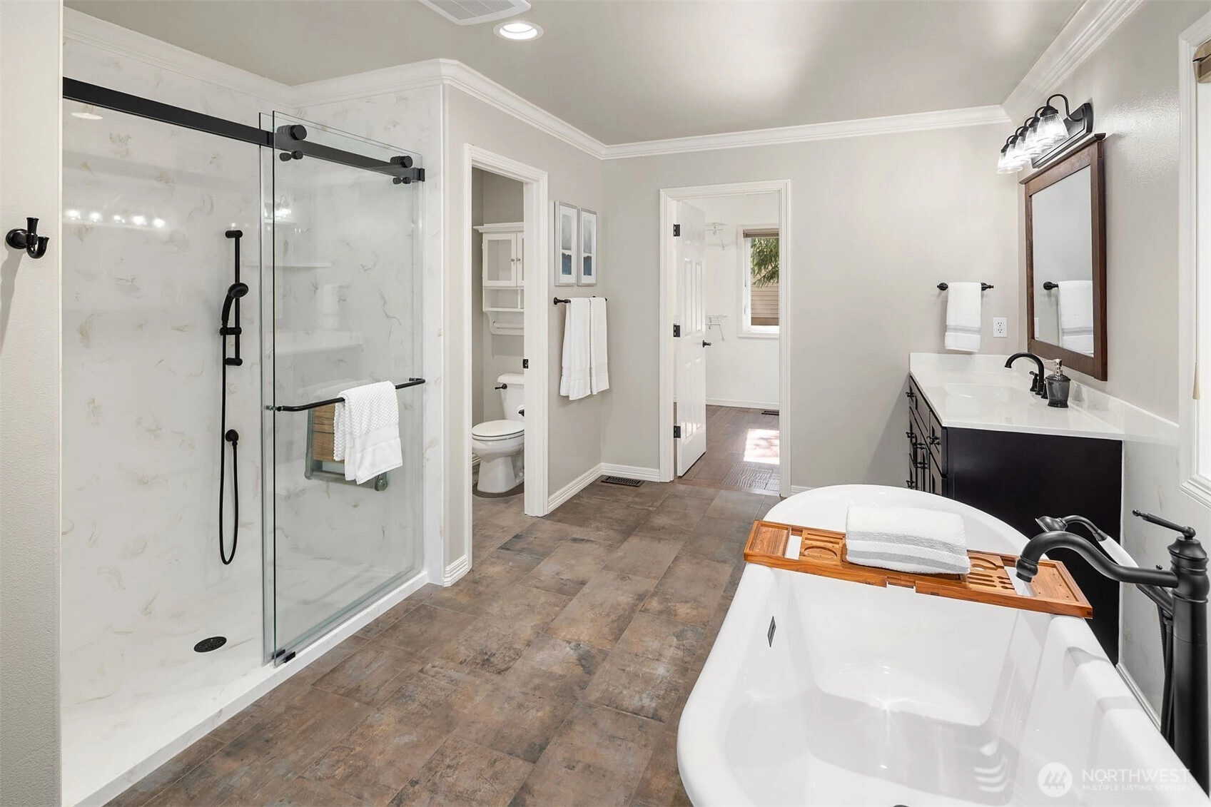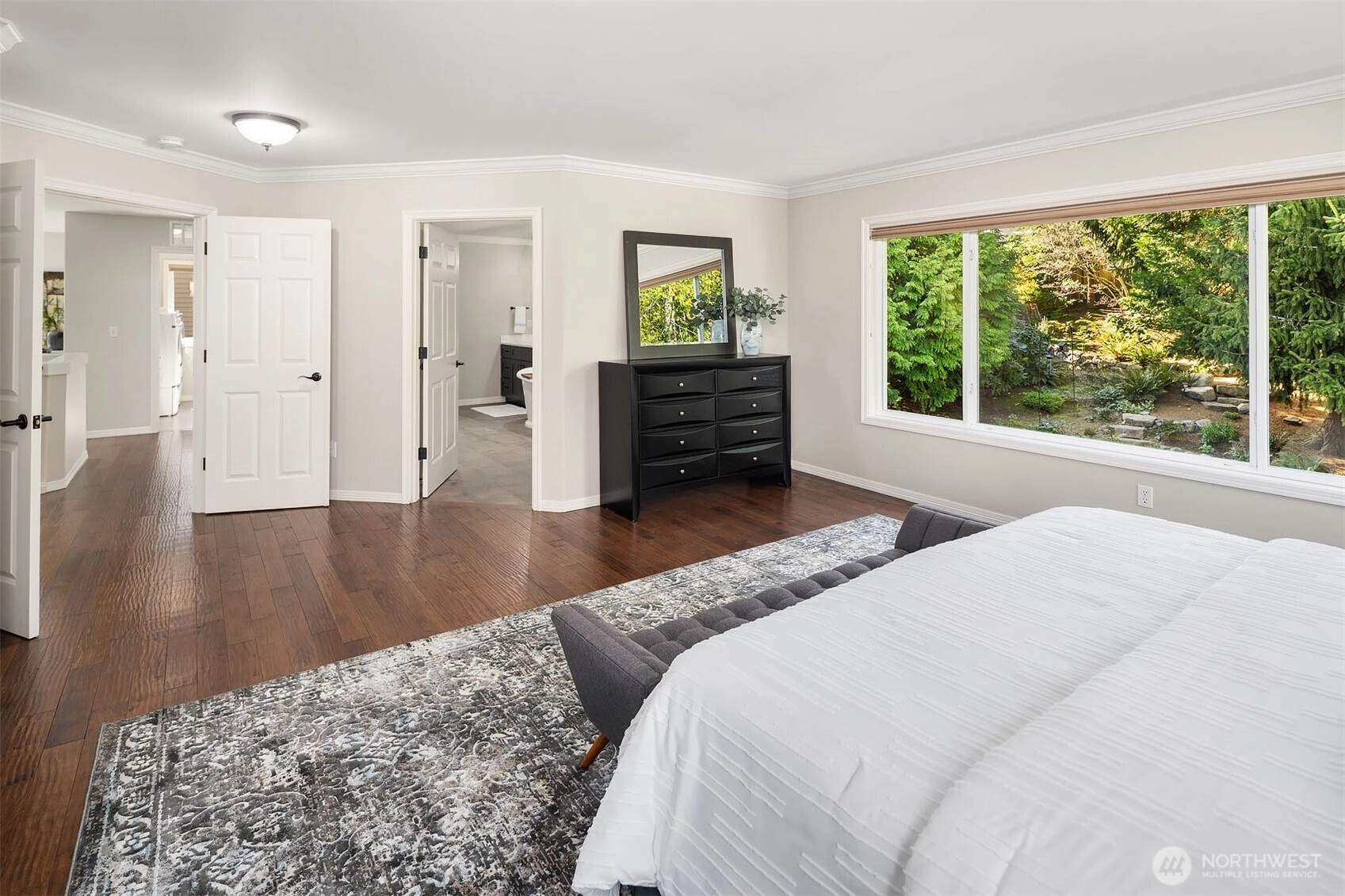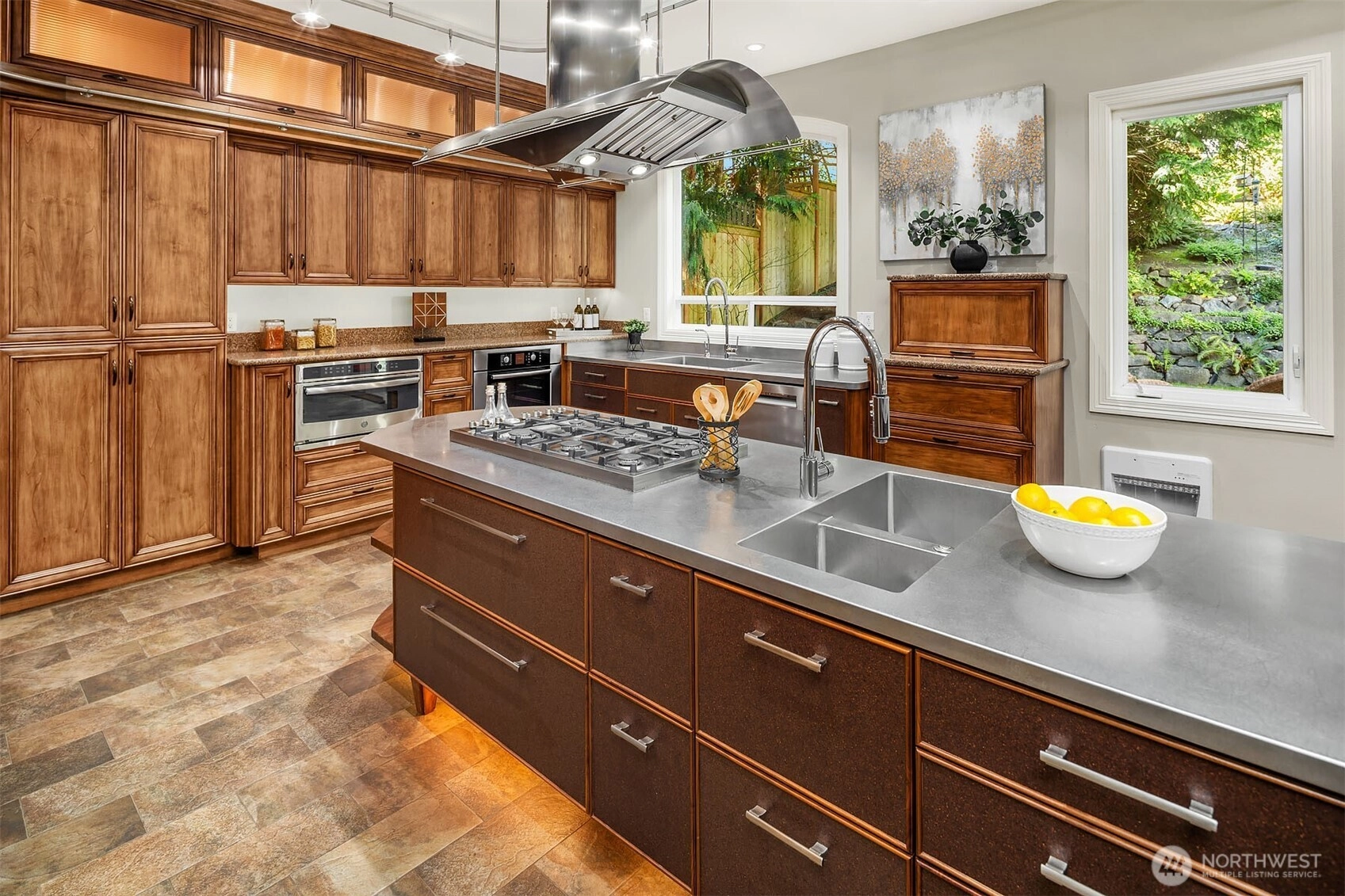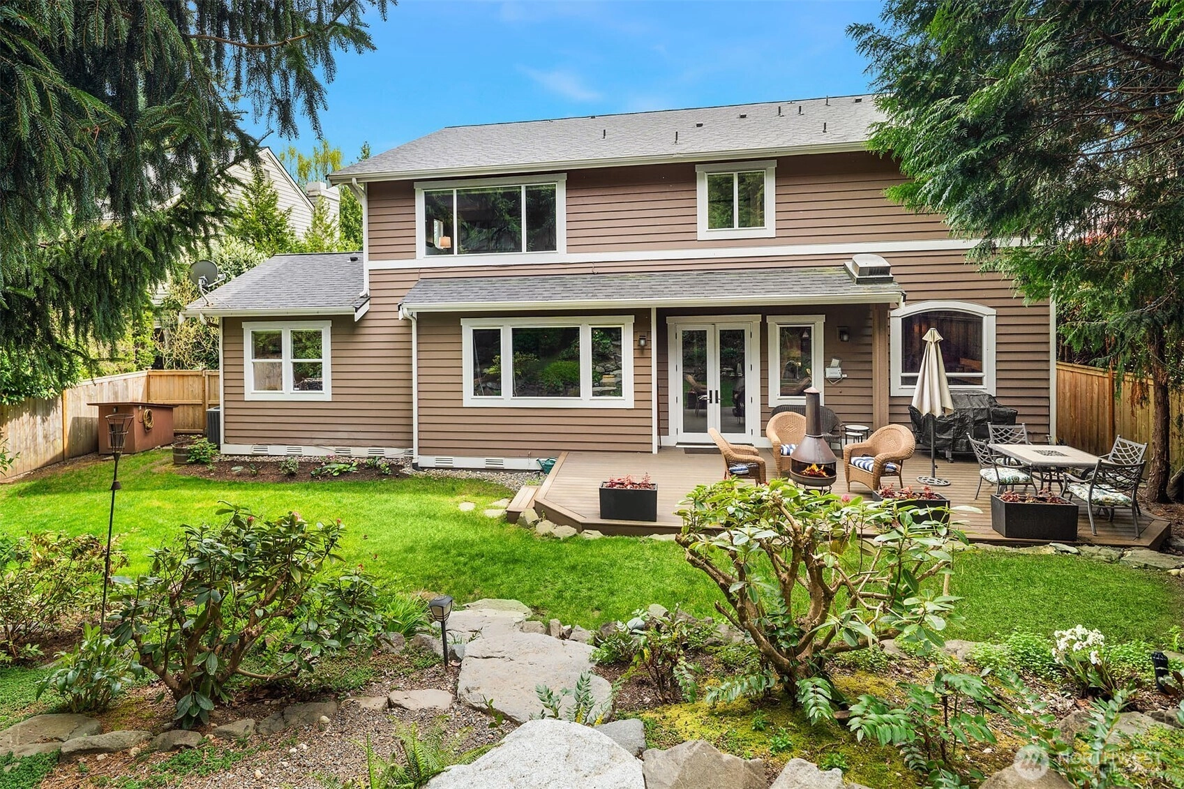 A refined expression of form, function, and craftsmanship, this Silverleaf residence on Cougar Mountain has been thoughtfully transformed into a design-forward retreat. Encompassing 3,510 square feet, the home unfolds with a sense of intention, each space carefully considered, each material deliberately chosen. At the heart of the home, the award winning kitchen, featured in Kitchen Trends, serves as both a functional workspace and architectural focal point. Custom alder and fiber infused cabinetry with library ladder to easily reach display cabinets, tiered stainless steel surfaces, and a striking dual-sided Italian cooktop create a composition that is as visually compelling as it is practical. Surrounding living spaces reflect a complete reimagining, where heated Italian tile, hand-scraped hickory floors, and integrated media elements blend warmth with modern precision. Upstairs, the primary suite offers a quiet sense of luxury, redefined by a spa inspired bath with sculptural finishes and radiant heated surfaces. A loft and flexible adjoining spaces introduce adaptability without compromising design integrity. Set on a professionally landscaped parklike .29-acre parcel with new Trex decking and a 3-car garage, the home is a seamless balance of architectural intention and everyday livability.