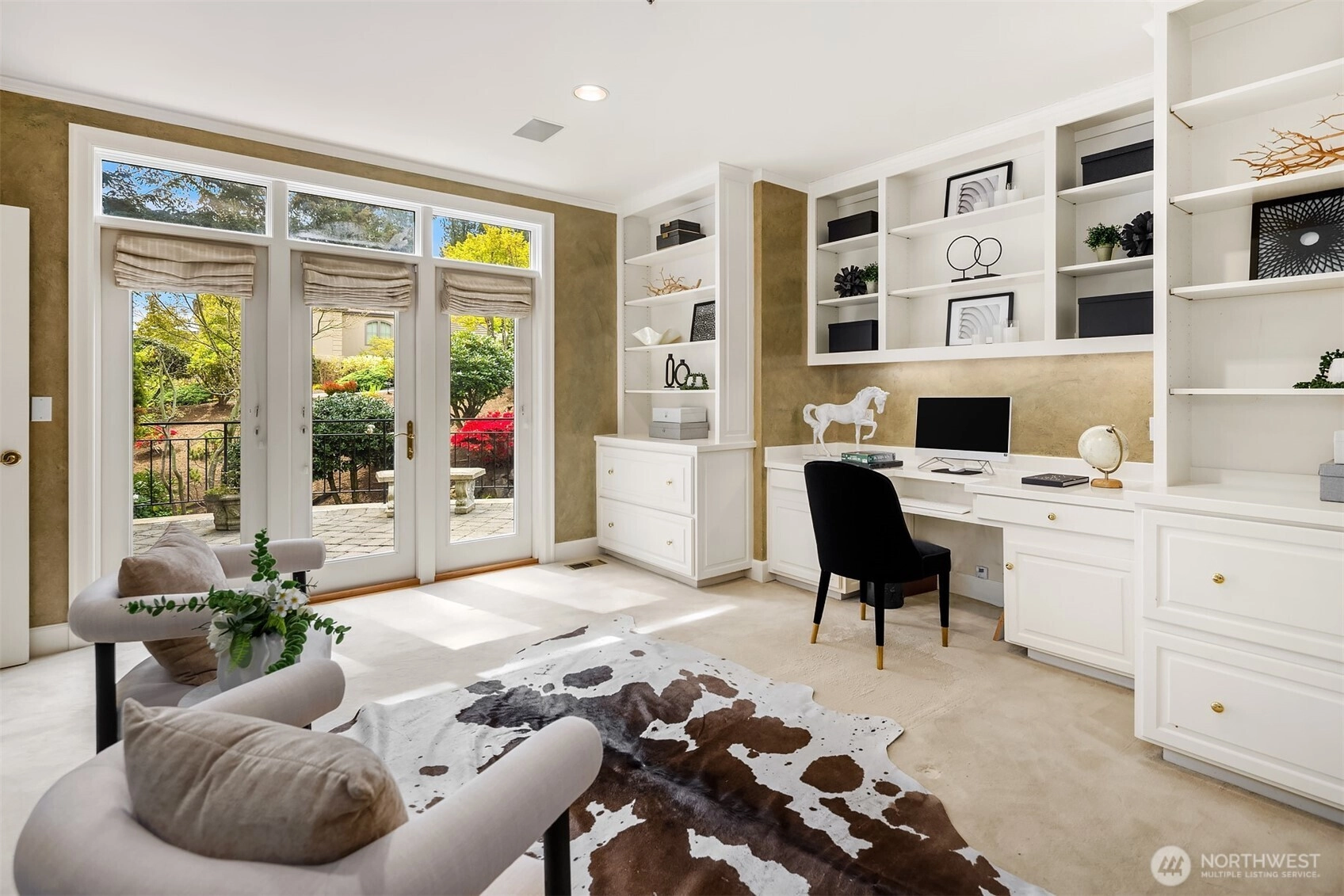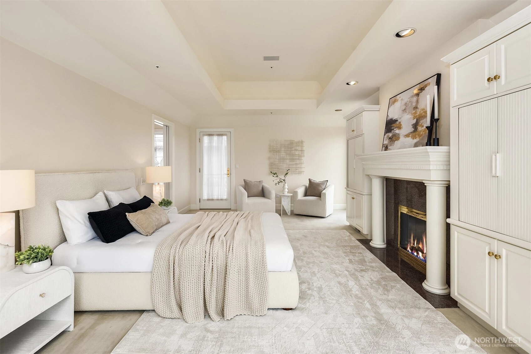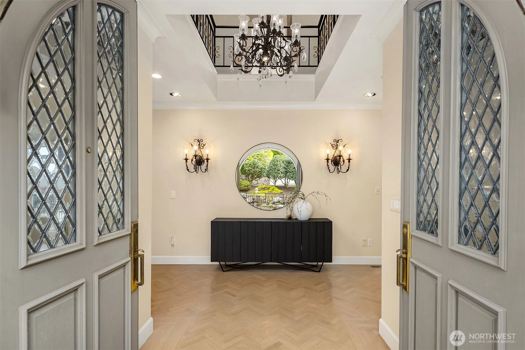 Tucked behind the private gates of Woodland Cove in Juanita, this rare Kirkland offering delivers an unparalleled blend of luxury, privacy, and waterfront lifestyle. Set on a combined double lot, the property provides exceptional scale and flexibility, featuring a beautifully appointed main residence alongside a ADU, ideal for guests or multigenerational living. Designed for both comfort and convenience, the main home includes an elevator and showcases stunning views of Lake Washington and Mount Rainier from multiple vantage points. Expansive living spaces are complemented by seamless indoor-outdoor flow, while the unique drive-through lot offers dual access points for effortless entry and exit. A true standout for collectors and enthusiasts, the property boasts garage space for up to seven vehicles. As part of the exclusive Woodland Cove community, residents enjoy access to private waterfront amenities, including shared shoreline and boat moorage on Lake Washington, bringing the best of Pacific Northwest living right to your doorstep. Private, versatile, and exceptionally rare, this is Kirkland living at its finest.