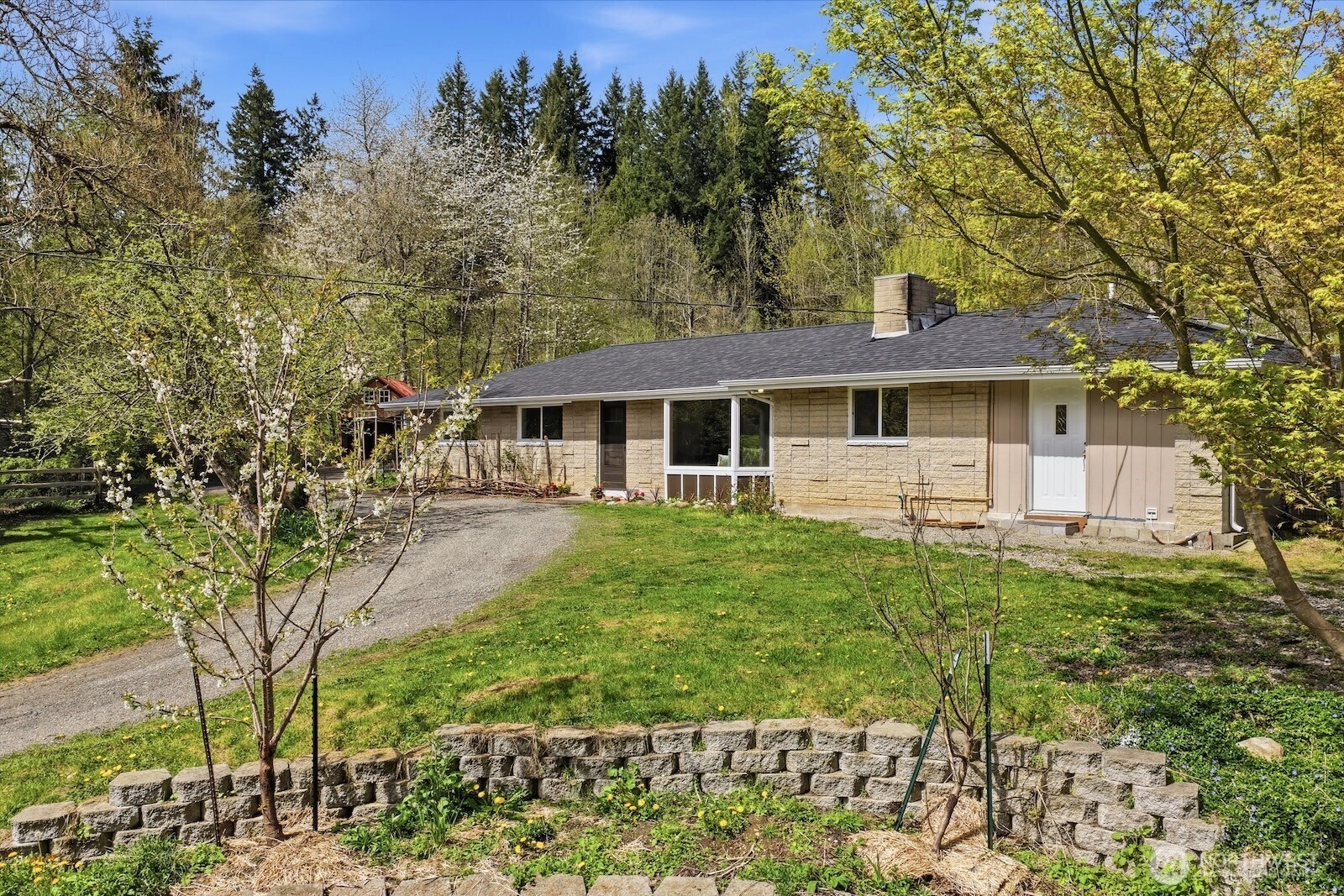 Acreage property on Carnation’s scenic Fay Road! Set on 3.59 spacious acres with room for animals, gardening, and play. One level living offers comfort and convenience. No HOA and plenty of RV parking. Refinished hardwood floors and fresh paint inside and out create a crisp, updated feel. New roof adds peace of mind. Cozy propane fireplace warms the living space. Updated kitchen offers style and function. Primary suite features a full bath. Relax or entertain year-round on the covered porch. Outbuildings include goat pens with pasture. Large detached carport and separate office space add flexibility. Fruit trees enhance the landscape. Enjoy privacy and rural living with quick access to Carnation, Duvall, and Redmond. Live your country dream here!