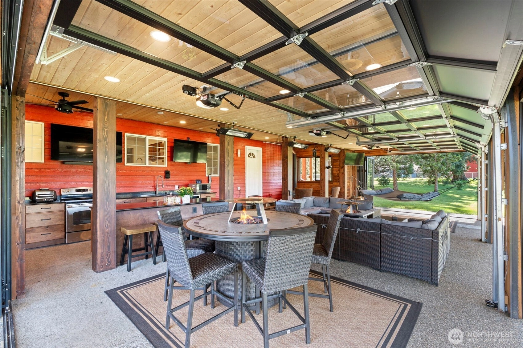 Step inside a world built for those who live without compromise. This 3,806 sqft custom retreat sits on 1.5 acres in a private gated 5-acre compound — invisible from the road,ending at Scatter Creek Nature Preserve trails — with $545K in permitted additions that redefine what a home can be. The indoor/outdoor entertaining pavilion stops guests cold: 3 LUX glass garage doors, twin 14ft ERIS bifold doors, Stoett motorized screens, 5 infrared heaters, tongue-and-groove ceiling, black quartz counters with metallic flecks, commercial kitchen exhaust, 2 beverage fridges, electric range, wood stove, and 2 propane quick-disconnects for fire tables and griddles. A heated Champion Windows sunroom with 25-jet Aquaterra Montara spa and motorized smart shades. A luxury wet bar with real brick wall, ice maker, dishwasher, Vermont Castings propane stove. A upper level bonus room offers flexibility for work or play. An 860 sqft second-story balcony frames Black Hills sunsets.Producing orchard: Rainier, Bing, and sweet cherries, Honeycrisp apples,peaches, plums, Asian pears, blueberries & raspberries. 50-year roof (2022), 3-car garage, heat pump, tankless water heater, 200 amp, 2 robot mowers, no HOA. Through May 8: bundle with adjacent income producing property (6849 183rd, $699K) (MLS#2500025) that comes with 48x36 insulated pole barn/shop with two 14-ft bay doors and save 5% on each — ~$80K total savings. SHOWINGS BY APPOINTMENT ONLY