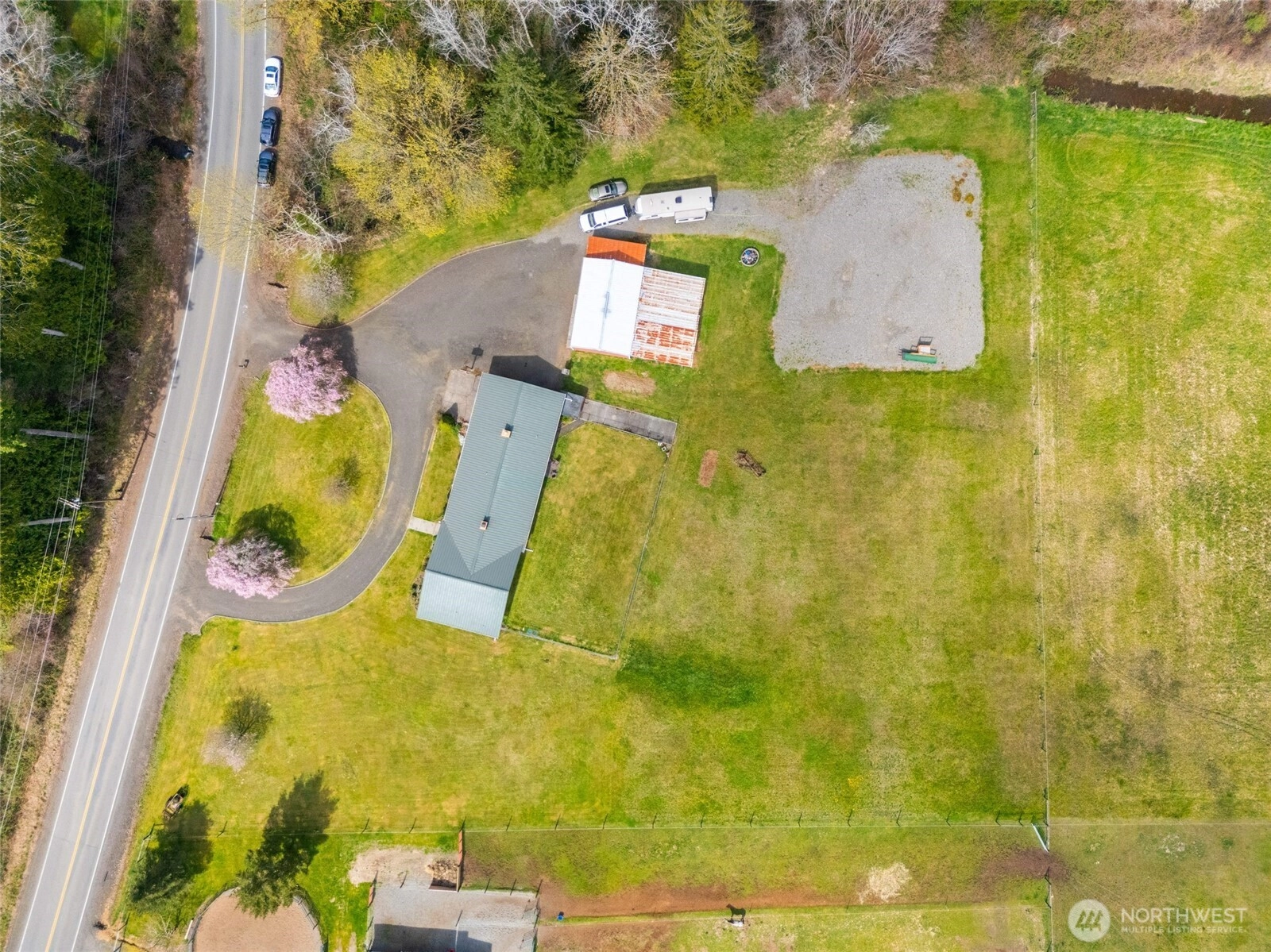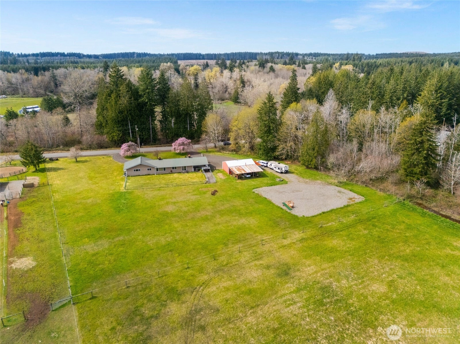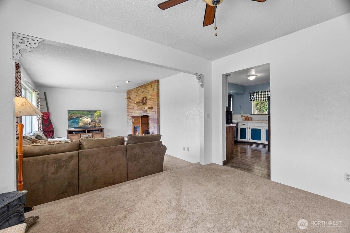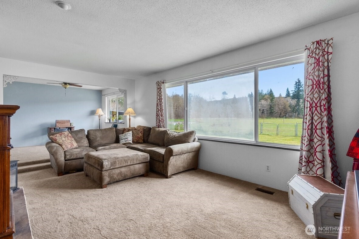 Just 2.5 miles from the McCleary freeway exit, this 2,195-square-foot, west-facing residence sits on 2.2 level acres—nearly 96,000 square feet of open, usable land—with a pastoral view that never tries too hard, yet never disappoints. It is the kind of setting people move for, then wonder why they waited. Inside, the plan is both sensible and generous. A formal living room, anchored by a fireplace and a wide picture window, opens to a dining room designed to frame the landscape. The kitchen is thoughtfully designed with ample cabinetry, a peninsula with eating bar, and a casual dining area with a row of windows that welcomes in natural light. There are four bedrooms and 2.25 baths, including a primary suite with dual closets and its own private bath. A large family room with a wood-burning stove insert offers a second place to gather—or retreat—with easy access to the carport and backyard. Comfort is handled quietly, with a heat pump for efficient heating and cooling and ceiling fans. Outside, the property becomes even more compelling. A detached garage with shop, carport, and covered equipment parking provide flexibility for hobbies, storage, or work. A dog run and partially fenced yard make daily living easy, while a seasonal creek borders the north side of the property, adding a natural sense of place. All of this, with an easy 20-minute commute to Olympia’s Westside, makes the setting as practical as it is peaceful.