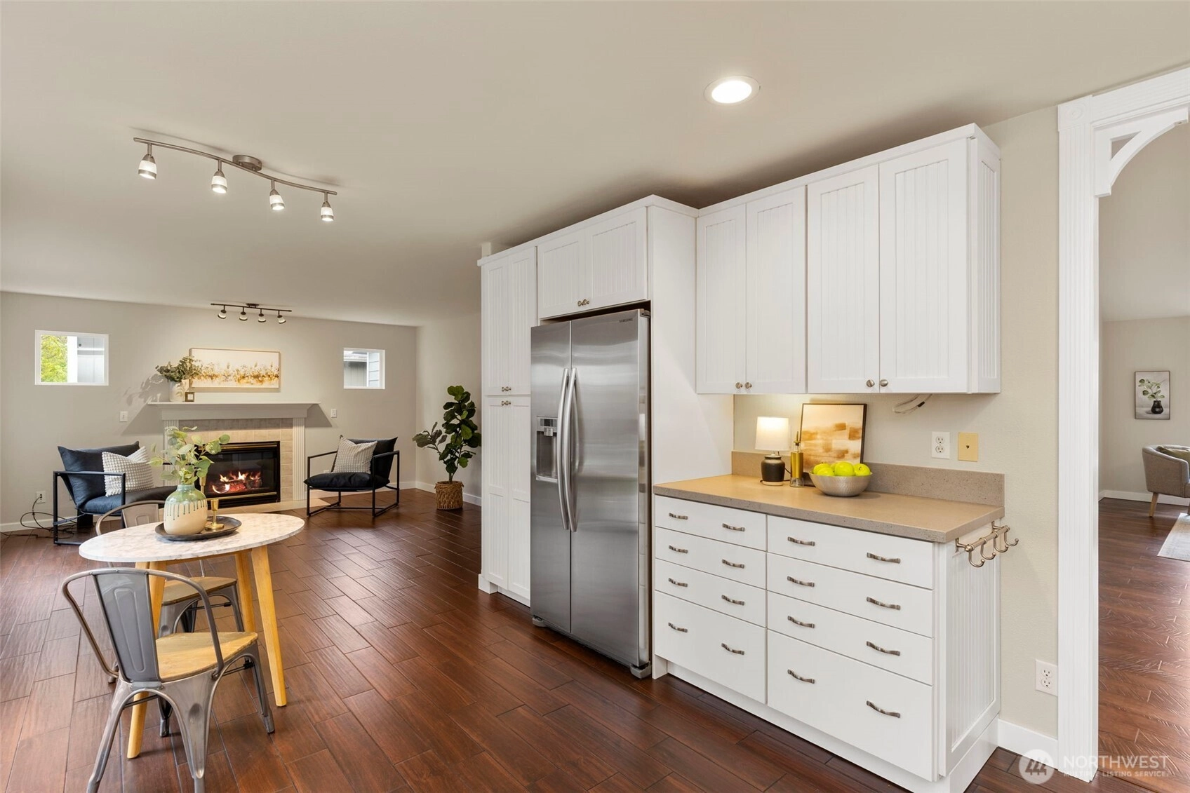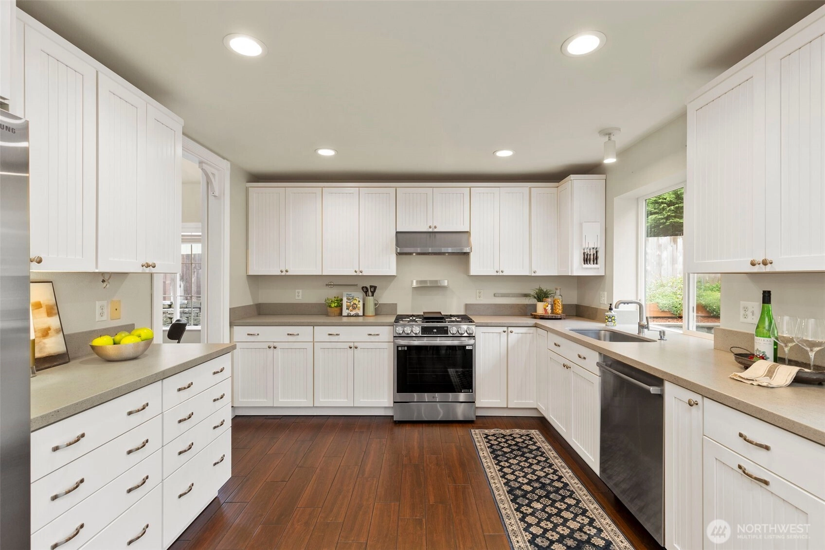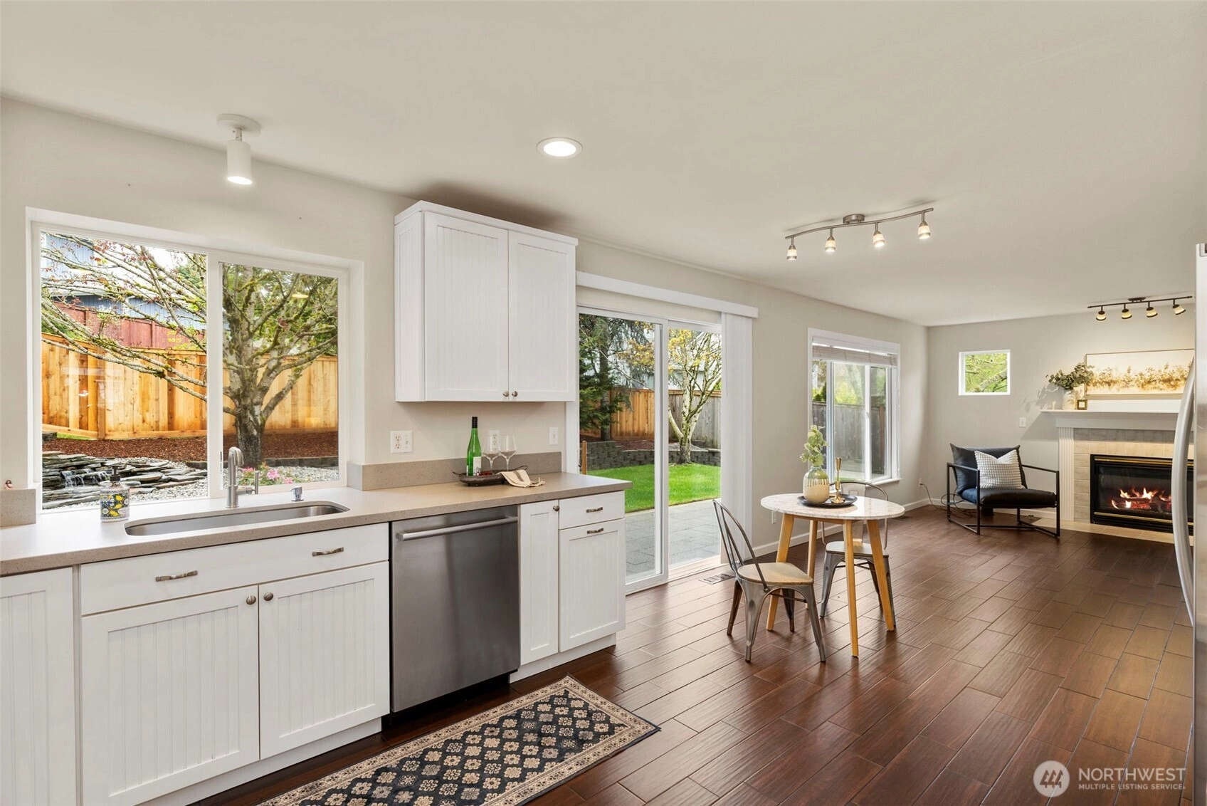 Welcome to Deer Run in Poulsbo—just minutes to downtown, shops, dining, and the waterfront! This 1,956 sqft home offers 3 beds + 2.5 baths with thoughtful updates throughout. Main level features Pergo flooring, two living spaces (one with cozy gas fireplace), and a beautifully updated kitchen with white cabinets, quartz counters, newer stainless appliances, and brand new dual-fuel range. Also in the kitchen, enjoy wood-look tile with radiant heat. New floor-to-ceiling pantry cabinetry connected to the new laundry room addition. Upstairs you’ll find a spacious primary suite with 5-piece bath, 2 guest rooms, and full bath. 3-car garage includes a workshop with loft storage. New roof. New interior and exterior paint. Type 2 Tesla wall charger included. Fully fenced yard with mature landscaping, patio, garden beds, and radiant heated 8x10 shed—perfect for hobbies or workspace! Meaningful and useful updates make this house move-in ready!