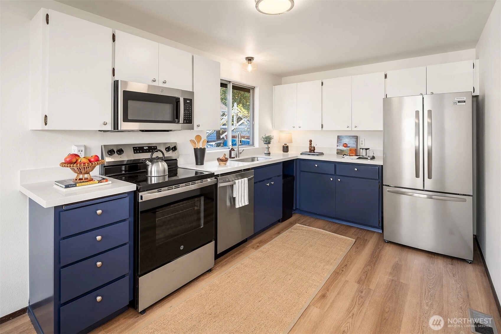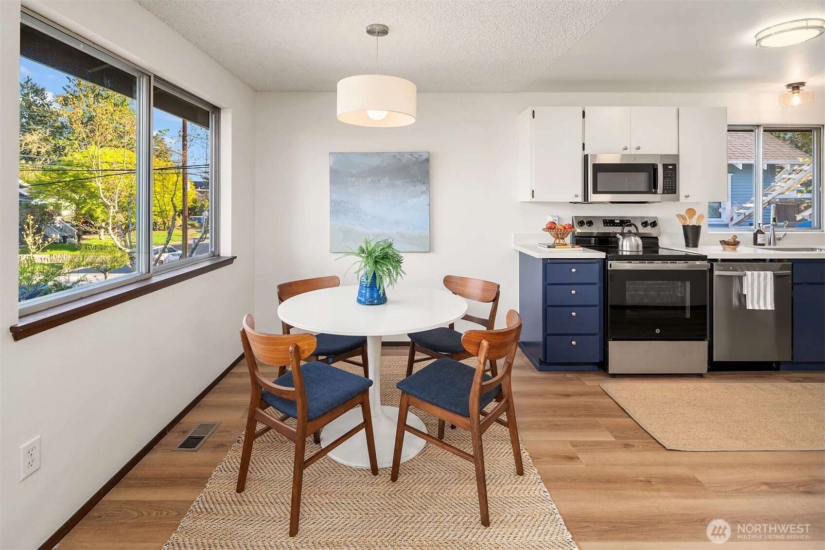 Nestled on a quiet street in sought-after Belvidere, this freshly updated home blends original charm with thoughtful modern upgrades. Freshly painted inside and out, it features a refreshed kitchen with brand-new stainless steel appliances and quartz countertops, upgraded baths, and new flooring. Major system updates include a newer roof (2022), furnace (2020) and water heater (2026). Main floor offers a functional, inviting layout with cozy wood-burning fireplace anchoring the living room and seamless flow to dining and kitchen. Down the hall, you’ll find the spacious primary bedroom w/access to full bath and back deck + two additional bedrooms (3 BRs on same floor! A true rarity in the neighborhood). The lower level offers exceptional flexibility with large bonus room or potential MIL suite / studio featuring a connected full bath and backyard entrance, along with an additional bedroom, office or rec room across the hall. Level backyard with ample garden space and refreshed deck. 1-car attached garage, driveway parking + ample street parking. Prime location minutes to the West Seattle Bridge, Alki Beach, Alaska Junction and Admiral, with an abundance of shops, dining, and amenities close by.