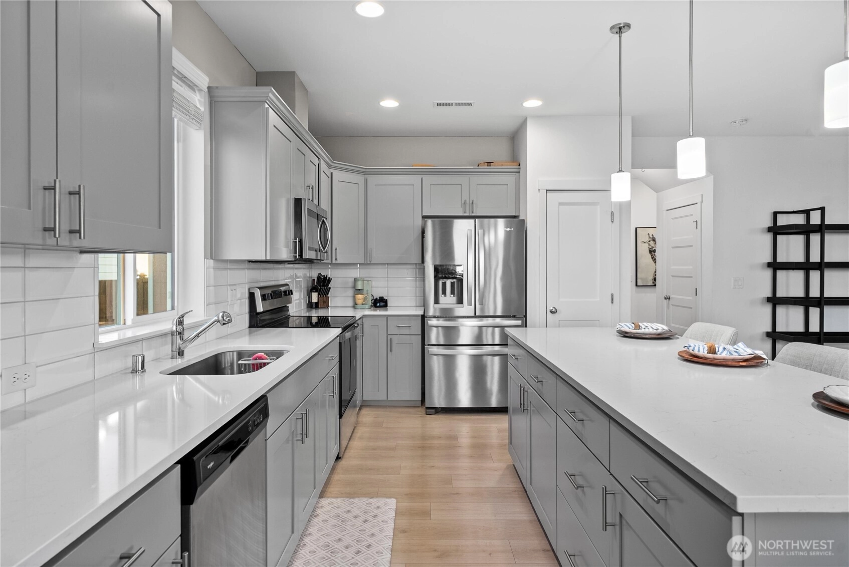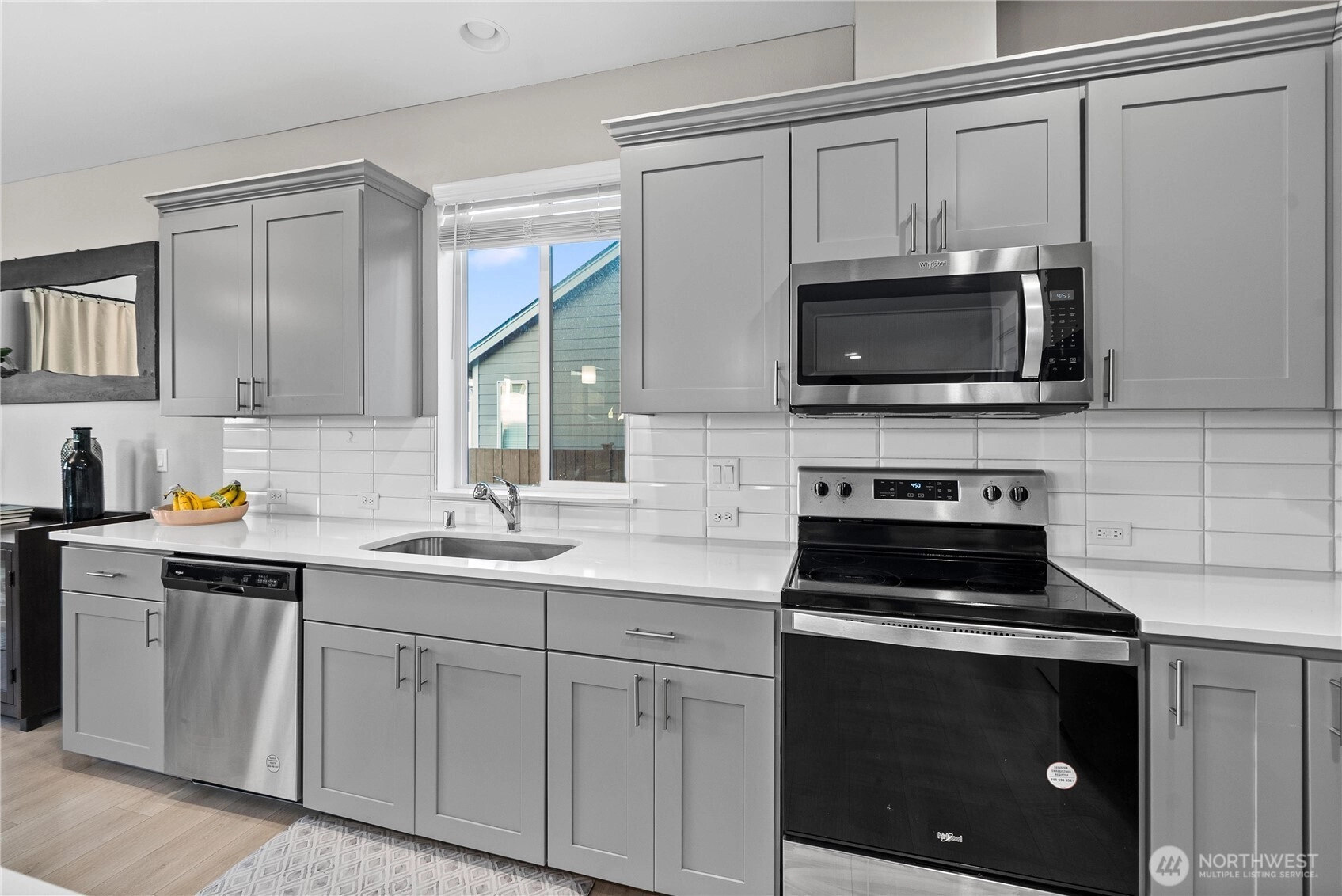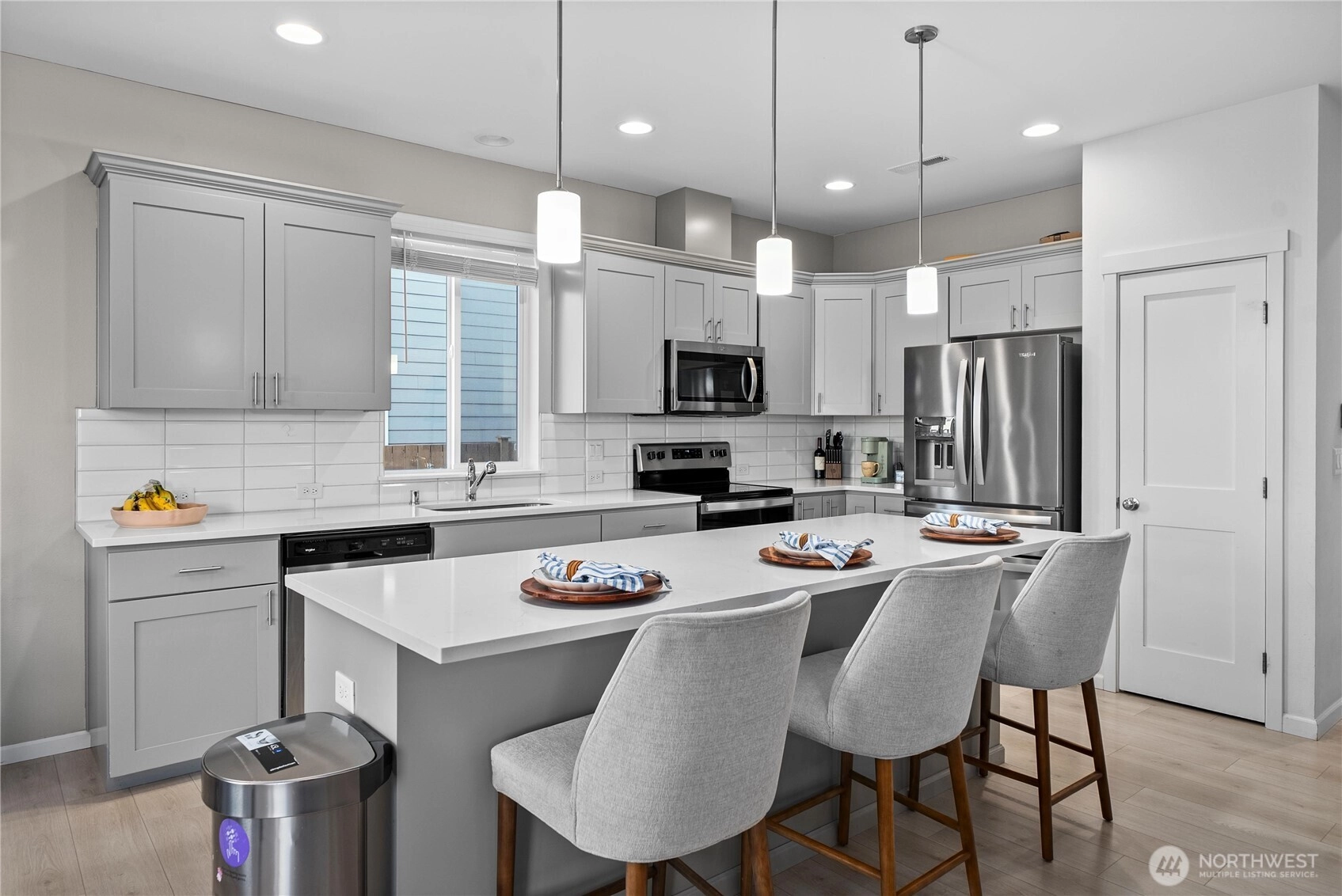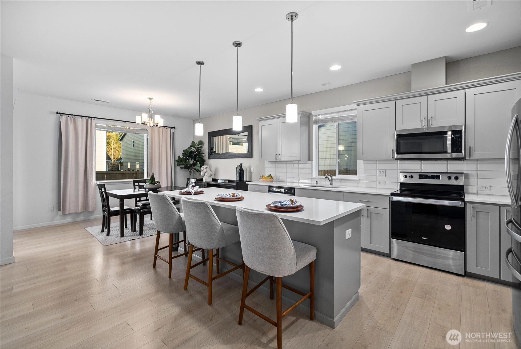 Don't miss this sprawling, like-new 3-story home offering 2,737 sq ft of living space, featuring a rare 3-car garage in Yelm’s newest premium neighborhood and it happens to be Soundbuilt's BEST floor plan they are no longer building! This massive 4-bedroom home offers an open-concept main level with a seamless living and dining area, highlighted by quartz countertops, LVP flooring, and stainless steel appliances. Upstairs, you’ll find generously sized bedrooms and living space, while the third floor boasts an expansive bonus room with a full bathroom—perfect as a second primary suite, guest retreat, or media space. Enjoy year-round outdoor living with a covered back patio-plus a fully fenced backyard. Stay comfortable all year with an efficient heat pump and central A/C. Modern finishes, flexible living spaces, and thoughtful design throughout make this home stand out from the rest. Short sale subject to lender approval. List price not yet approved by lender and may not reflect payoff amount. Allow time for third-party approval. Property sold as-is.