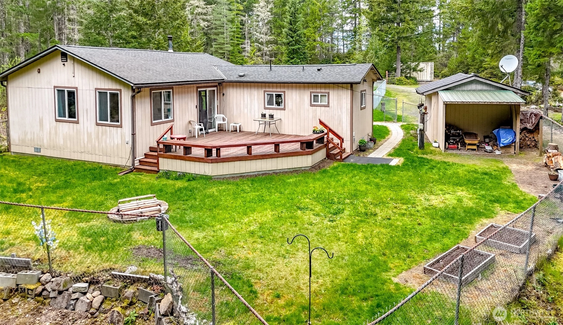 This exceptional property is a unique diamond! 2 Bedroom house with hisand hers walk-in closets with 2.41 Acres with a private individual welland gated entry. 18'X23' pressure-treated wood deck. Additional storage,10X20 self-contained shipping crate, and 12X12 wood sided shed on slab.Insulated windows- RV carport full hook-ups. Large 5' chain link fencedyard approximately 5000 SQ FT. cleared building site with one owner!