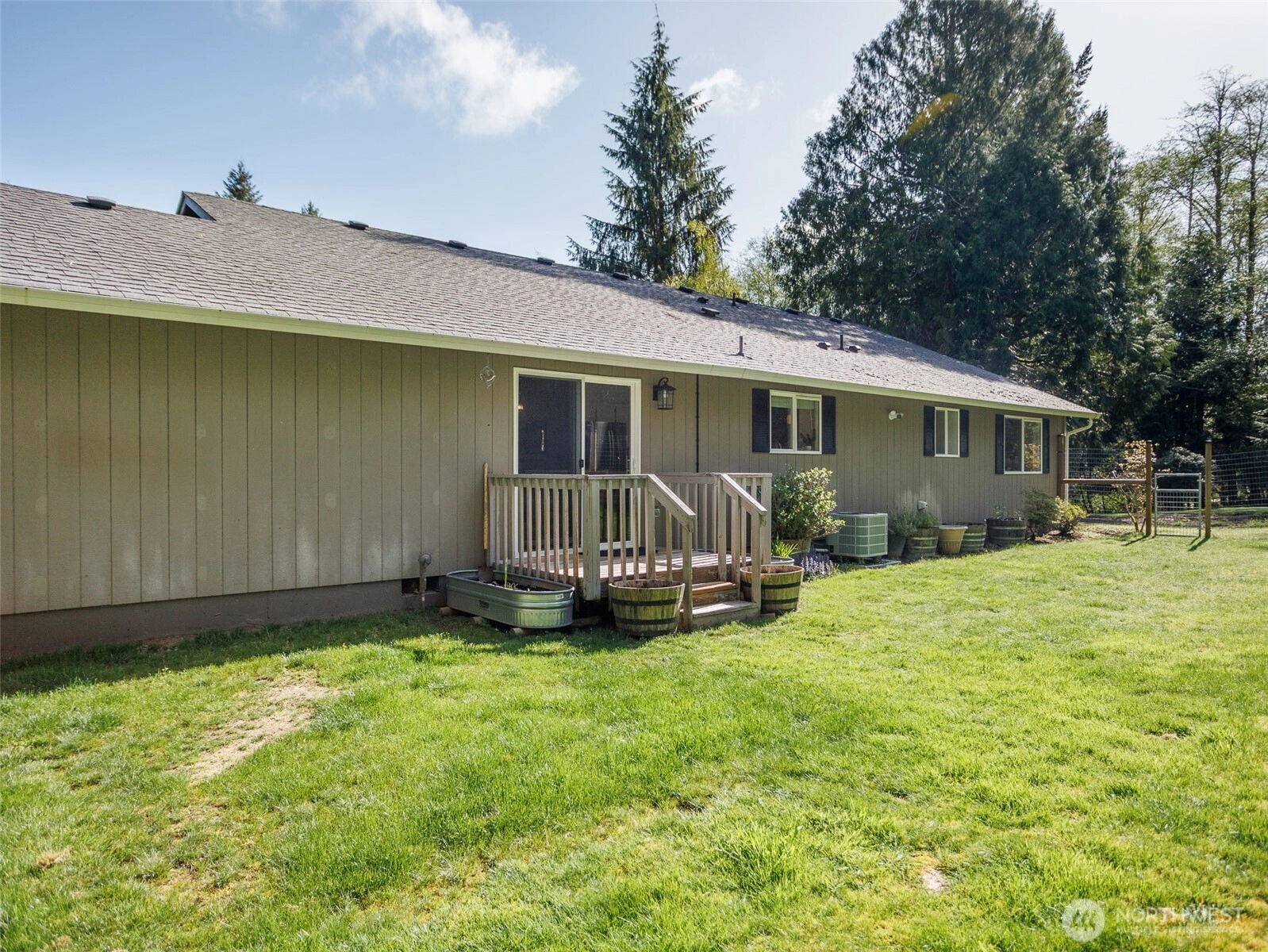 Elevated Northwest Living-Private Retreat with Expansive Outdoor AmenitiesWelcome to 25 Carol Lane-where space, functionality, and modern updates come together on 5 beautiful acres. This well-maintained 3- bedroom, 2-bath rambler offers easy single-level living with thoughtful upgrades throughout. Step inside to discover new LifeProof flooring and fresh interior paint, creating a clean, contemporary feel that's truly move-in ready. The home is equipped with a 2-year old HVAC system for year-round comfort and efficiency, along with EV charging in the garage for added convenience. Outdoors, the property truly shines. A beautiful deck off the back of the home provides the perfect setting for entertaining, enjoying your morning coffee, or simply taking in the fresh Pacific Northwest air. With three versatile outbuildings, there's ample room for storage, hobbies, or workspace. Even more valuable, the property includes water, sewer, and power hookups already in place-ideal for a future shop, ADU, or RV setup. Enjoy the privacy and flexibility of acreage living while still having all the essentials in place for expansion and customization. This is a rare opportunity to own property that combines immediate livability with long-term potential.