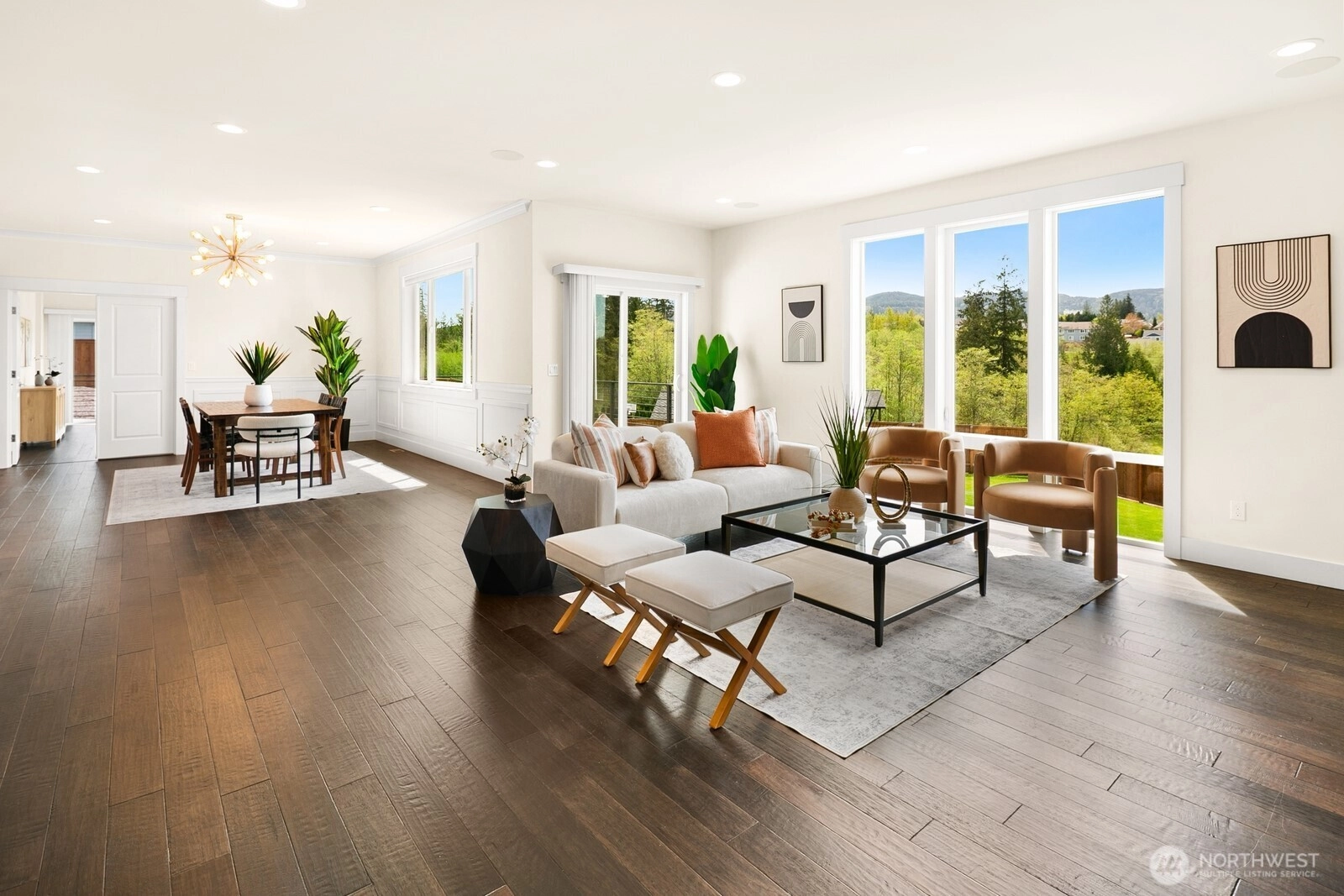Beautiful 180° views of Otter Pond Valley and the surrounding mountains set the stage for this light-filled home. The great room showcases floor-to-ceiling windows, custom built-ins, and gas fireplace. A chef’s kitchen features designer Bertazzoni SS appliances. The primary suite offers a spa-like bath, dual walk-in closets, and a private deck for peaceful retreat. Two additional bedrooms plus a den complete the main level. The lower level, with a separate entrance, w/kitchen, laundry, and ¾ bath perfect for guests or multigenerational living. A versatile flex room opens to expansive patio, seamlessly blending indoor & outdoor living. Just steps from the lake and community walking trails, this home offers the perfect daily escape to nature.