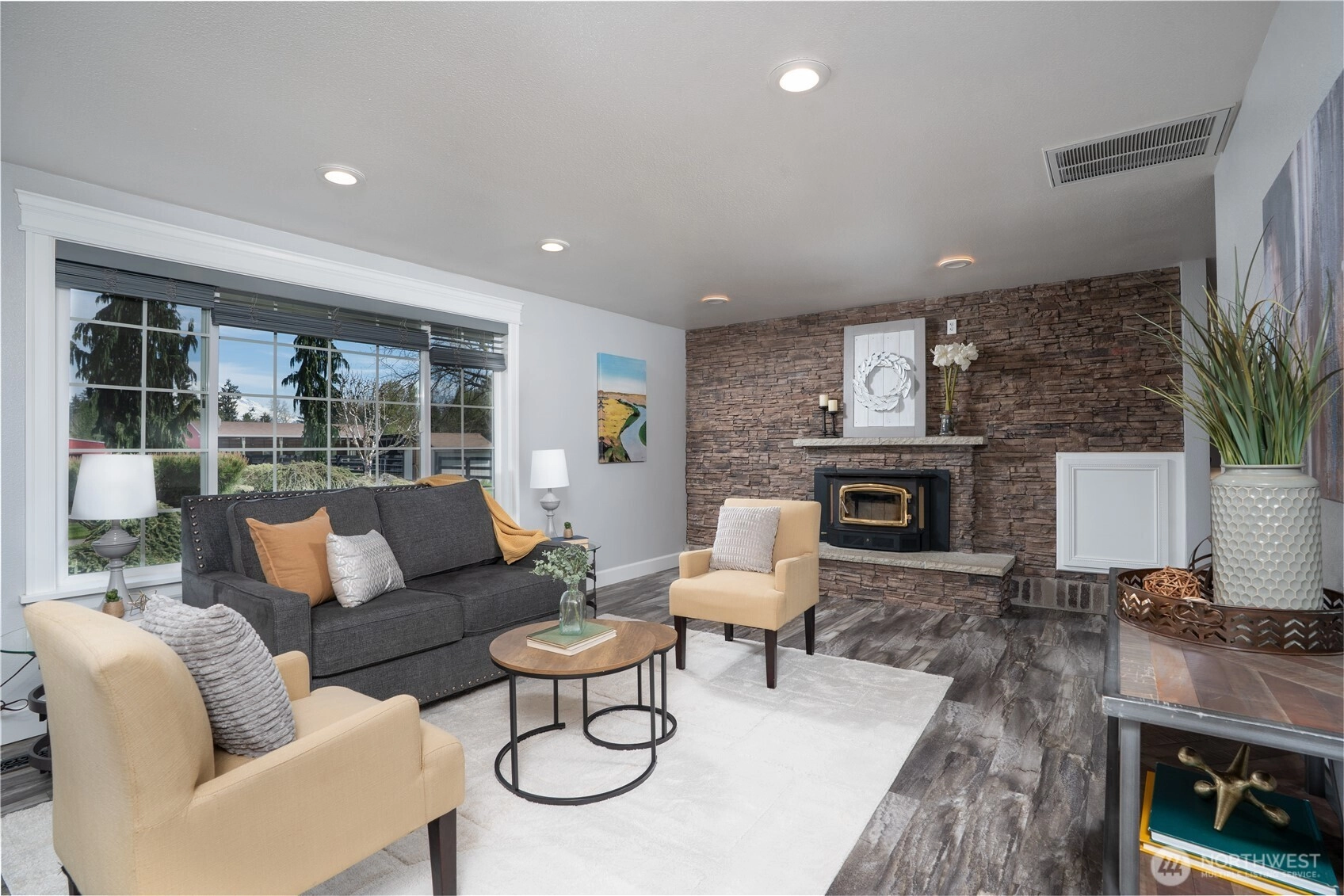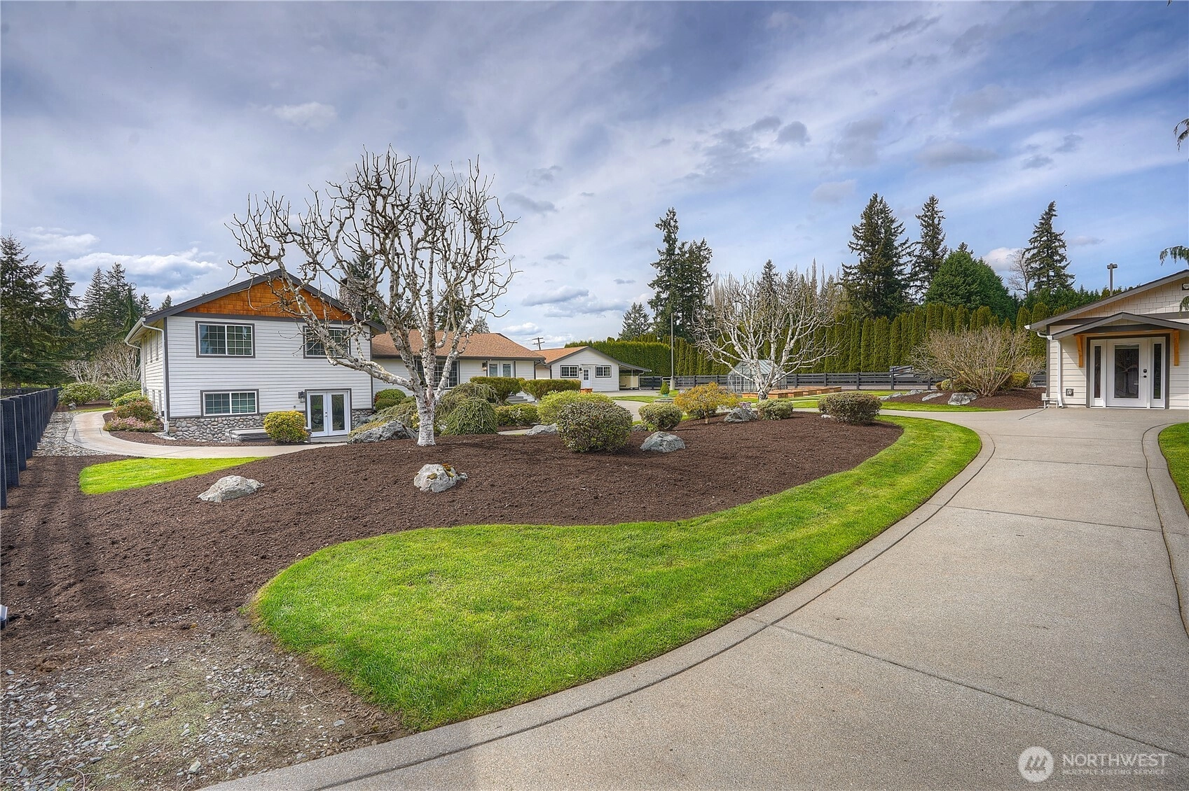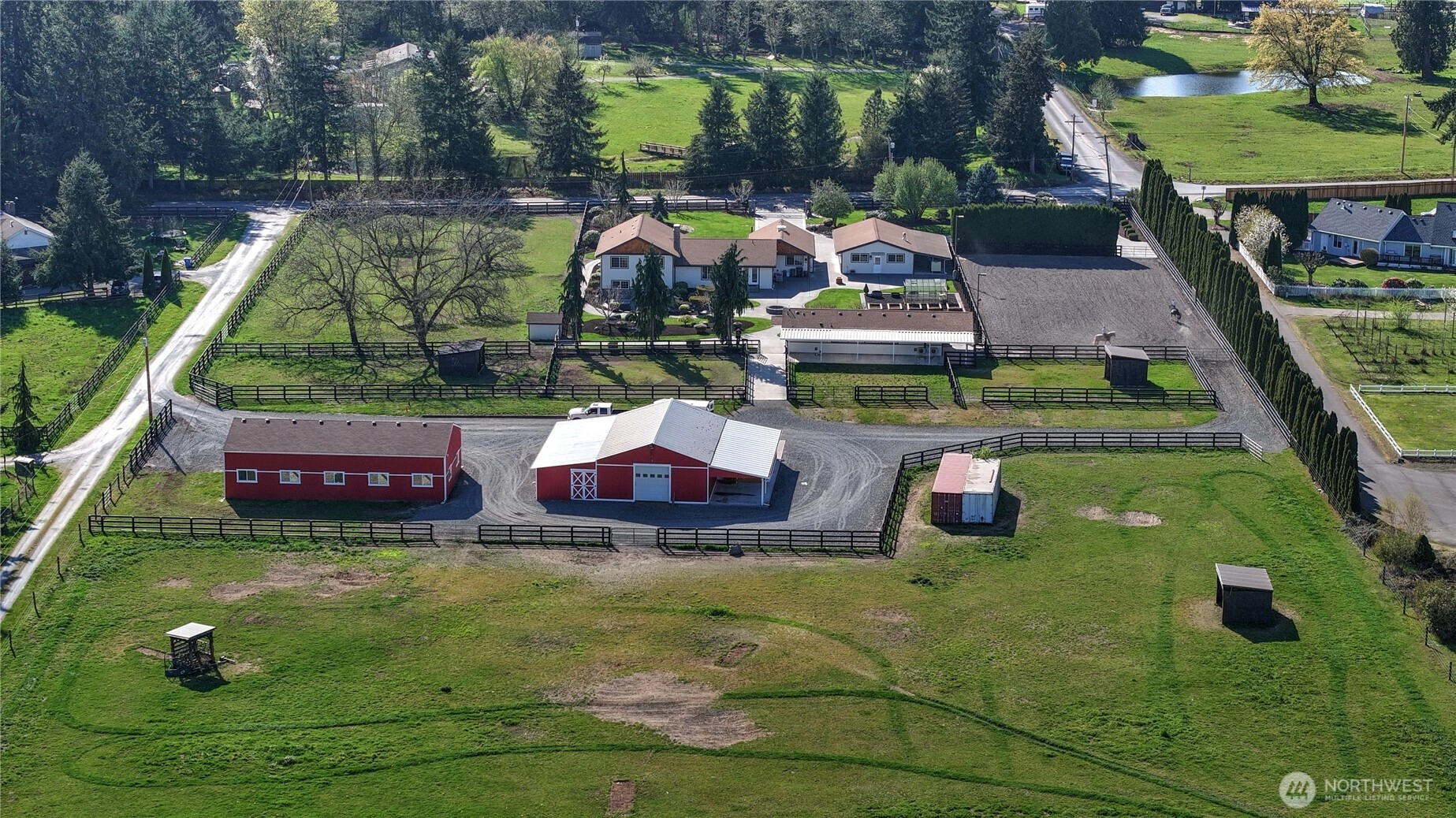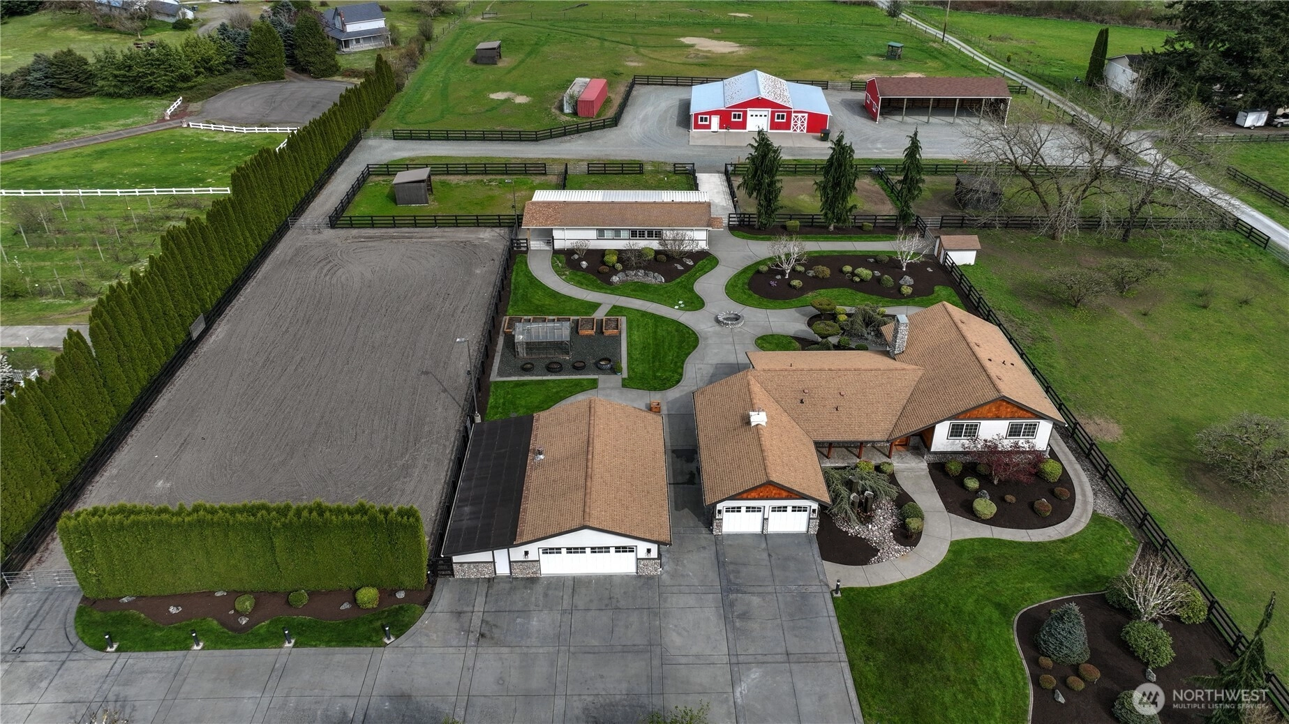 This one checks ALL the boxes!! An exceptional 10-acre equestrian estate with Mt. Rainier views, designed for horse enthusiasts, hobby farmers, or anyone seeking space, beauty, and versatility. Enter through custom wrought iron gates with stone columns and onto impeccably maintained grounds framed by mature landscaping and wide-open pastures. The tastefully updated 3-bedroom home blends comfort & luxury with a chef’s kitchen featuring high-end stainless appliances, granite countertops and custom tile back splash, open living spaces, and a spacious owner’s suite with fireplace, spa-inspired bath, huge walk-in closet, and French doors which leads to a private patio with hot tub. A finished 1,000sf detached art studio with ¾ bath extends your living space, and adds flexible area ideal for a home office, gym, bonus room or your creative needs! The 8-stall show barn features power, water, tack room, and feed storage, while the 160x75 outdoor arena offers all-weather footing & lighting. A 60x30 detached 5-bay pole barn/building provides abundant space for equipment, RVs, vehicles, or workshop use. The property is fully fenced & cross-fenced with dual access with plenty of room to turn your horse trailers or big rigs around and is perfectly tailored for heavy equipment or the most discerning mechanic's desires. This remarkable property delivers it all - space, style, and endless possibilities, every detail has been thoughtfully curated - move in ready, versatile, & unforgettable.