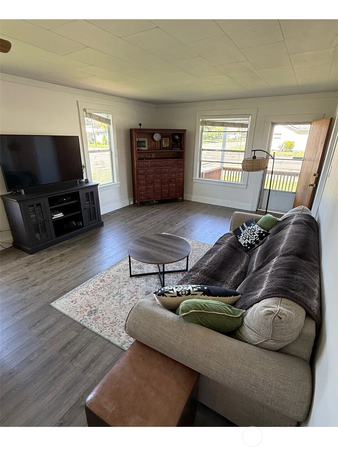 A charming 3 bed/1 bath rambler built on a corner lot in a central location, close to hospitals and downtown mount vernon (Less than ~1 mile). Entry opens to living area with natural light, kitchen has lots of counter space and room for a table. Brand new overhead microwave, water heater and flooring throughout the home. Great lounging area(s) with spacious fully-fenced back yard. New flower bed off of the front porch, with a brand new railing installed. Plenty of off street parking and U-turn driveway for easy access to E Broad Street.