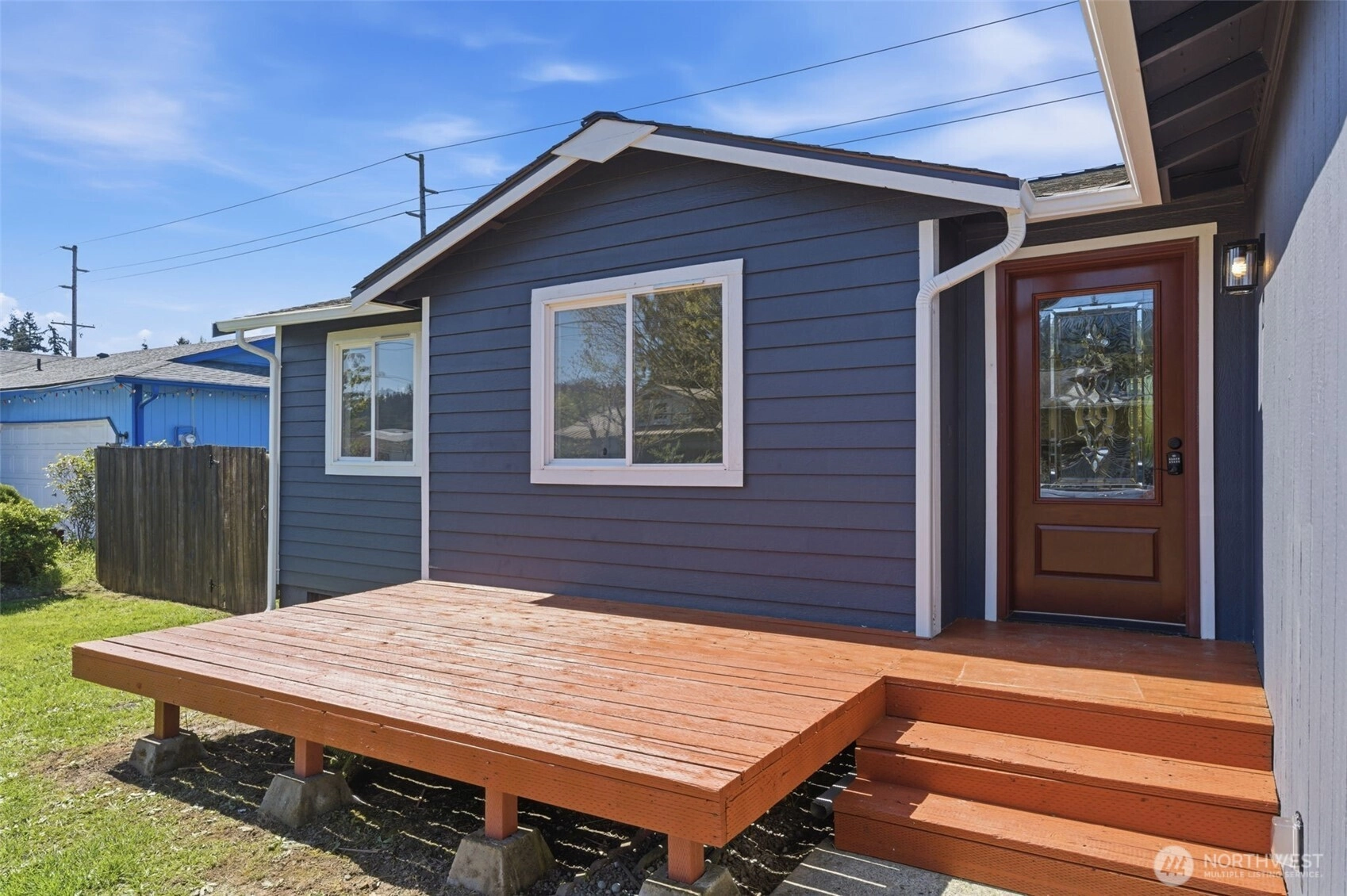 Updated and move in ready, this spacious 3 bedroom, 1.75 bath home features a desirable open floor plan with comfortable, functional living areas and great natural light throughout. Some of the recent upgrades include fresh interior and exterior paint, new luxury vinyl plank flooring, granite countertops, updated lighting, hardware, vanities, refreshed bathrooms, along with stainless kitchen appliances. The warm and inviting living room gives the home a comfortable feel, while the primary bedroom includes its own private bathroom. This home feels much bigger in person. Enjoy efficient heating and cooling with a heat pump. The covered back deck offers year round outdoor space, perfect for relaxing or entertaining. The property also includes a refreshed attached 2 car garage and a partially fenced yard. Conveniently located near schools, shopping, Shaw Aquatics Center, Penny Playground, Timberland Library, and just minutes from I 5 for an easy commute. Comfortable, convenient, and full of charm. Turnkey, updated, low-maintenance home with major work already done, perfect for a first time home buyer or rental property!