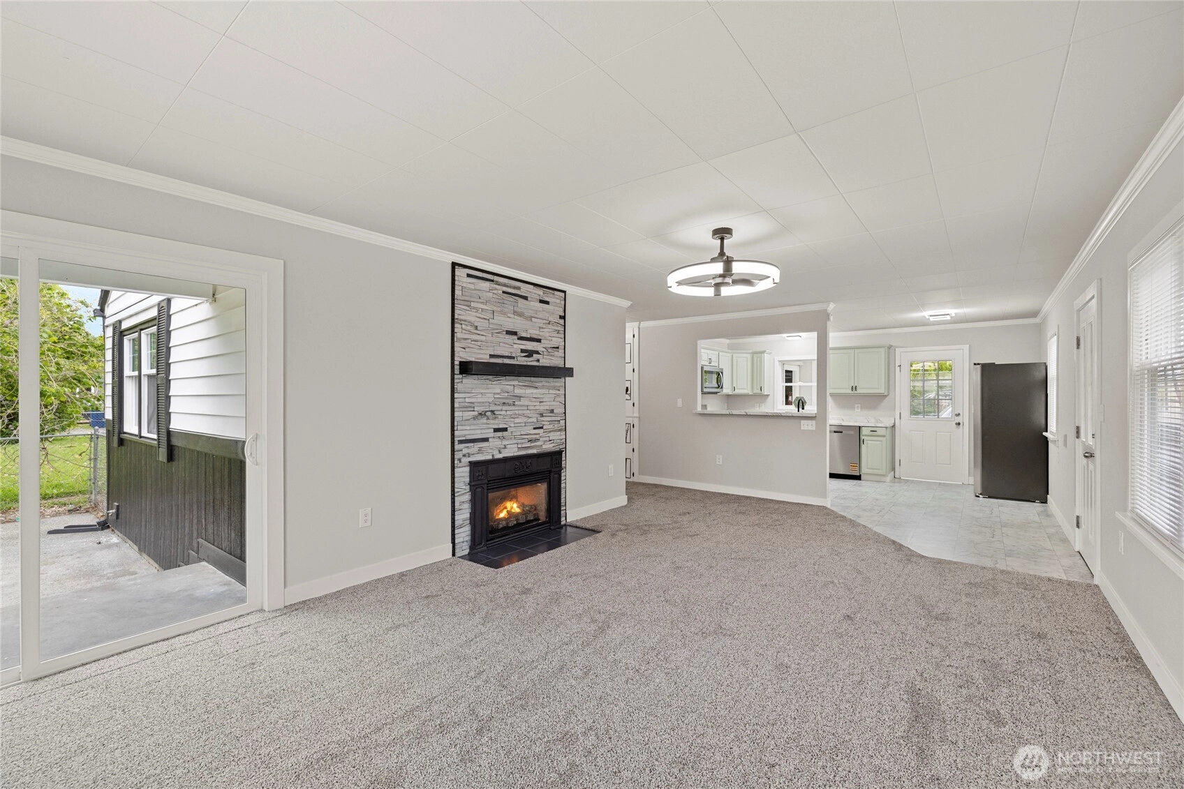 Welcome home! Completely updated, all new, roof, interior & exterior paint, carpet, vinyl, lighting, bathroom and kitchen.3 Bedroom 1 full bath. Nice tile surround gas fireplace in living room for those cozy nights. Living room is open to kitchen with a nice eat in bar area. 2 bedrooms and 1 bath on main level and large loft area upstairs makes for a large bedroom/office area. Large 1 car garage/ shop. Partially fenced, landscaped yard with patio and fruit trees. Great location, and within walking distance to shopping, restaurants and schools.