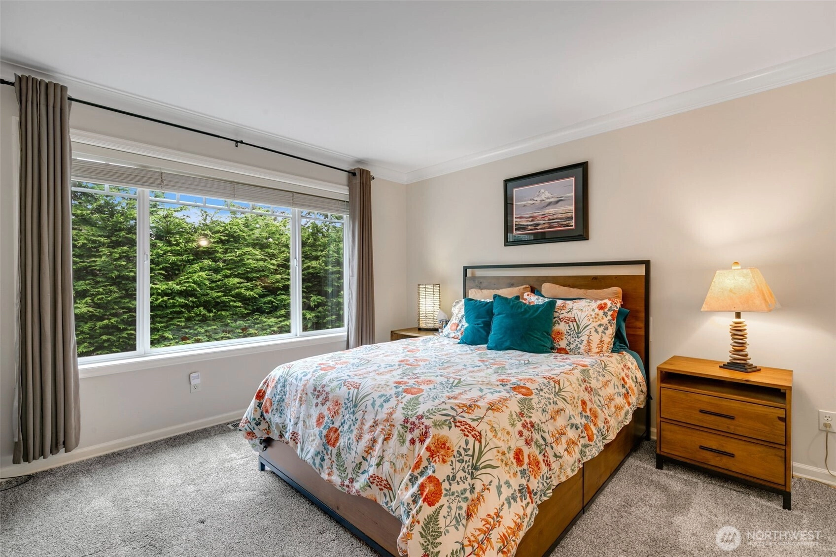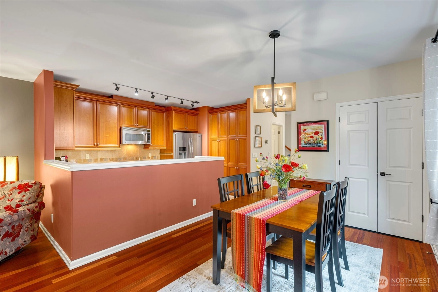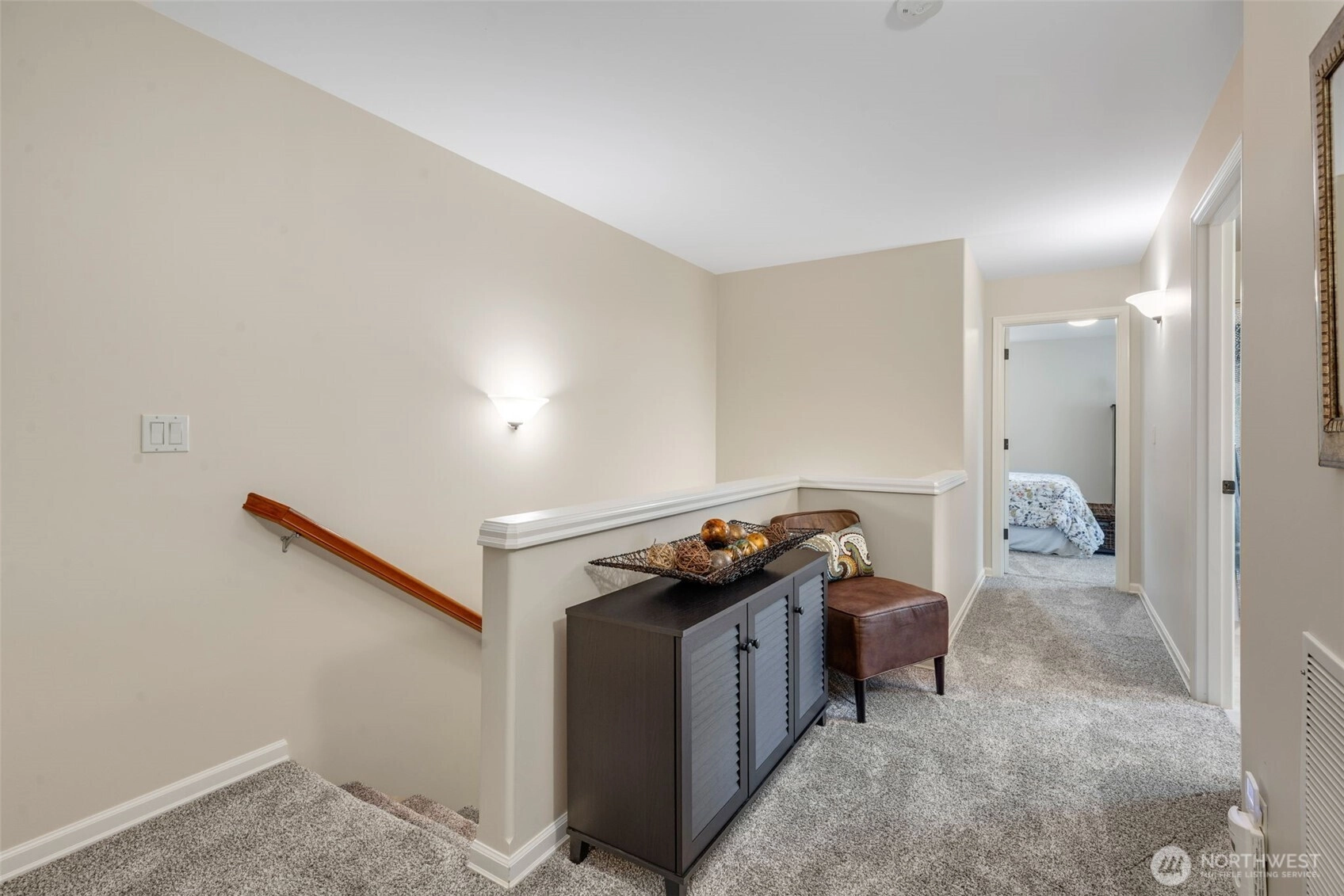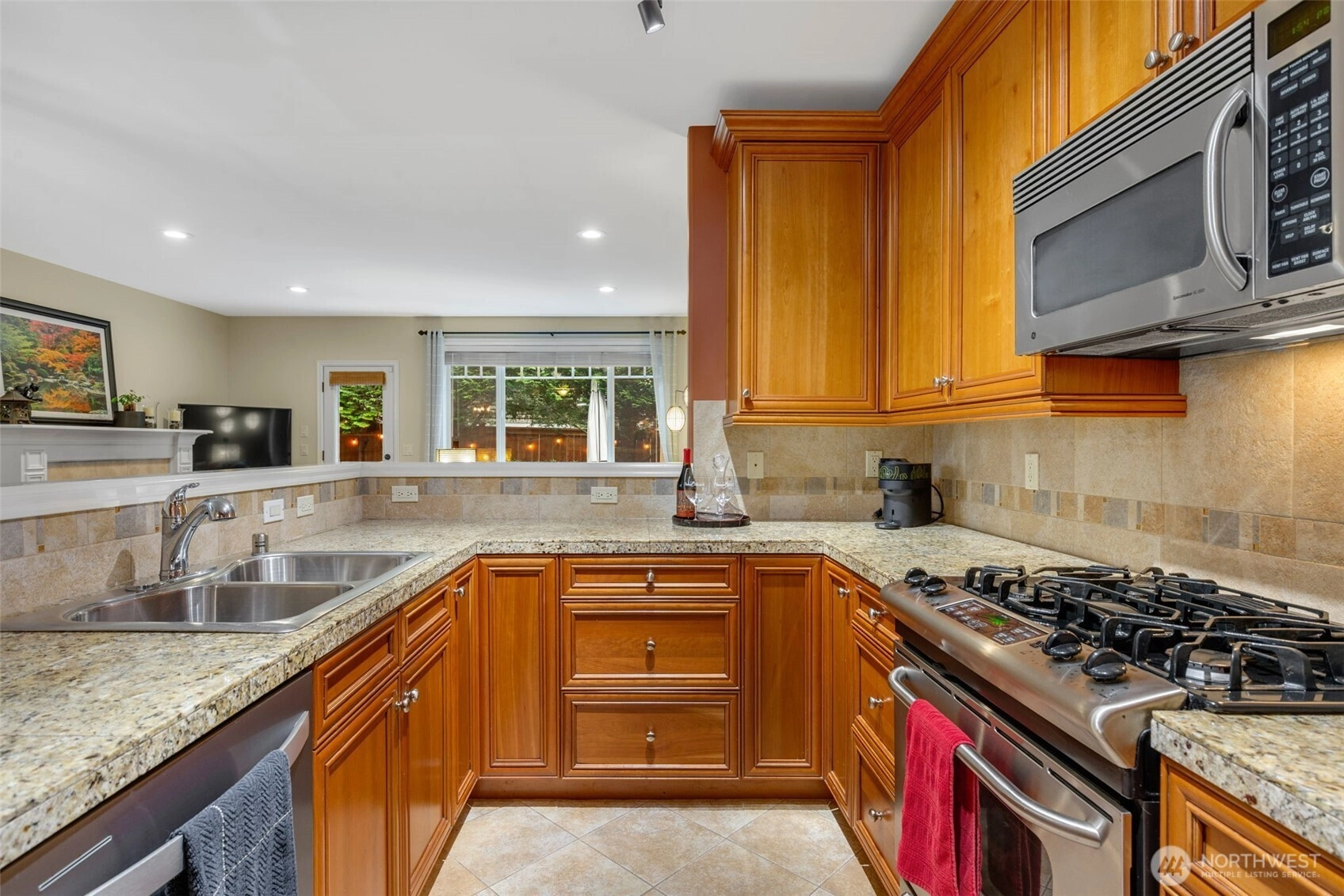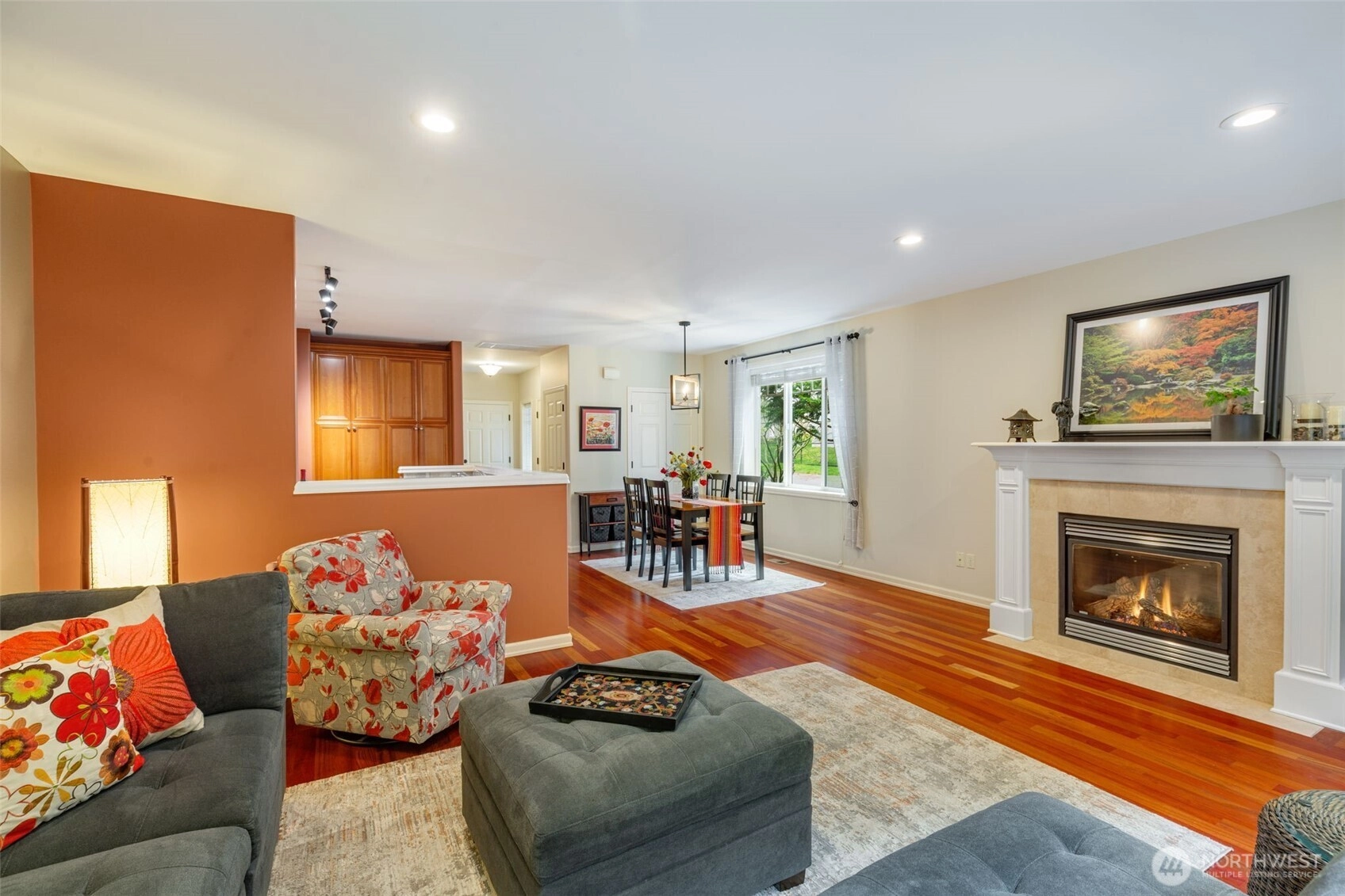 This townhouse truly lives like a gracious single-family home, with all the ease of condo living. The main level is filled with light, where high ceilings and a wall of windows create an airy, open feel. Rich Brazilian cherry floors ground the space including a dining area and an open kitchen with gas cooking and a abundant pantry storage. Switch on the gas fireplace, relax in the living room, open the door to a ground floor private back patio and garden- the kind of space that’s rare in townhouse living. Just two levels, the upstairs has all three bedrooms, and the primary looks out to a serene evergreen backdrop- with ensuite bath with double vanity + walk-in closet. Two additional bedrooms, a full guest bath, and a laundry room round out the upper floor with function and flexibility. An attached two-car garage plus storage, and a well-run, small HOA that covers water/sewer/garbage plus exterior maintenance and replacement- the exterior was freshly painted, too! An elusive combination of comfort, space, and simplicity. Tucked just above Puget Sound, the neighborhood offers that sweet Edmonds balance—quiet residential streets, quick access to daily essentials, and an easy trip down to the waterfront.