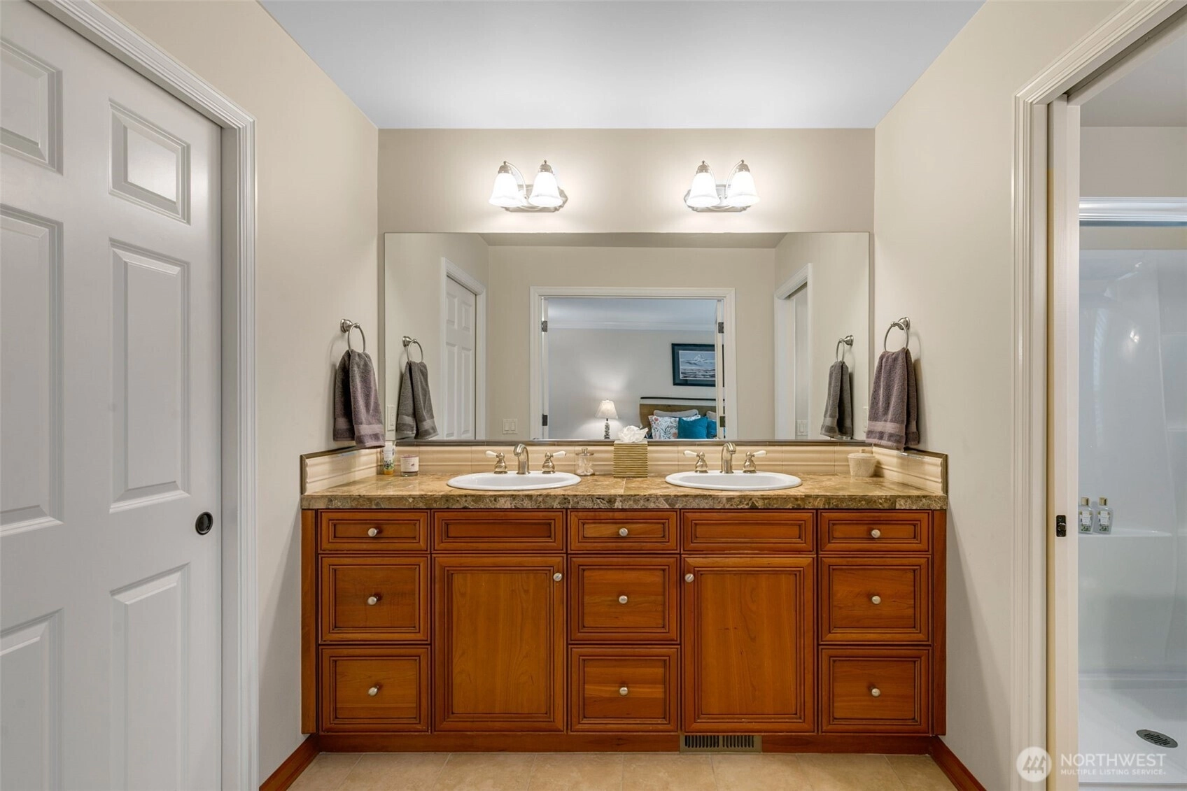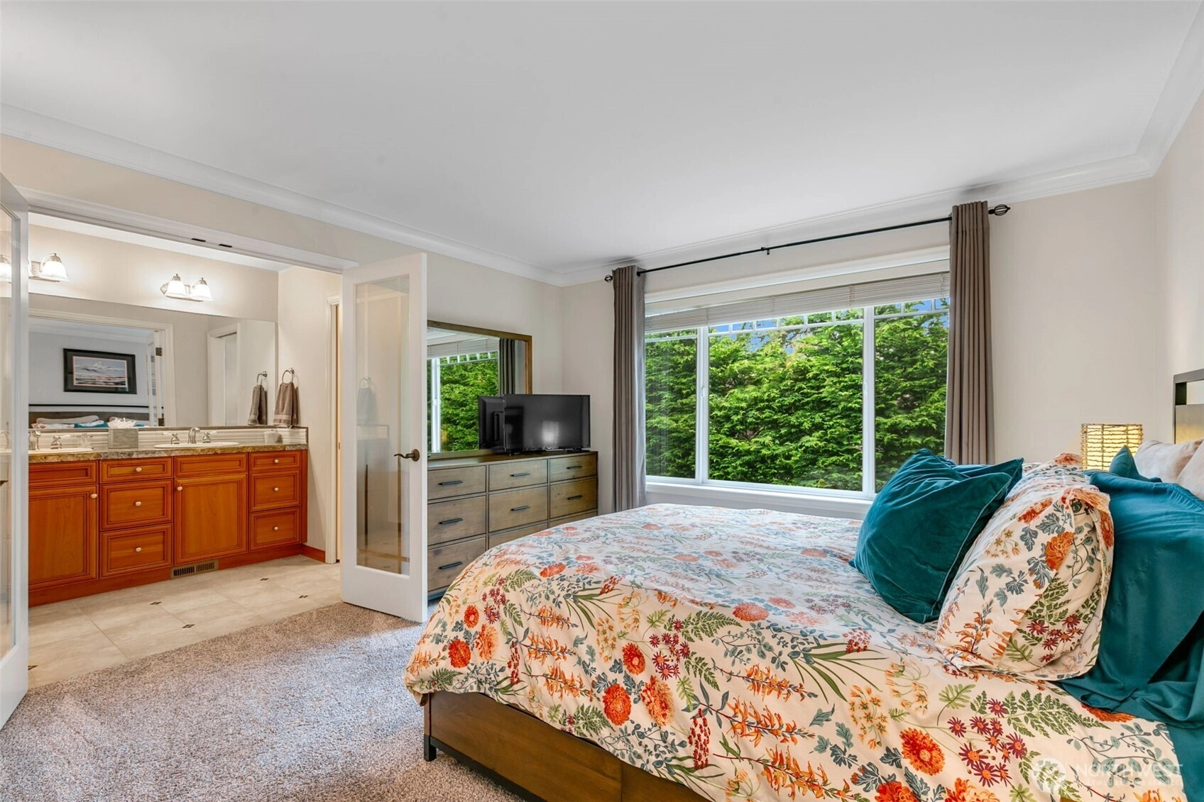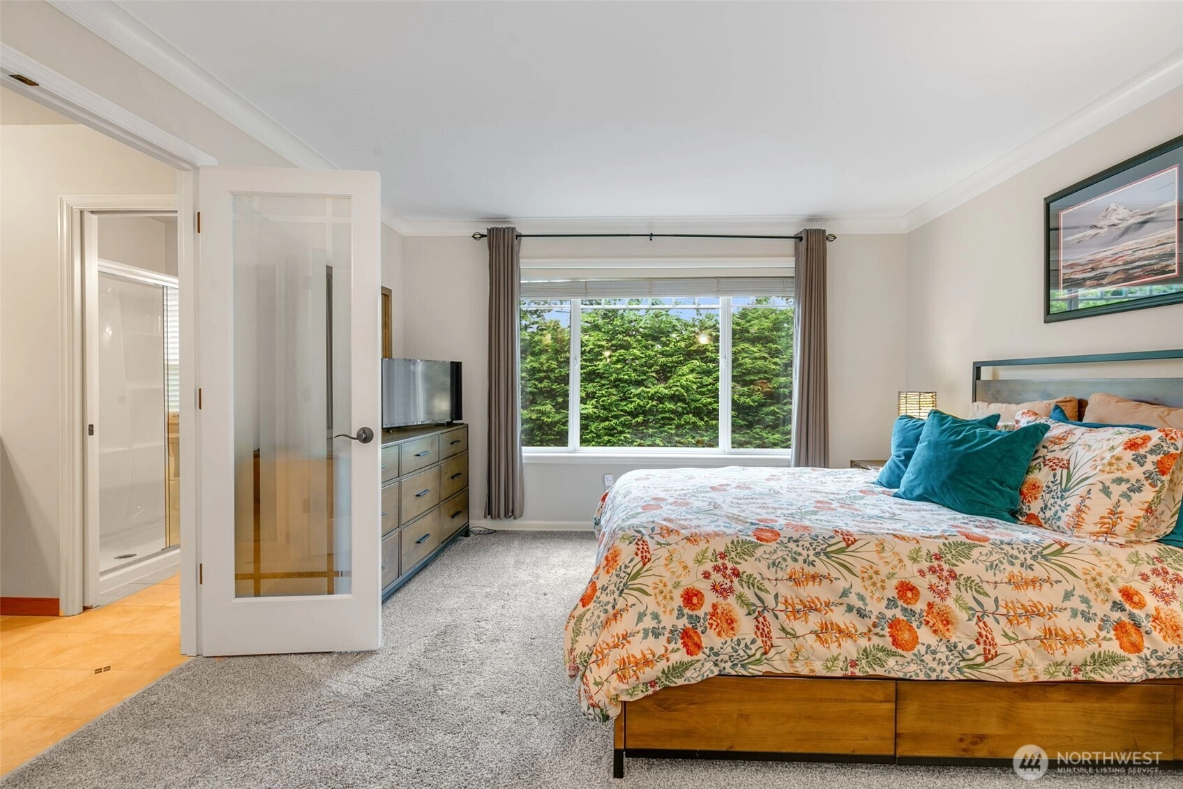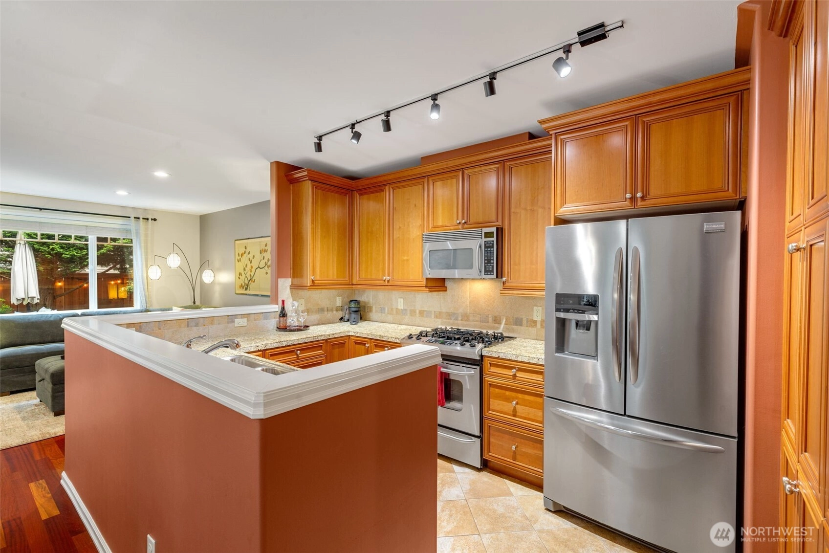 This townhouse truly lives like a gracious single-family home, with all the ease of condo living. The main level is filled with light, where high ceilings and a wall of windows create an airy, open feel. Rich Brazilian cherry floors ground the space including a dining area and an open kitchen with gas cooking and a abundant pantry storage. Switch on the gas fireplace, relax in the living room, open the door to a ground floor private back patio and garden- the kind of space that’s rare in townhouse living. Just two levels, the upstairs has all three bedrooms, and the primary looks out to a serene evergreen backdrop- with ensuite bath with double vanity + walk-in closet. Two additional bedrooms, a full guest bath, and a laundry room round out the upper floor with function and flexibility. An attached two-car garage plus storage, and a well-run, small HOA that covers water/sewer/garbage plus exterior maintenance and replacement- the exterior was freshly painted, too! An elusive combination of comfort, space, and simplicity. Tucked just above Puget Sound, the neighborhood offers that sweet Edmonds balance—quiet residential streets, quick access to daily essentials, and an easy trip down to the waterfront.