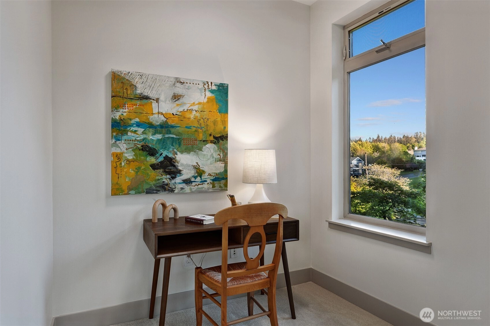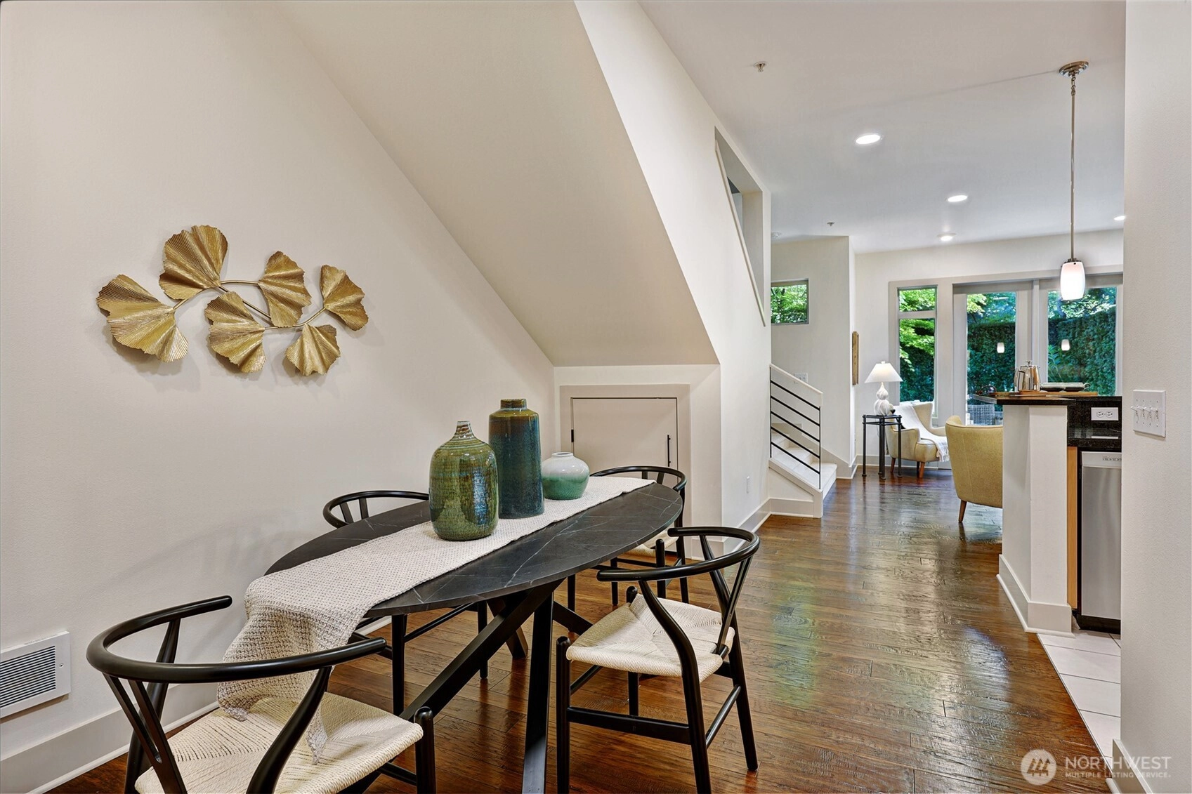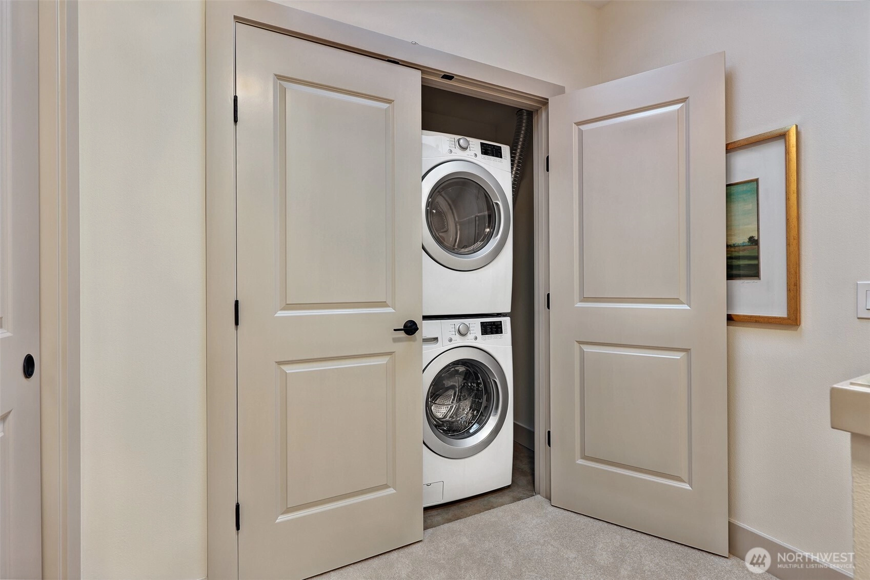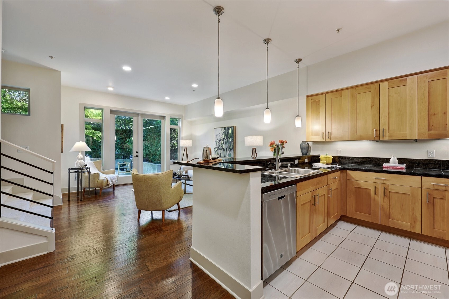 Highly treasured Point Edwards charming 1 bed, 1.75 bath condominium in Edmonds! Point Edwards community offers stunning views of Puget Sound and the Olympic Mountains. This bright, two-story residence features vaulted 12-ft ceilings on the main level, an open living and dining area warmed by a gas fireplace, and a main-floor bathroom for guests. Granite kitchen counters, brand new carpet and fresh paint throughout the unit. Step outside to a sunny, south-facing patio with street-level access—ideal for BBQs and entertaining. Upstairs the generous primary suite includes a walk-in closet, en-suite bath, and in-unit laundry. One covered, secured parking stall included. Exceptional community amenities: two clubhouses with kitchens, two outdoor pools, two fitness rooms, a 34-seat theater, and three guest suites. Easy Edmonds location — perfect blend of comfort, views, and lifestyle.