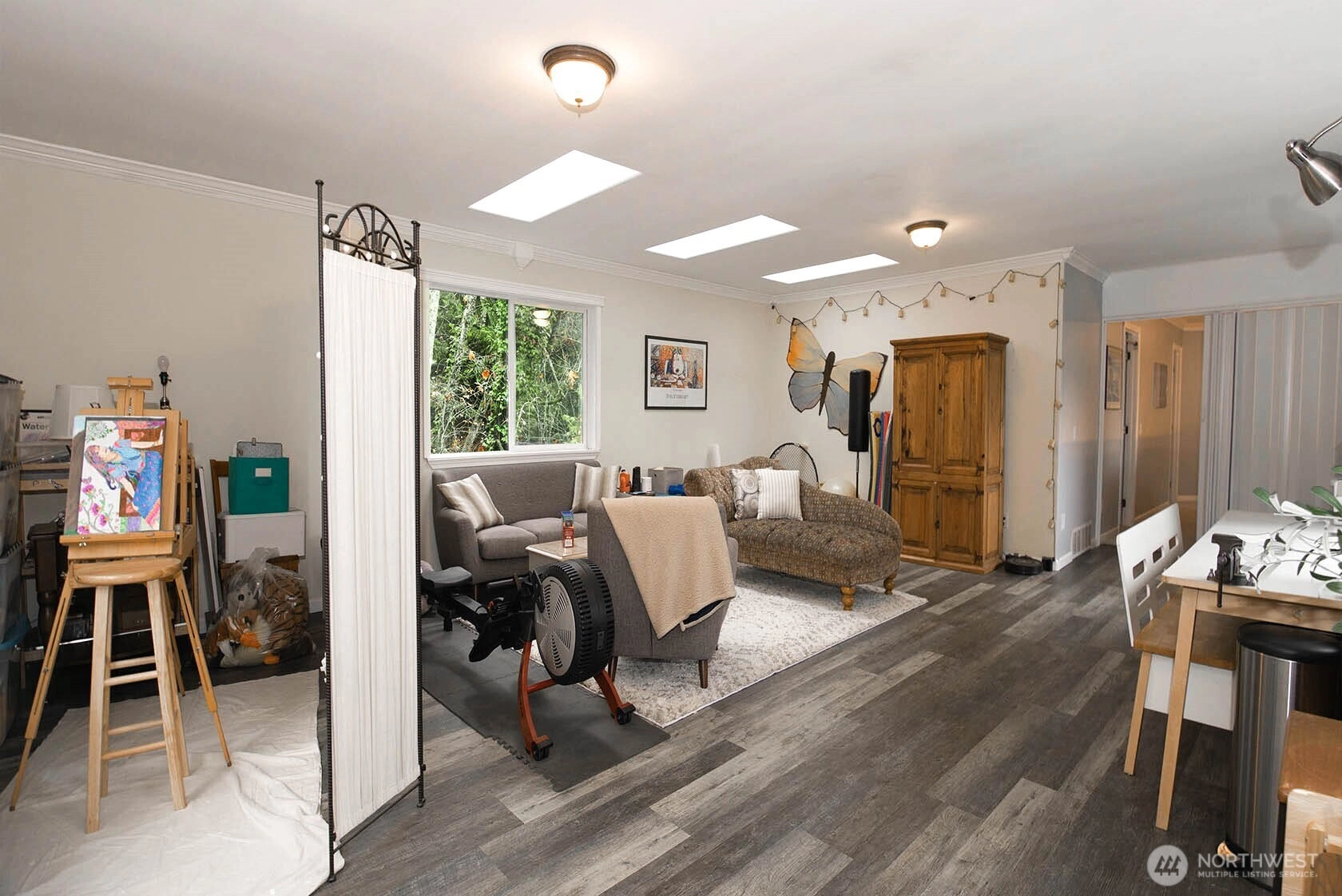 Set on a serene and private 0.6-acre lot in the coveted Wind and Tide community, this custom 4,010 sq ft residence offers light-filled living and timeless design across three expansive levels. A grand entry welcomes you with soaring ceilings, skylights, rich hardwood floors, and an open staircase that sets an elegant tone. The heart of the home is a kitchen featuring granite countertops, stainless steel appliances, and a peninsula bar that flows into a casual dining area, perfect for both daily living. French doors connect to the formal dining room with classic wood paneling, while the formal living room showcases refined millwork and a fireplace. A versatile flex space, ideal for a home office or sitting room, features French doors opening to the deck for seamless indoor-outdoor living. Upstairs, there are three bedrooms, including a spacious primary suite with a full bath and walk-in closet, plus a generous bonus room and convenient upstairs laundry. The finished lower level adds exceptional flexibility with a wet bar, rec room with fireplace, additional bedroom, and a ¾ bath, ideal for guests or extended living. Outdoors, enjoy a gated and fully fenced setting surrounded by mature landscaping and lush natural foliage, creating a true sense of privacy and retreat. Additional highlights include a three-car garage and a detached outbuilding for storage or hobbies. Ideally located just minutes from Picnic Point, Harbour Pointe Golf Course, and Mukilteo schools.*Buyer Bonus*