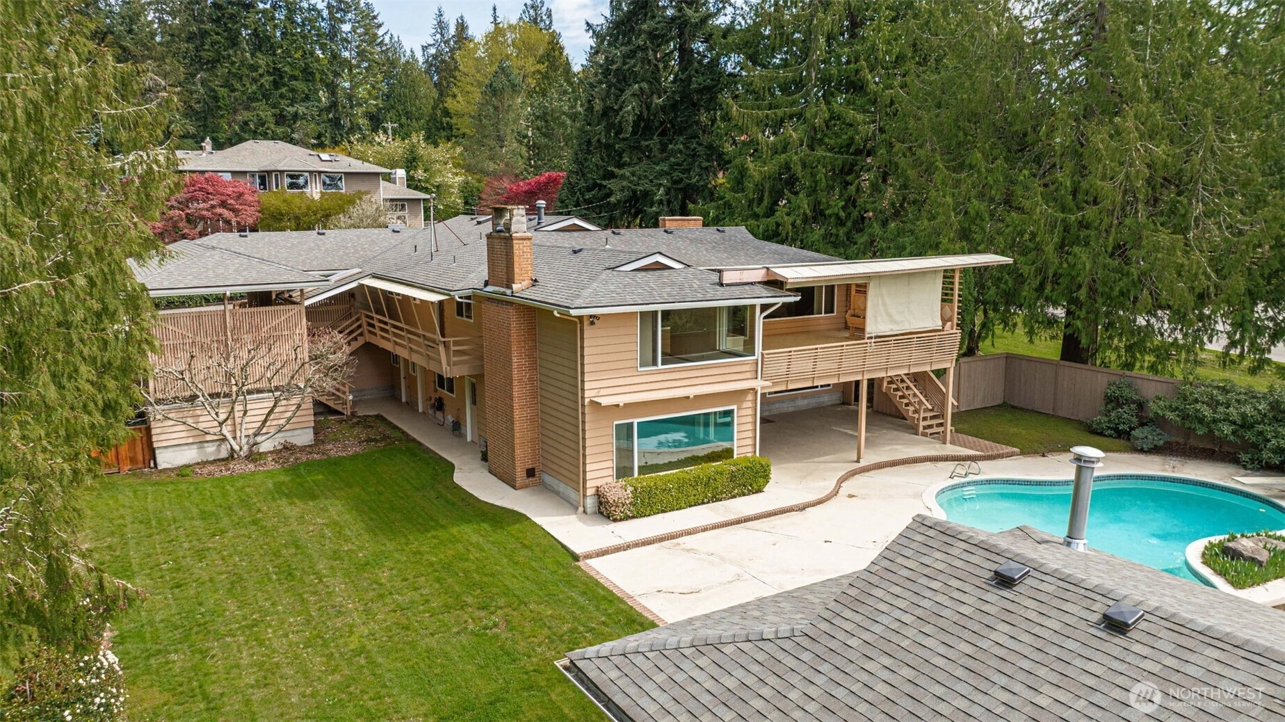 Introducing one of Edmonds’ last true legacy properties—offered for the first time ever. Set on a sprawling ~1.31-acre parcel, this rare and buildable estate presents a truly unique opportunity in one of the area’s most sought-after locations. Rich in character, the iconic residence captures the spirit of 1960s glamour, where architecture, entertaining, and lifestyle seamlessly came together in a way rarely seen today. Inside, the home offers 5 bedrooms and an array of memorable spaces designed for gathering, including a vintage rec room complete with its original dance floor and bar, along with expansive living areas filled with warmth, charm, and natural light. Large windows frame serene views of the surrounding grounds, creating a connection between indoor and outdoor living. Step outside to your own private retreat, where a heated swimming pool and sun-drenched, level grounds provide the perfect setting for relaxation or entertaining. The usable acreage offers exceptional flexibility—whether restoring the home’s timeless character, expanding the existing footprint, or exploring the potential to build an additional residence (buyer to verify). A truly rare offering that blends history, land, and opportunity—this is Edmonds living at its finest, with endless possibilities to create your vision.