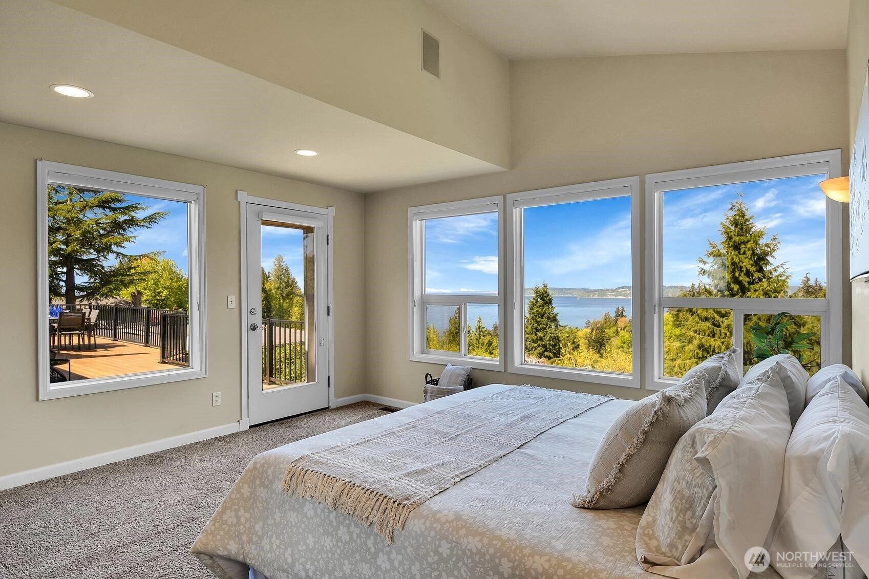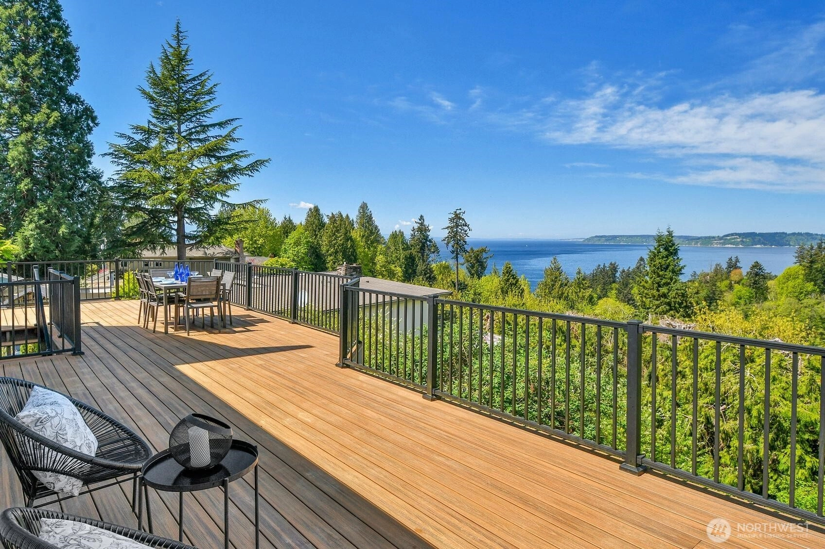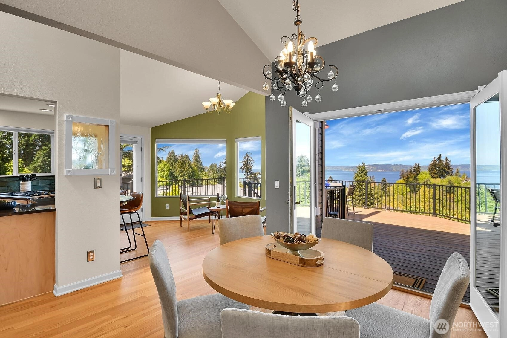 Enjoy panoramic views of Puget Sound and the Olympic Mountains in a private, natural setting that overlooks Meadowdale Beach Park towards Whidbey Island. Gleaming hardwood floors, vaulted ceilings and walls of view-oriented windows greet you as you enter this contemporary residence. The remodeled kitchen opens to formal and informal dining areas that flow out to a massive wrap-around composite deck, perfect for indoor/outdoor living and view enjoyment. Awake each day to amazing views from the primary suite that features elevated ceilings, a door out to the deck, a walk-in closet and 5-piece bathroom with heated tile floors. Bonus loft space can be accessed from two of the three main level bedrooms. A convenient pantry and utility room is located just off the kitchen providing extra storage and work space. The finished lower level of the home includes a family room, bonus area, 4th bedroom and 3/4 bathroom. Views are also enjoyed from the lower level which opens out to the back yard and into the 3-car garage with two separate workshop areas. Landscaped grounds wrap around the home and feature raised garden beds, lawn spaces, and terracing down to a greenbelt that provides great privacy. Great location near local schools, parks, and an easy drive into downtown Edmonds. Watch eagles soar and monitor the summer cruise ship activity while enjoying amazing sunsets from this spectacular setting. Welcome home!