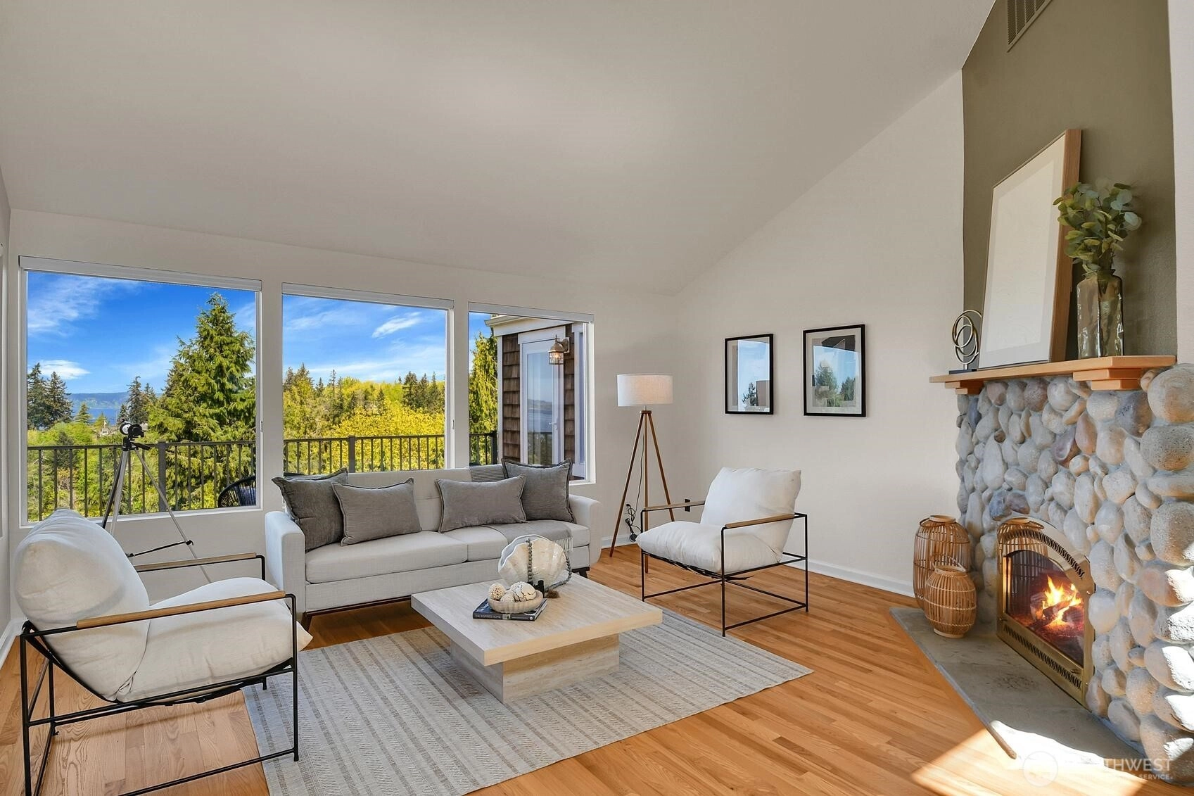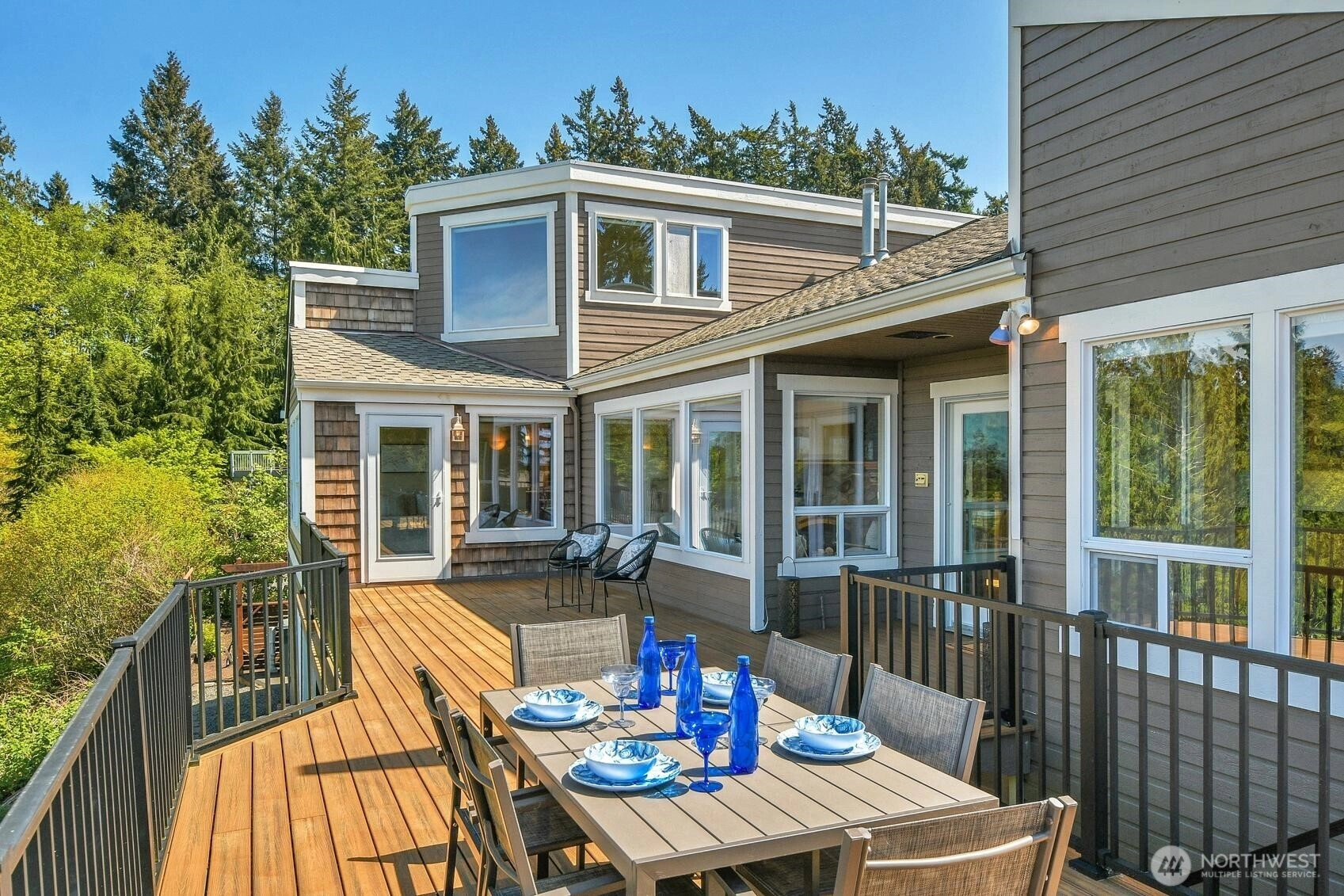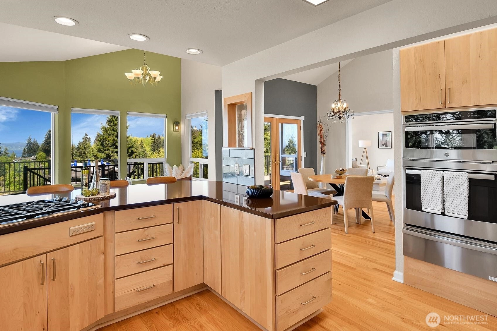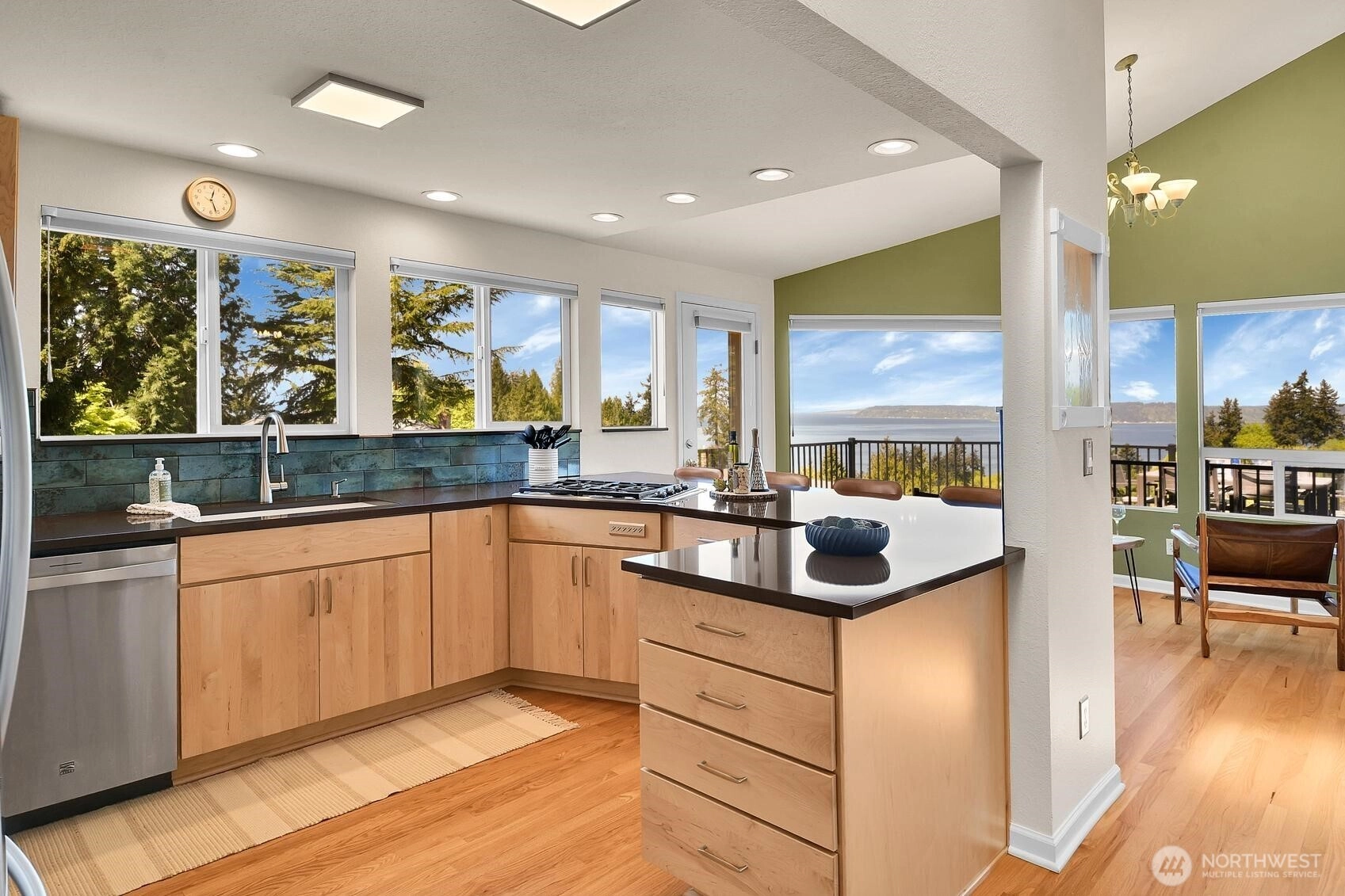 Enjoy panoramic views of Puget Sound and the Olympic Mountains in a private, natural setting that overlooks Meadowdale Beach Park towards Whidbey Island. Gleaming hardwood floors, vaulted ceilings and walls of view-oriented windows greet you as you enter this contemporary residence. The remodeled kitchen opens to formal and informal dining areas that flow out to a massive wrap-around composite deck, perfect for indoor/outdoor living and view enjoyment. Awake each day to amazing views from the primary suite that features elevated ceilings, a door out to the deck, a walk-in closet and 5-piece bathroom with heated tile floors. Bonus loft space can be accessed from two of the three main level bedrooms. A convenient pantry and utility room is located just off the kitchen providing extra storage and work space. The finished lower level of the home includes a family room, bonus area, 4th bedroom and 3/4 bathroom. Views are also enjoyed from the lower level which opens out to the back yard and into the 3-car garage with two separate workshop areas. Landscaped grounds wrap around the home and feature raised garden beds, lawn spaces, and terracing down to a greenbelt that provides great privacy. Great location near local schools, parks, and an easy drive into downtown Edmonds. Watch eagles soar and monitor the summer cruise ship activity while enjoying amazing sunsets from this spectacular setting. Welcome home!