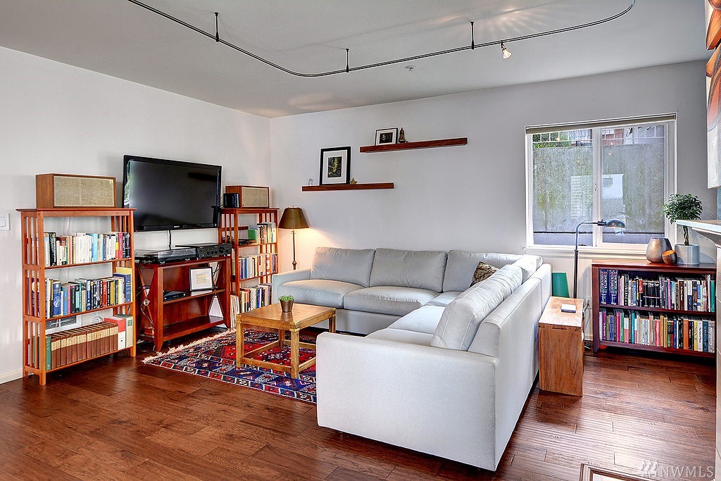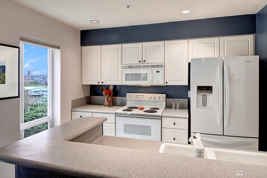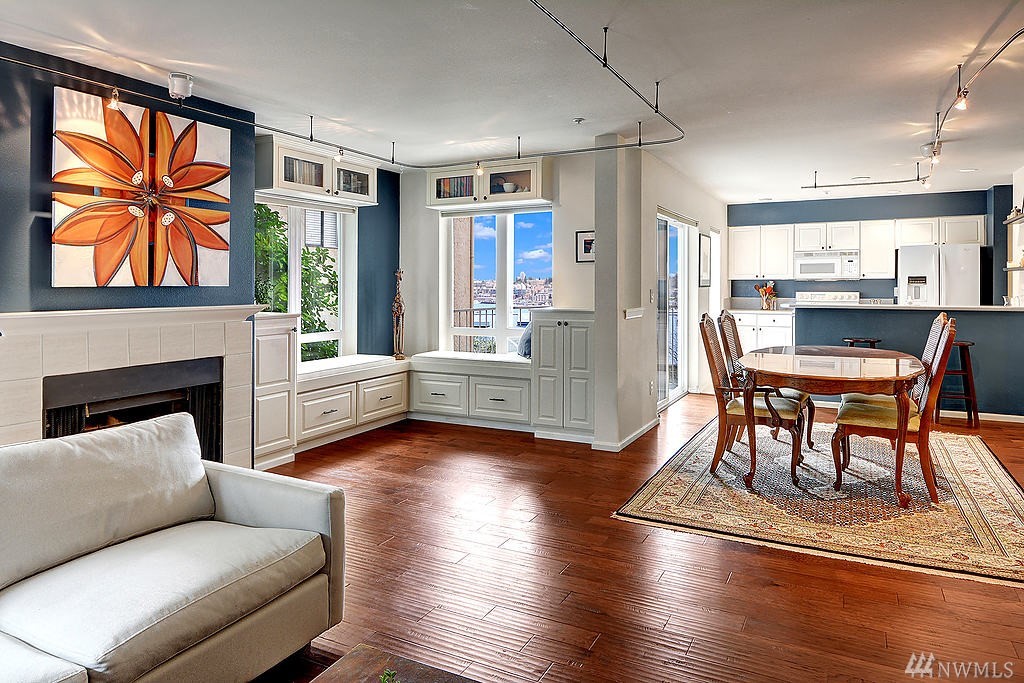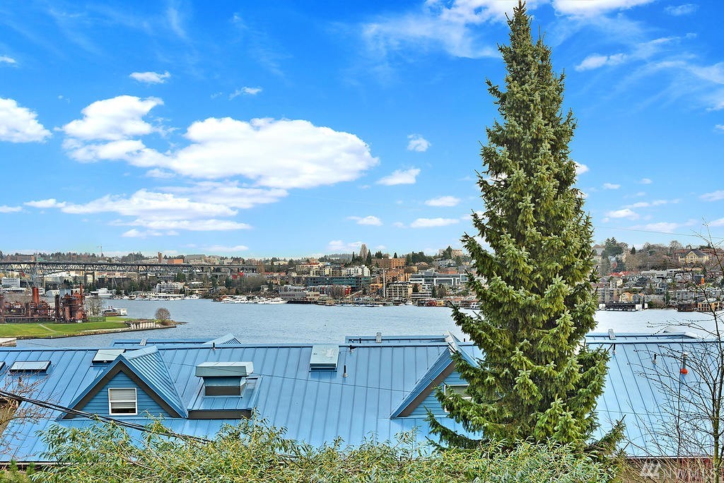 Expansive half floor unit offers an abundance of space, privacy and light. Open living, dining & kitchen areas easily flow together. Windows facing three separate directions provide a singular home like experience. Enjoy dining al fresco with views of Lake Union from the covered balcony. Two generous bedrooms, master with en-suite bathroom & walk-in closet. Full size laundry, two deeded parking spaces and storage. Great Queen Anne location close to Fremont, Westlake and South Lake Union.