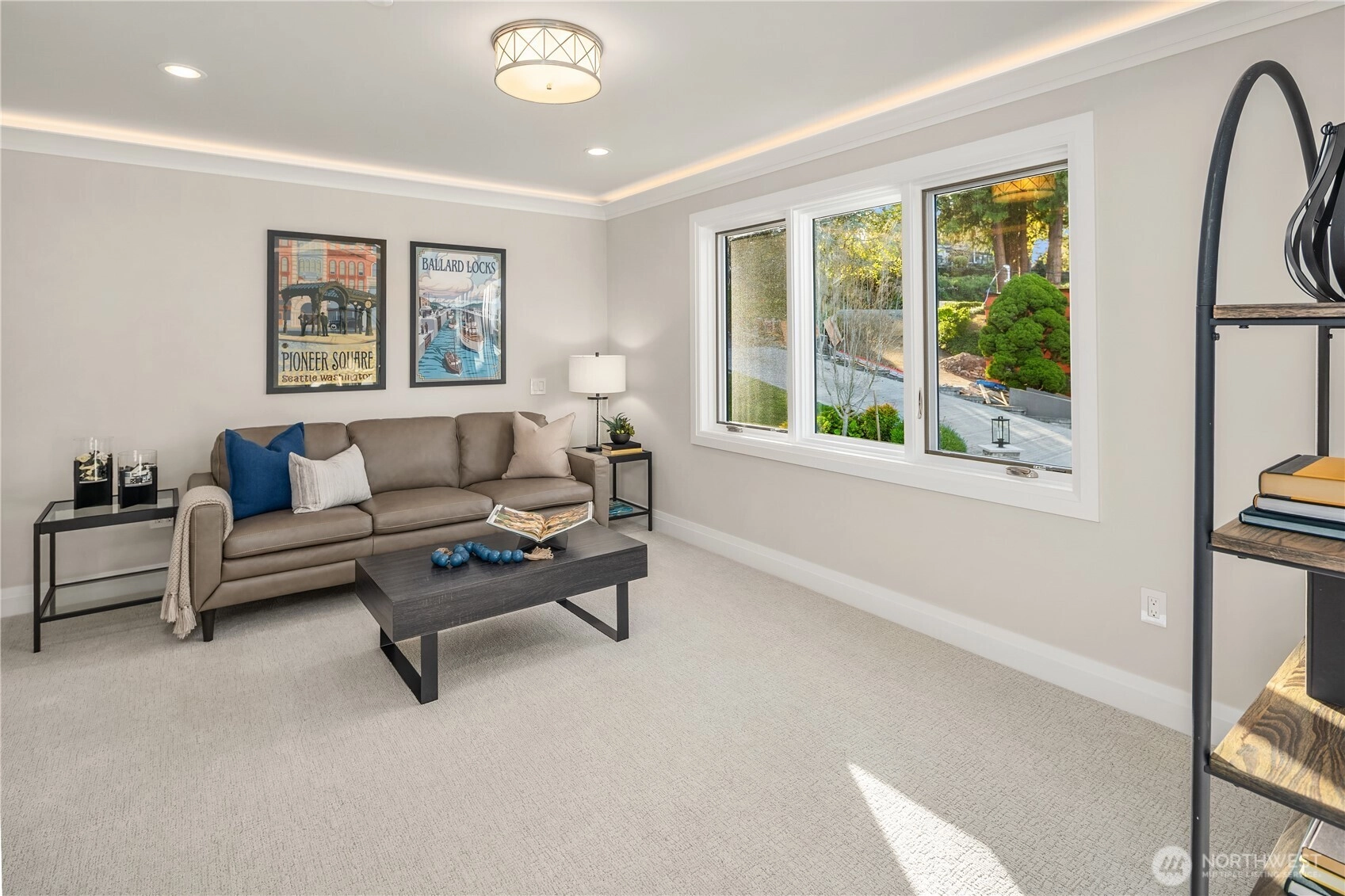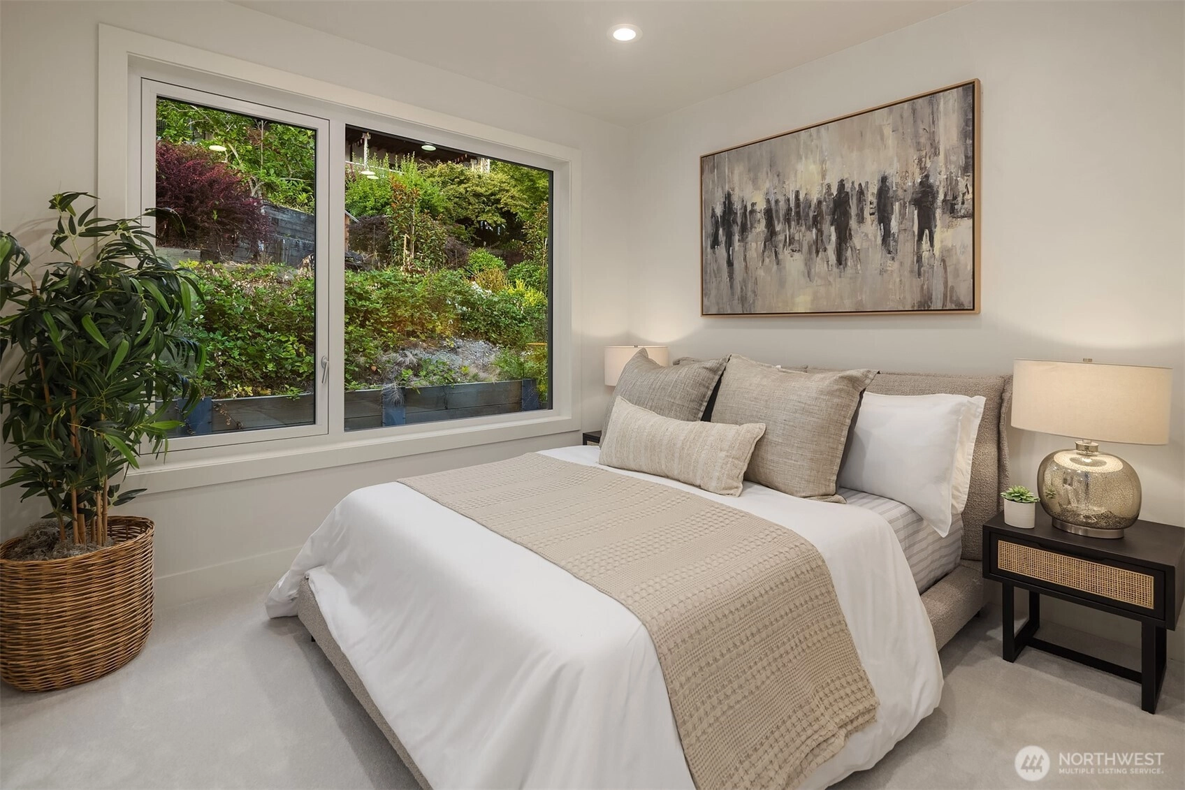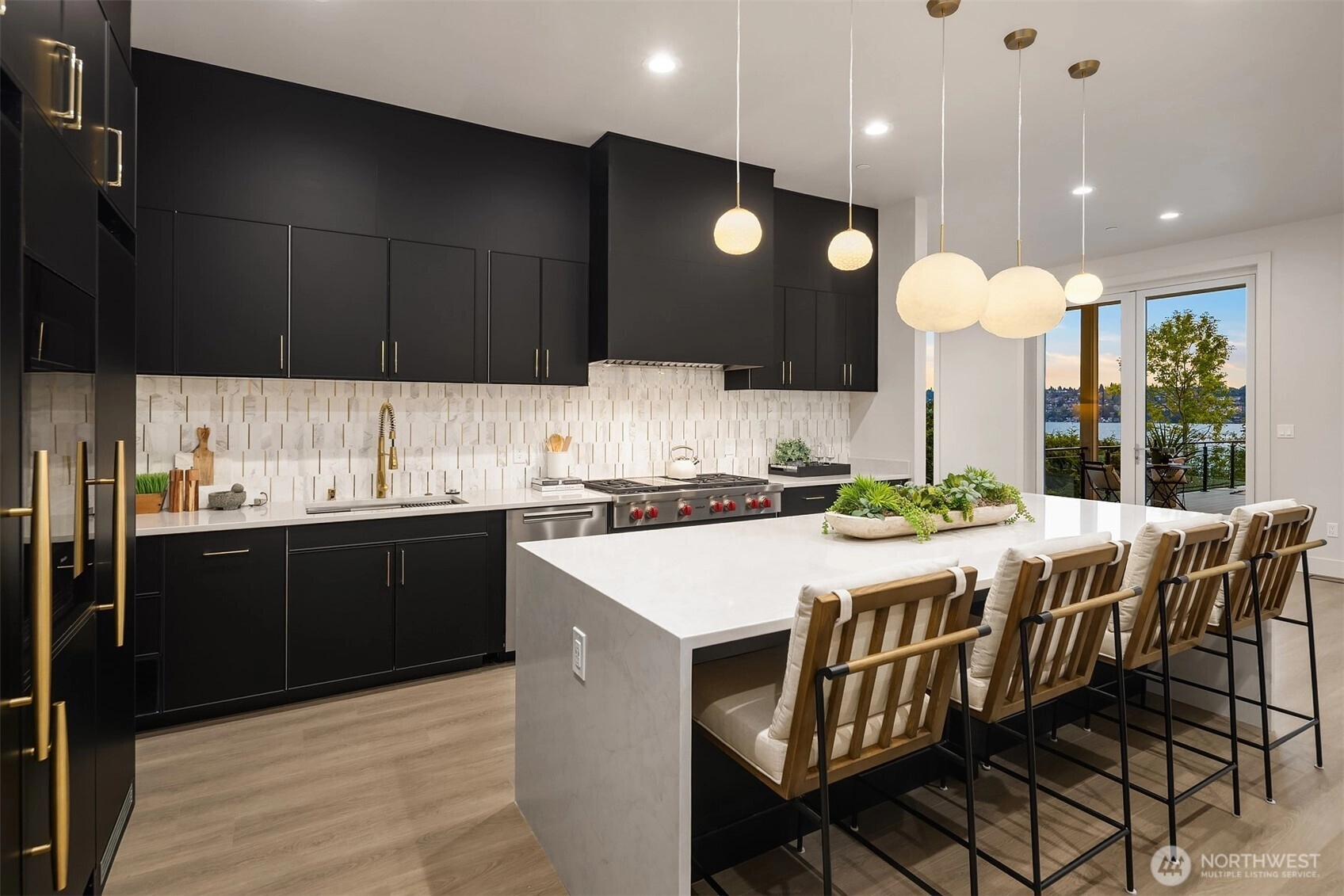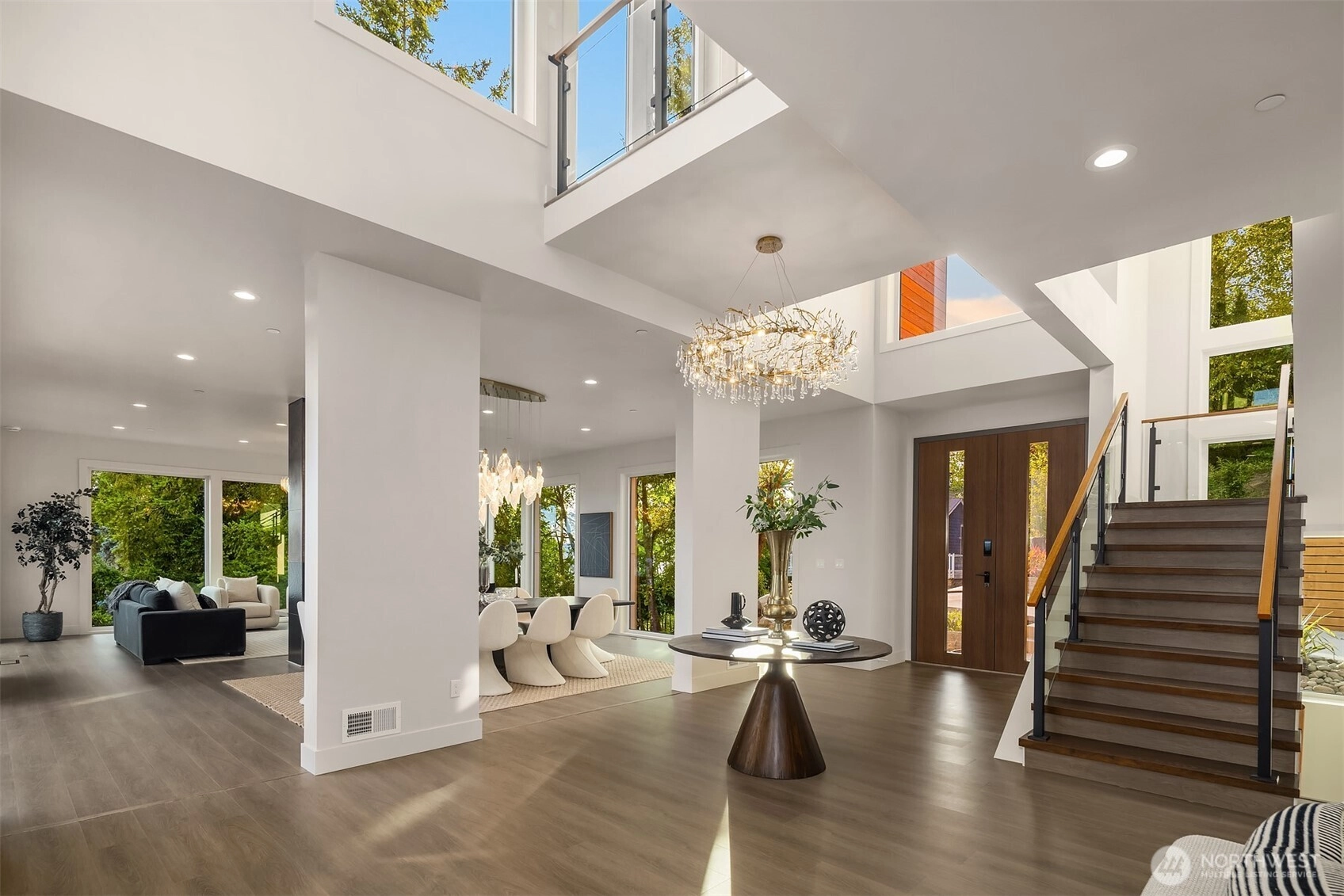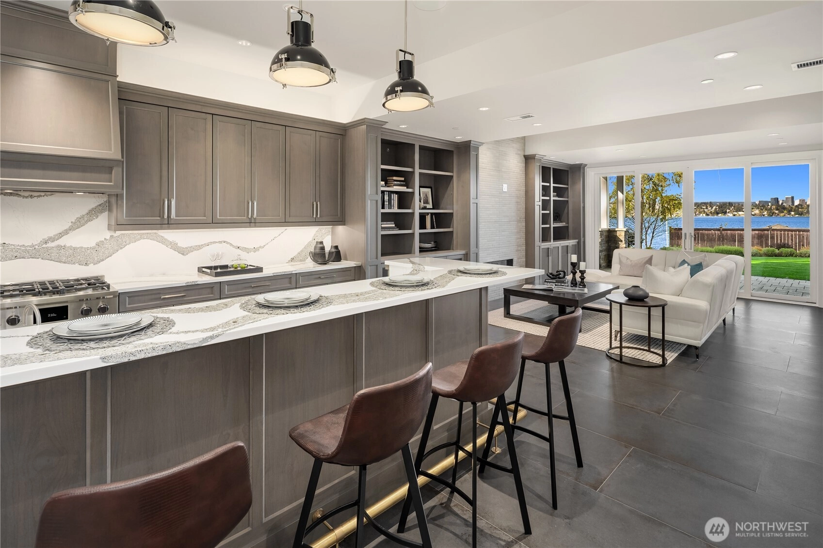 A spotless and stunning new-construction home. Sited on the conveniently located north end with easy access to downtown Mercer Island, I-90, Bellevue and Seattle. Captivating lake and city views! Live exceptionally in this perfectly crafted masterpiece, featuring a great room concept with dramatic views which opens to an expansive deck with built-in barbeque and cooking station, two designer kitchens, ensuite bedrooms and the finest fixtures and finishes. High tech and high concept; wired for servers, generator, speakers and blinds. High tech security system. Garage has three outlets for EV charging. Multiple decks and patios present spot-on views of Bellevue's gleaming skyline and fireworks from summer celebrations.