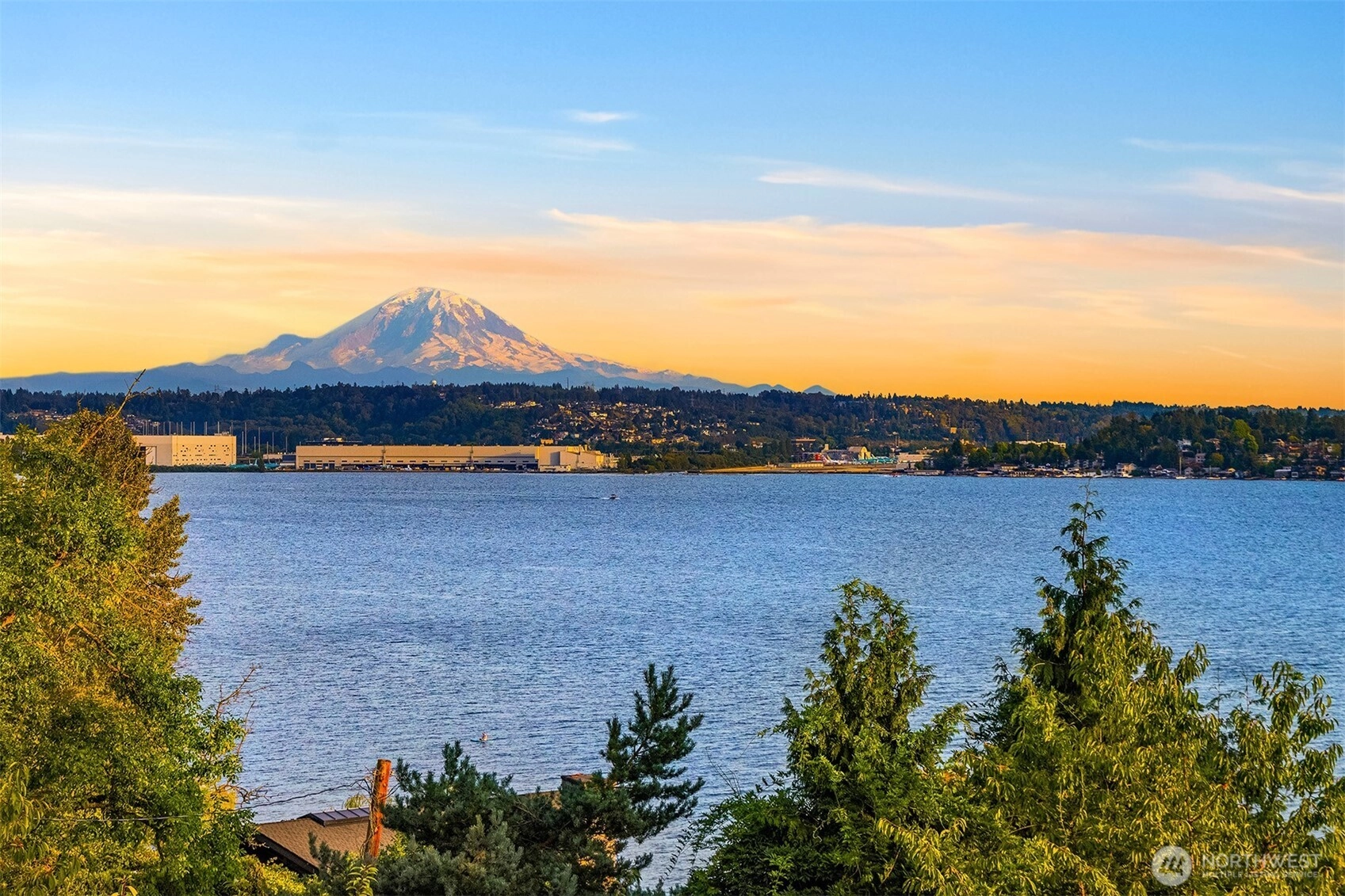 Sleek. Sculptural. Unforgettable. A bold architectural statement where warm wood accents meet crisp modern lines, and walls of glass erase the boundary between sophisticated interiors and the beauty beyond. This Mercer Island home stuns with its cantilevered design, flawless finishes, and sweeping views of Lake Washington and Mt. Rainier. Entertain on four remarkable view decks, bask in sunlit spaces, or retreat to the private primary suite. The upper level hosts four bedrooms; the lower level offers a media room, flex space, and future wine cellar. With a 2-car garage, 1-car carport, versatile layout, top-rated schools, a vibrant community, and seamless access to Seattle and Bellevue—live where modern design meets timeless views.
