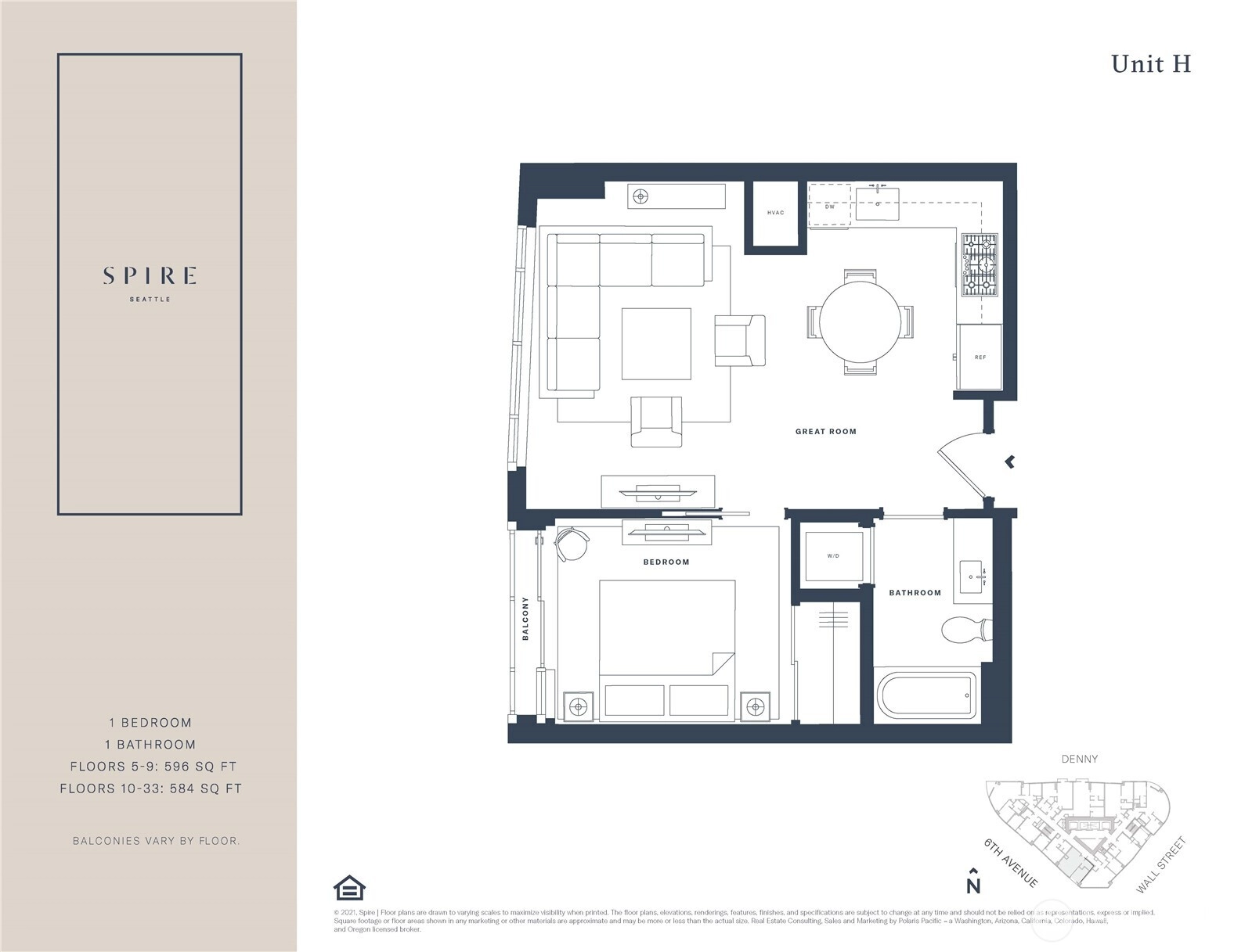 Spire Seattle #1305 1 Bed, 1 Bath, 584 Sqft