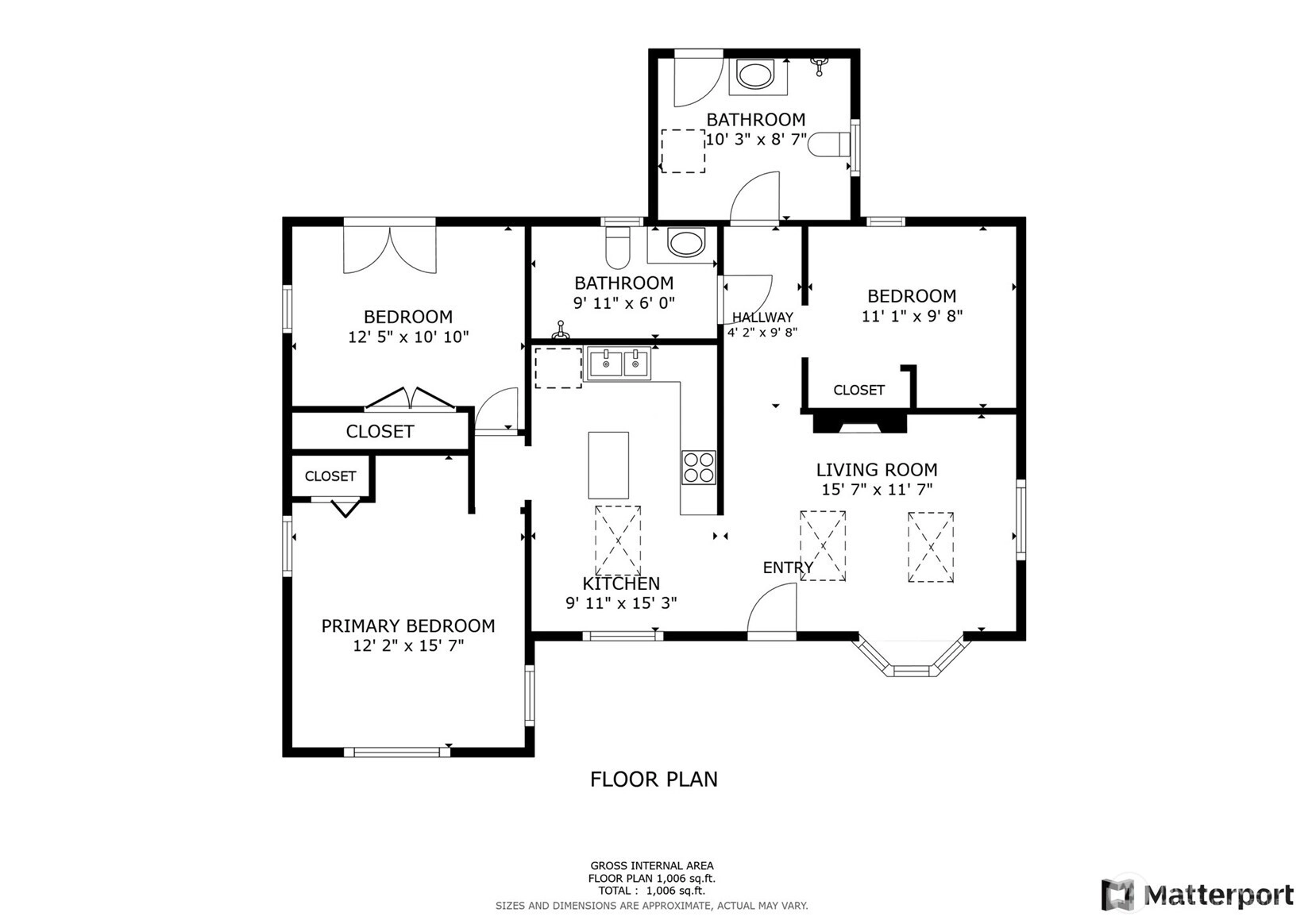 3 Bed, 1.5 Bath, 1,030 Sqft