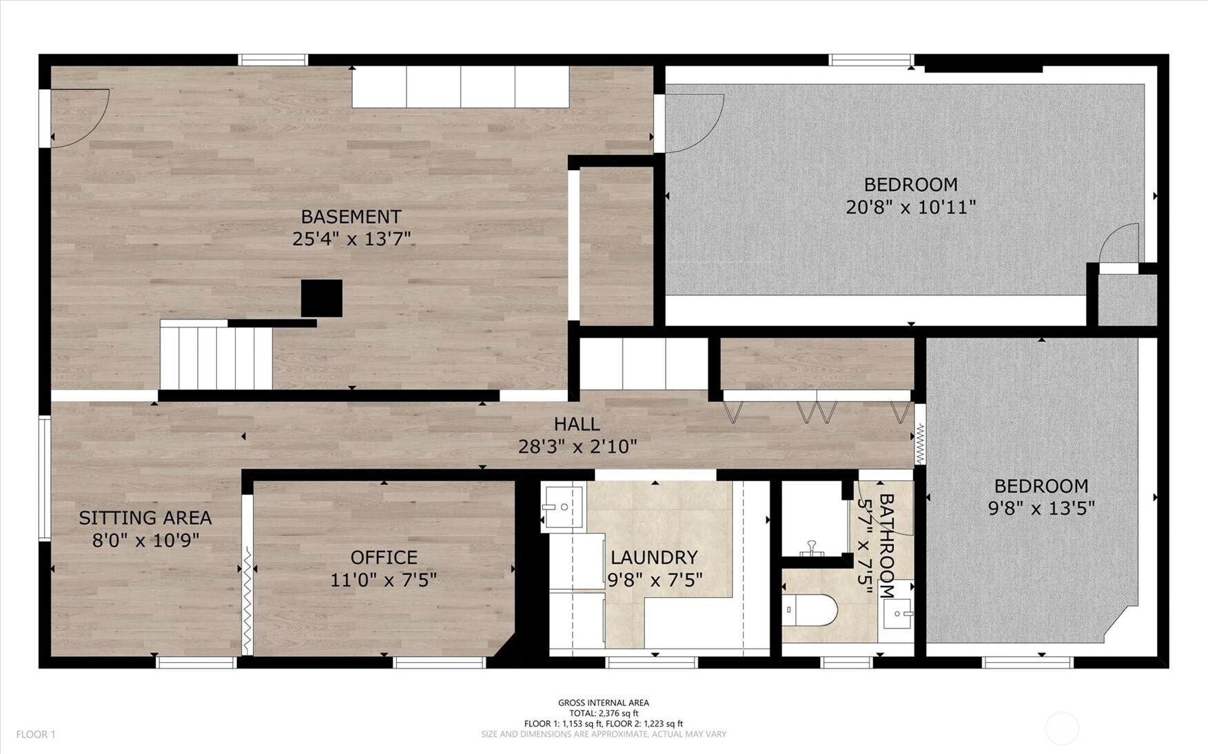 2 Bed, 1.25 Bath, 2,300 Sqft