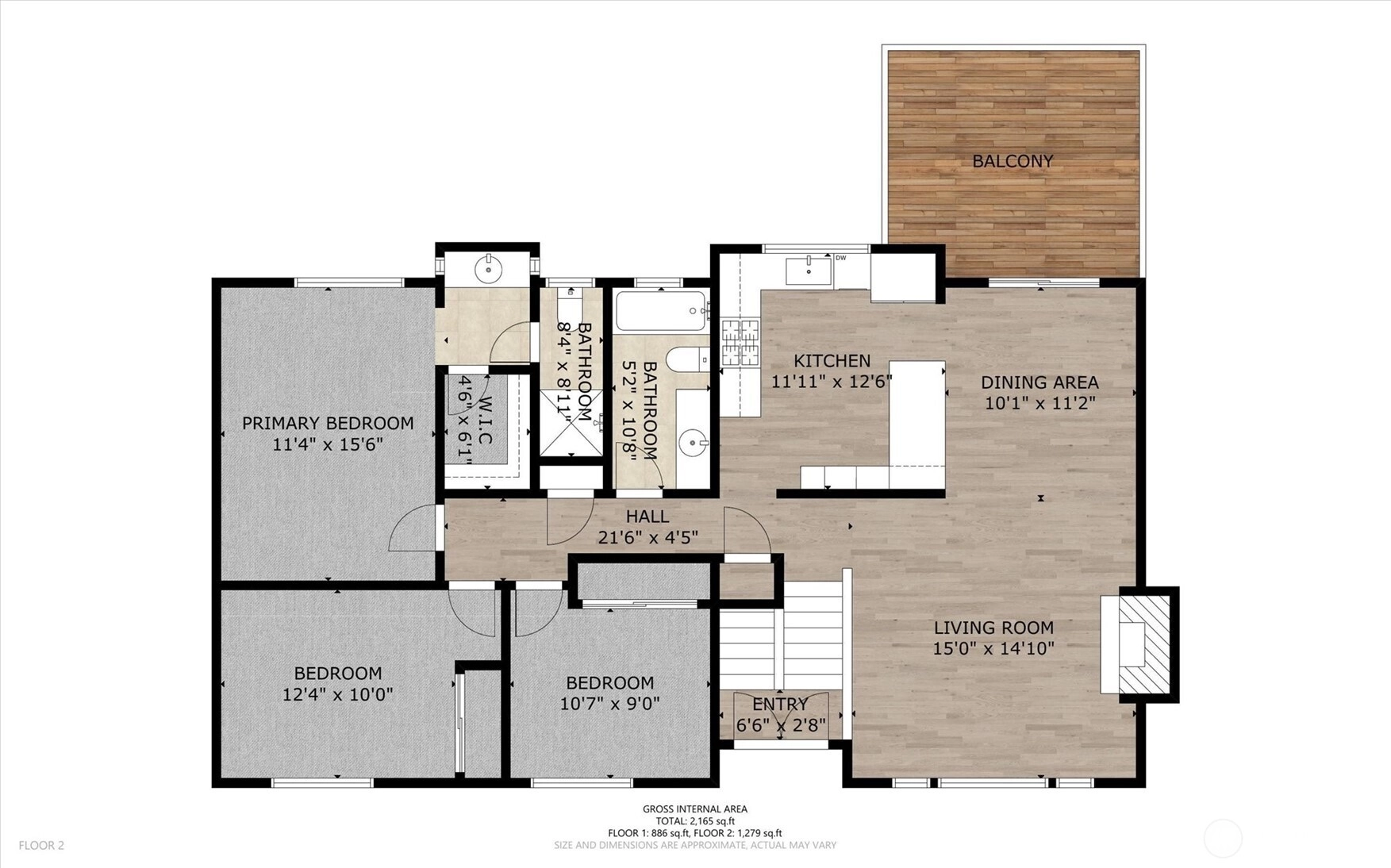 4 Bed, 2.5 Bath, 2,100 Sqft