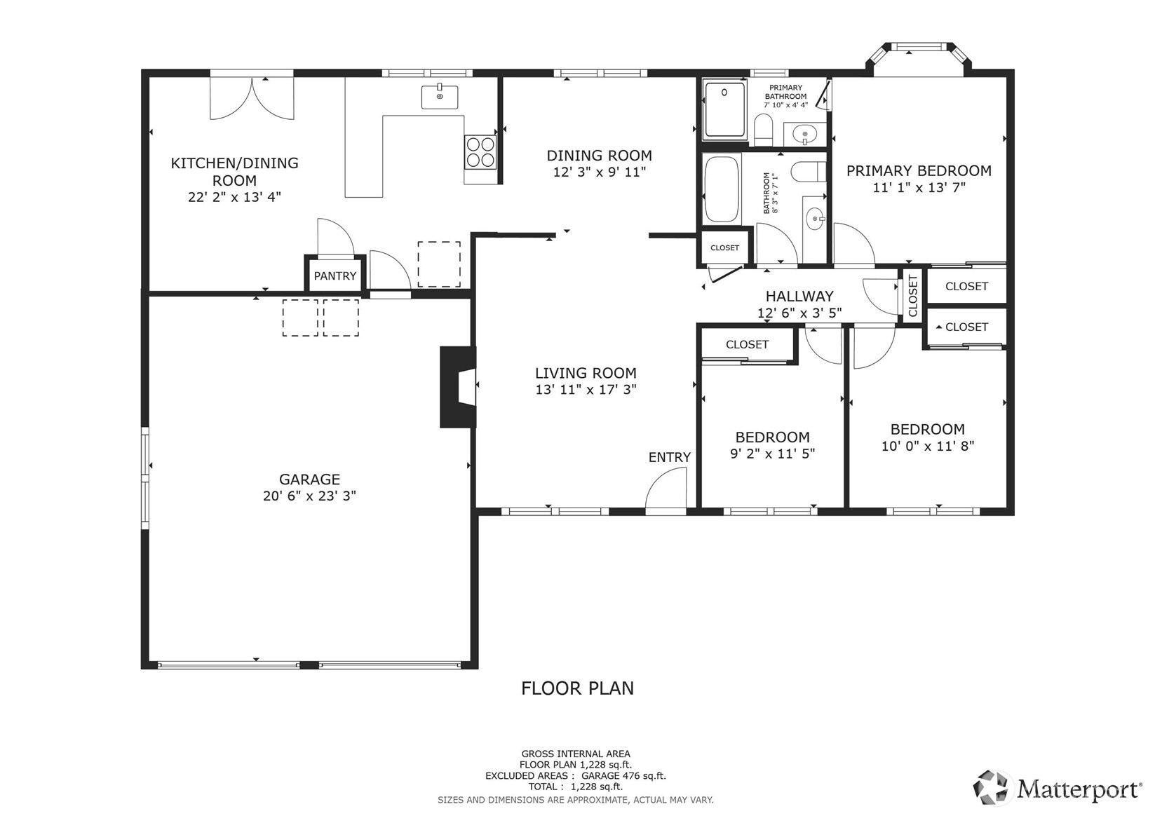 3 Bed, 1.75 Bath, 1,220 Sqft