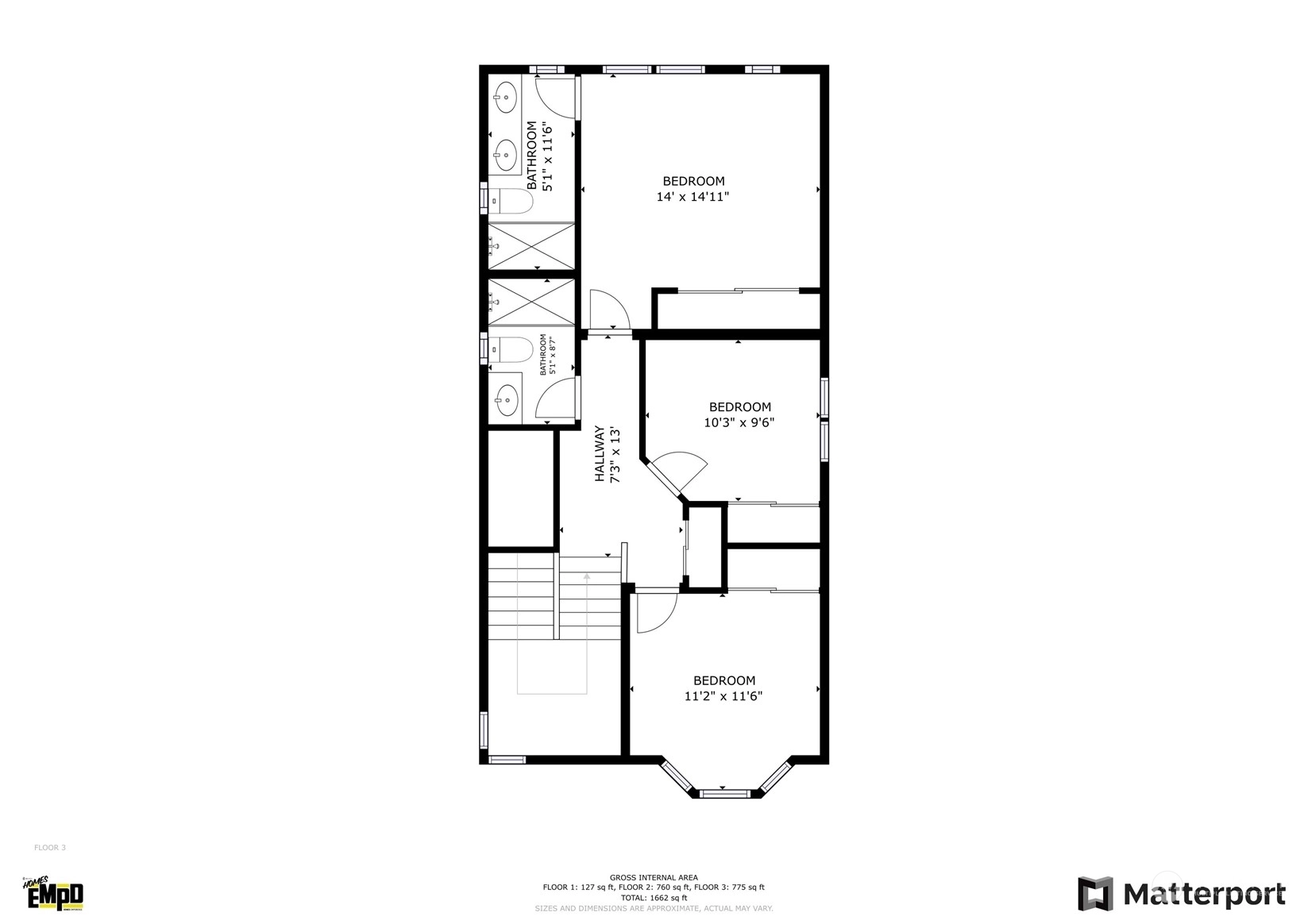 3 Bed, 2.5 Bath, 1,403 Sqft